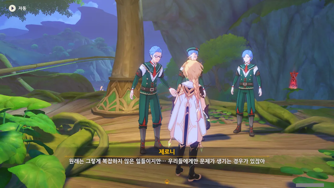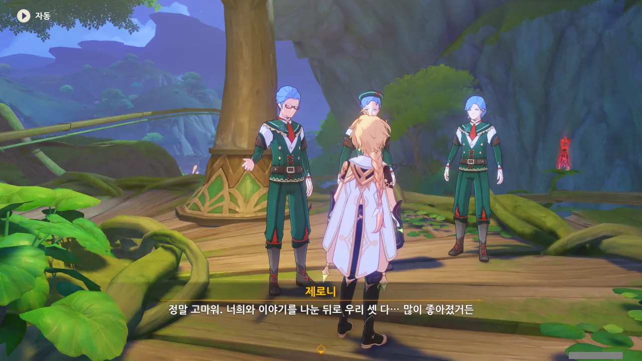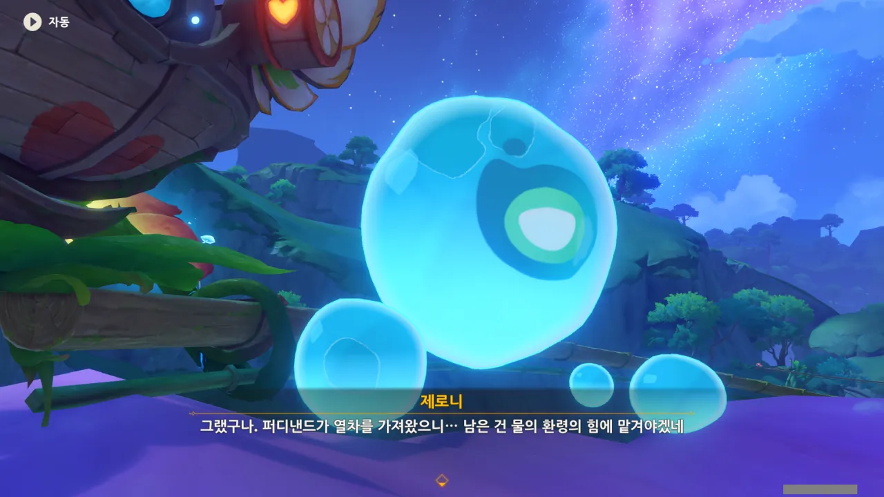 저게 제로니가 맞겠지? 제로니가 꽃잎 위에 서서 뭔가를 중얼거리고 있다.