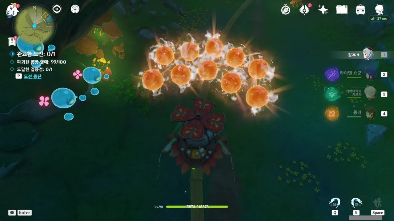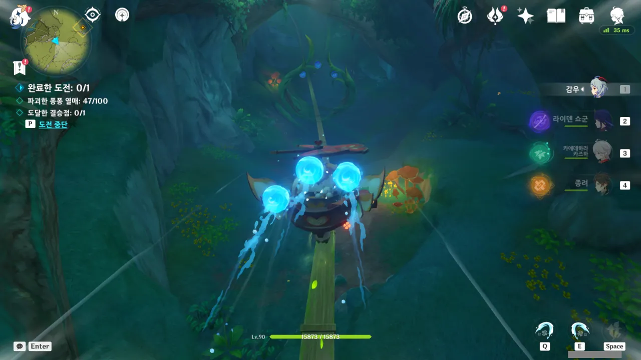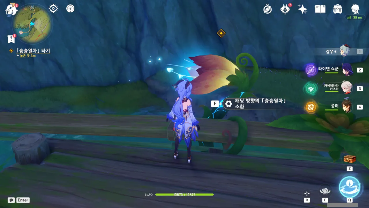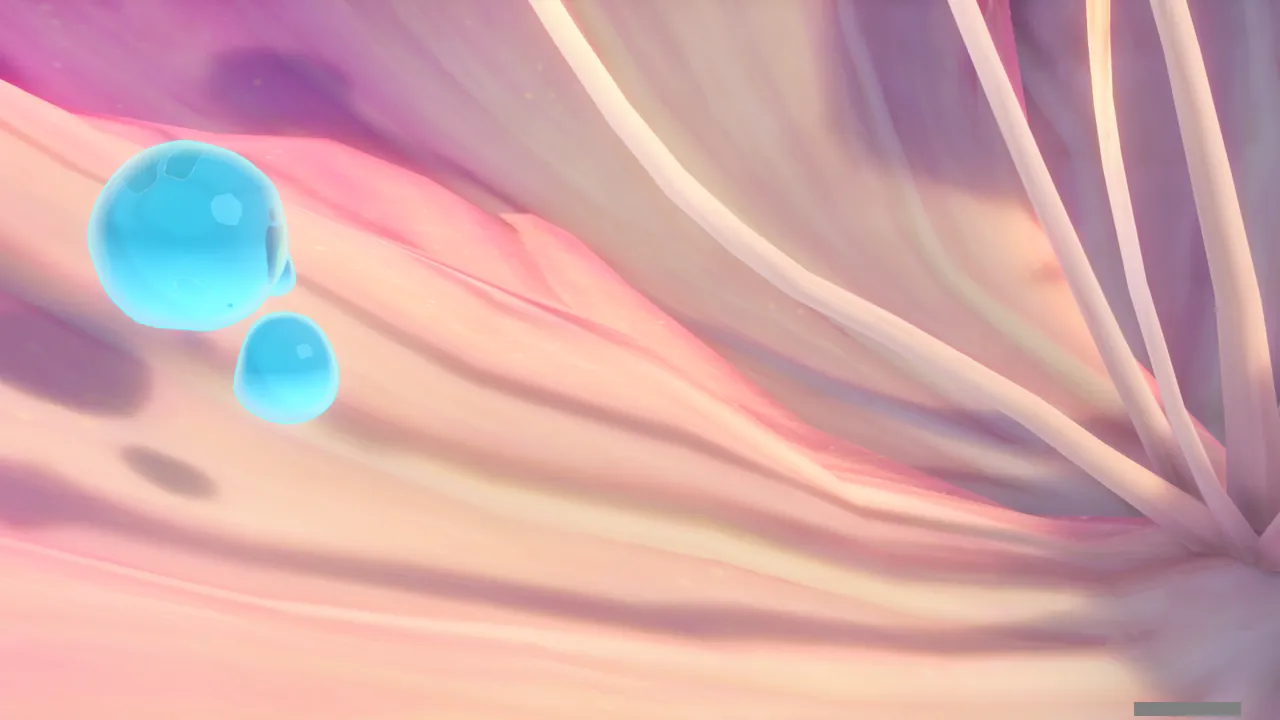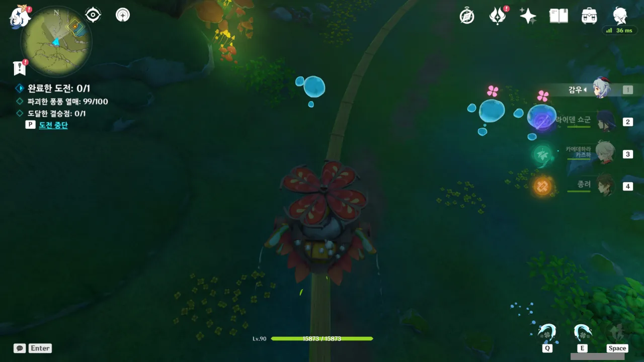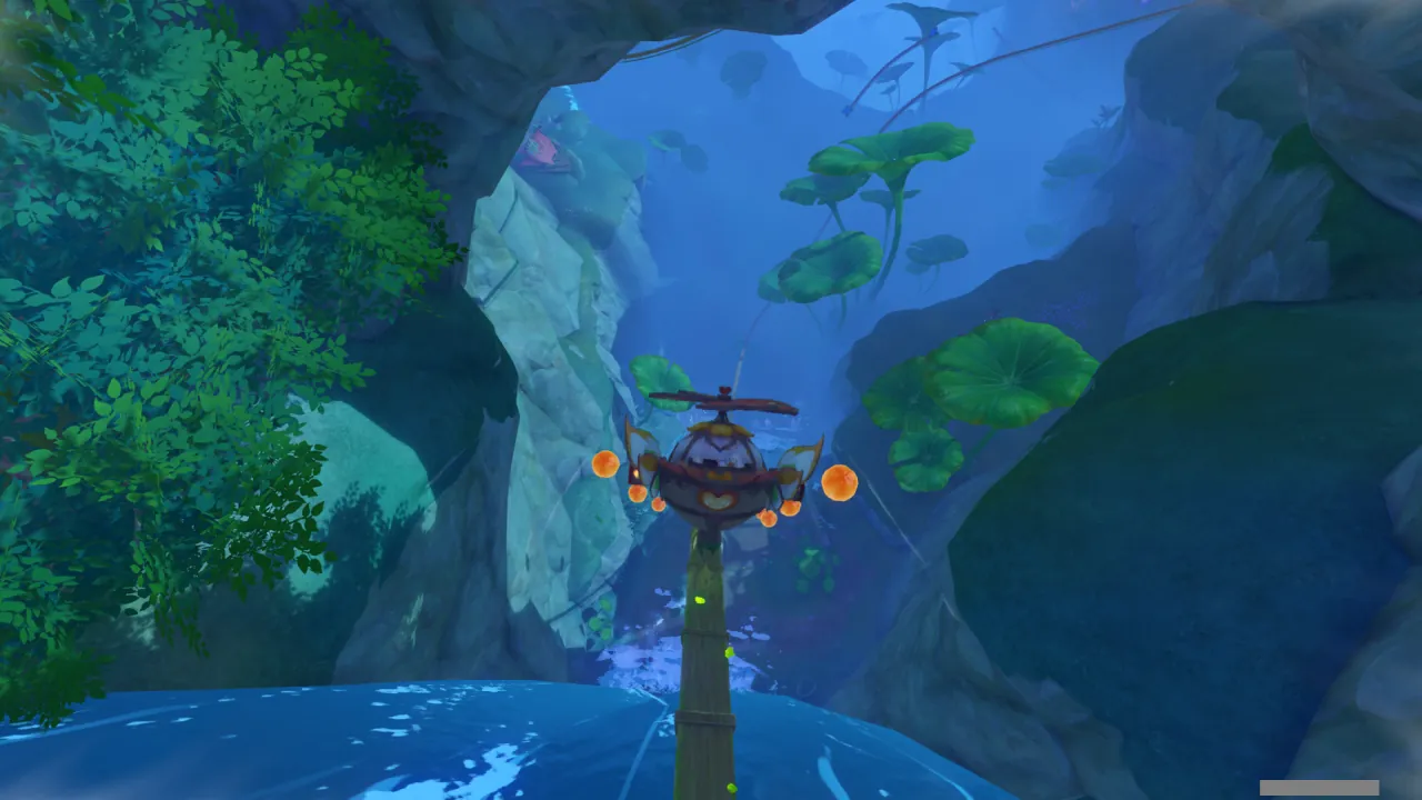 물의 환령이 꽃의 꽃술 부분을 빛내자, 꽃에 물이 고이더니 흘러넘쳐 밑에 있던 '미니 코어 휠'을 흠뻑 적신다.
