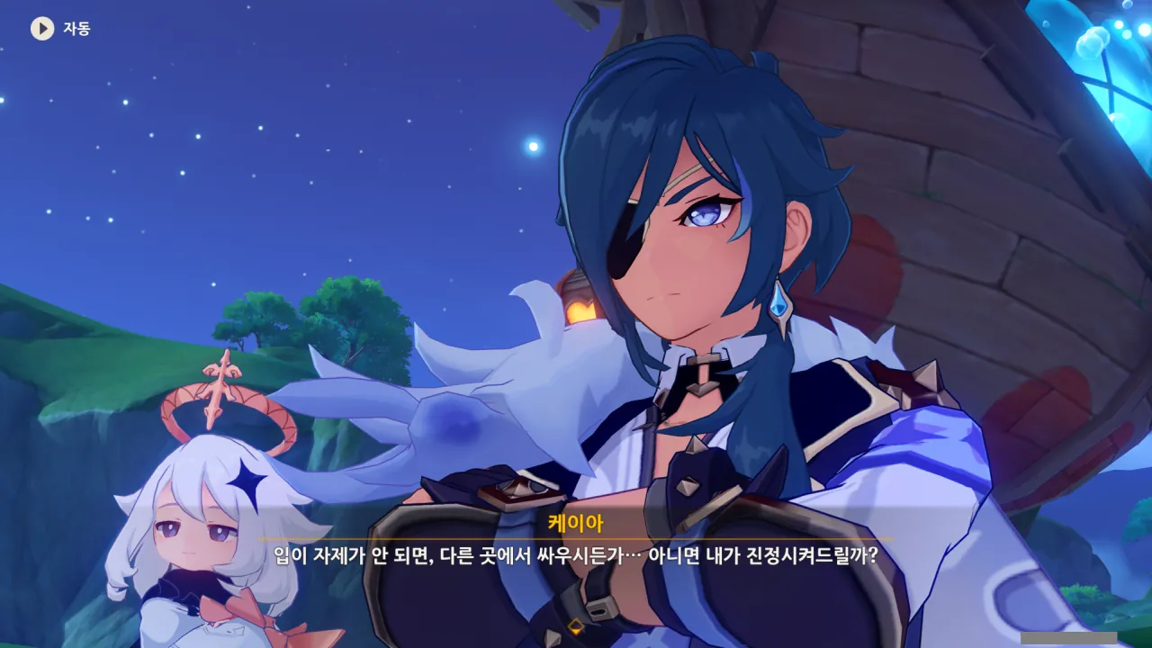 도저히 싸움이 끝날 것 같지 않아 보이자, 보다 못한 케이아가 개입해 강제로 둘의 싸움을 멈춘다.