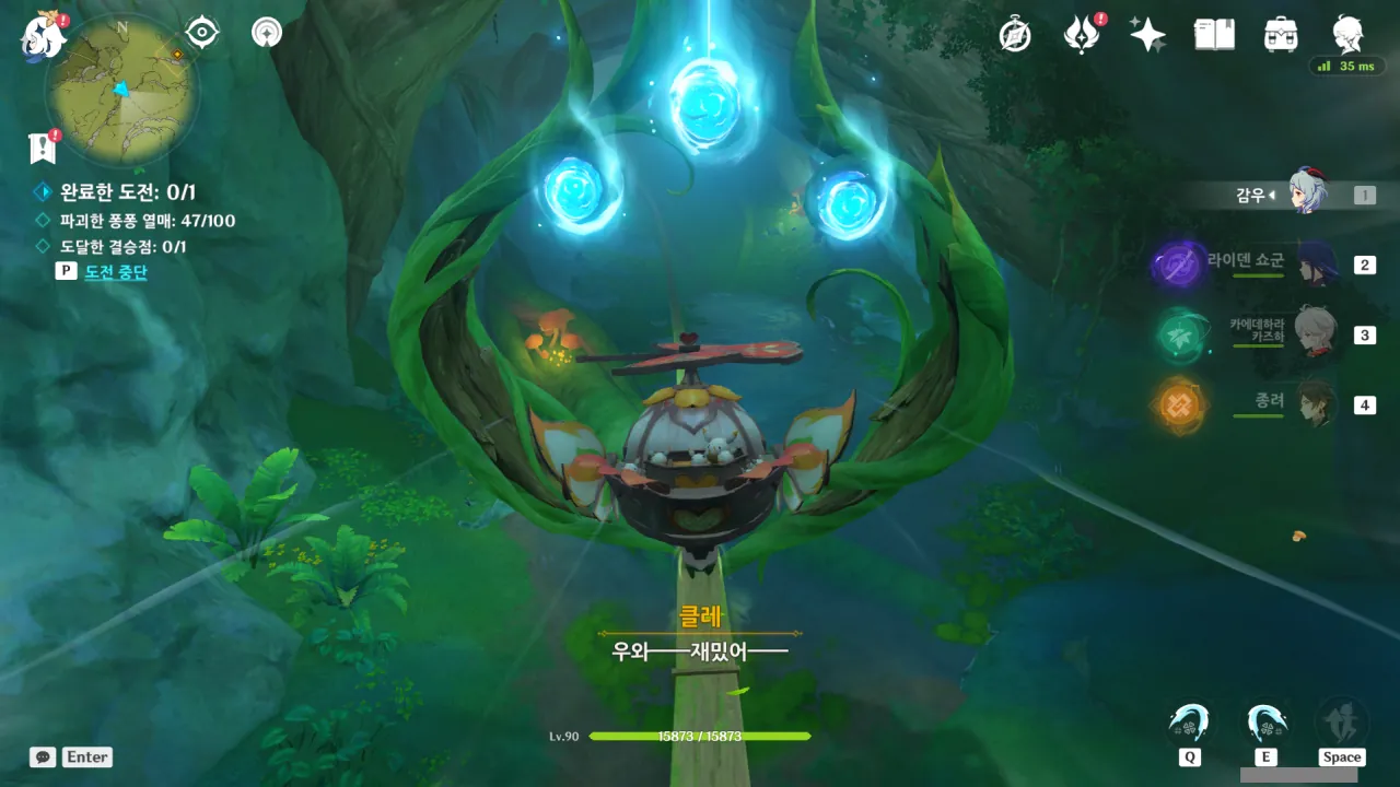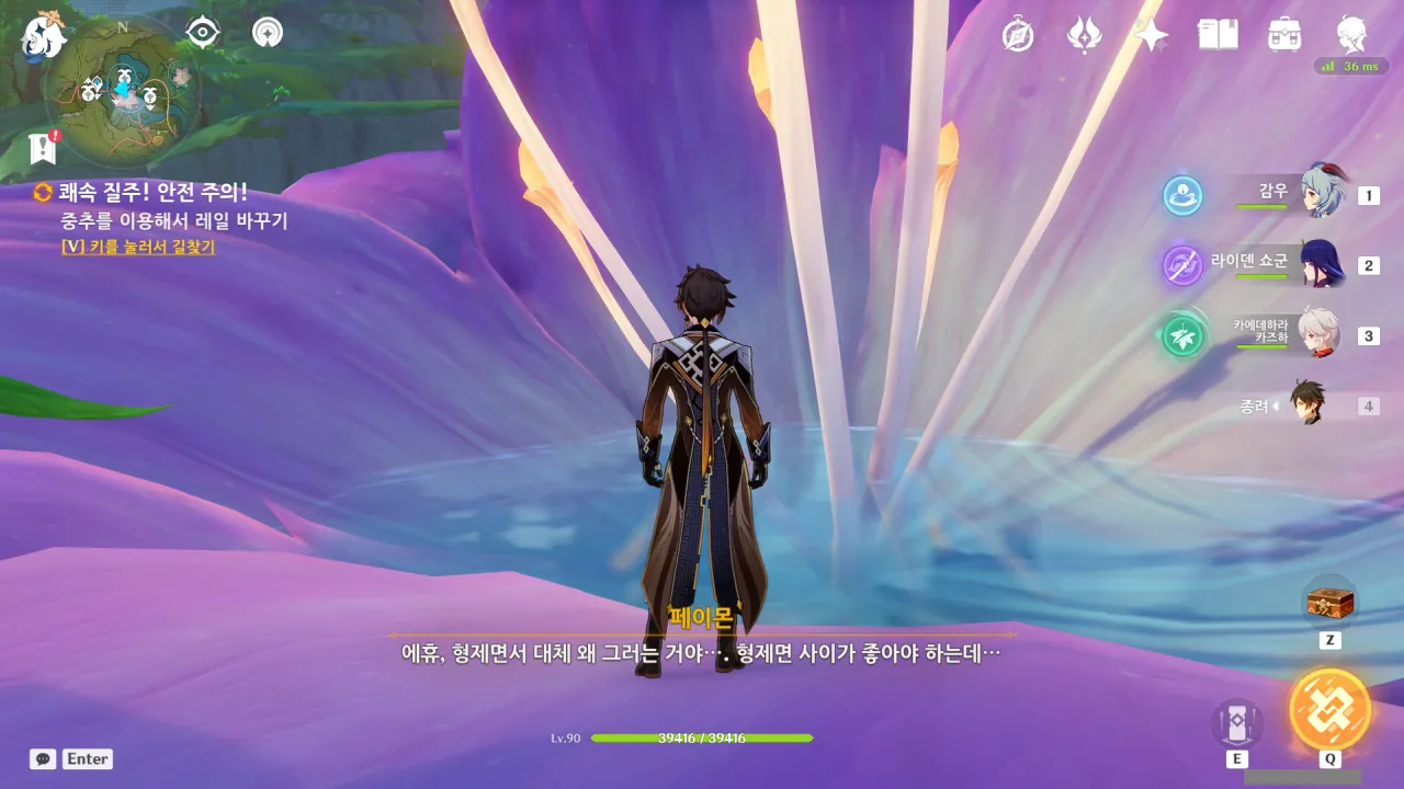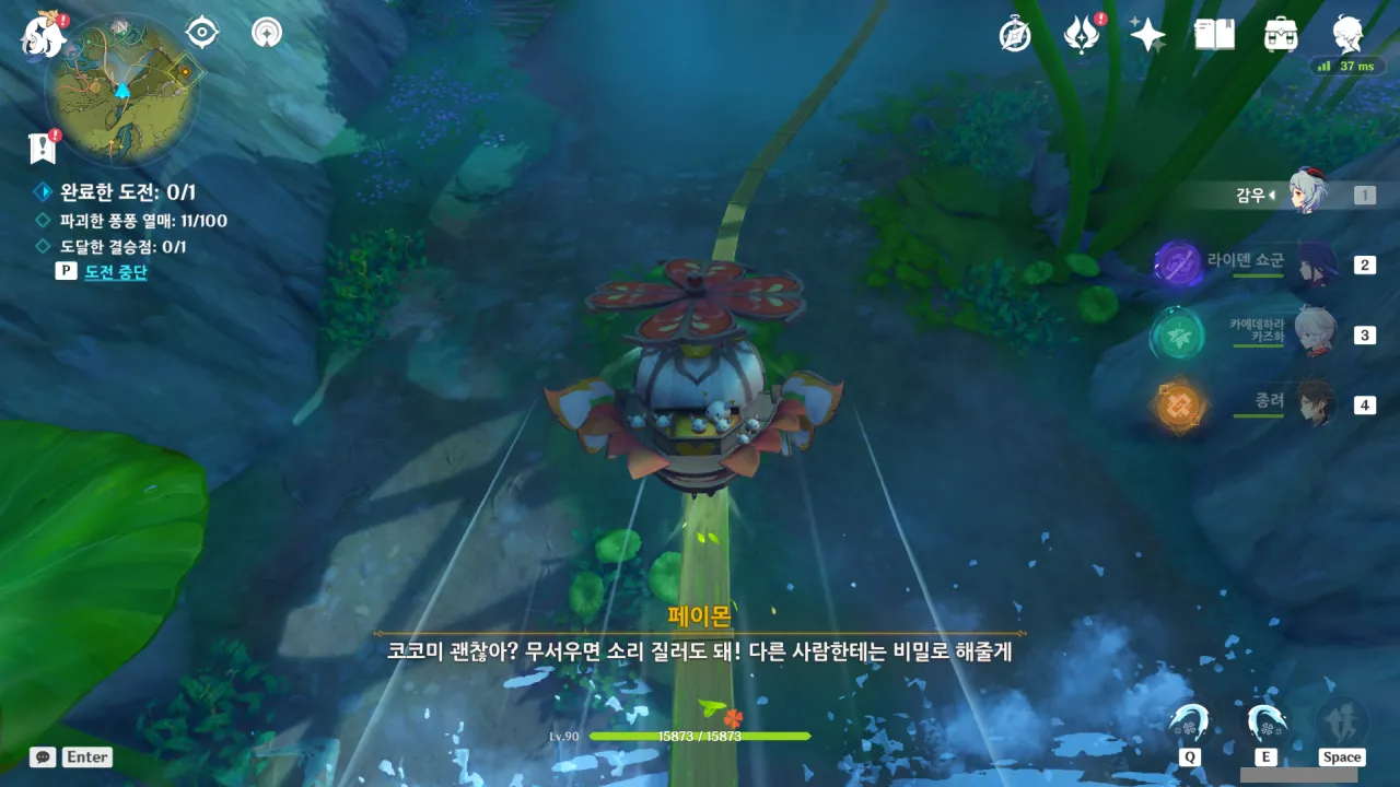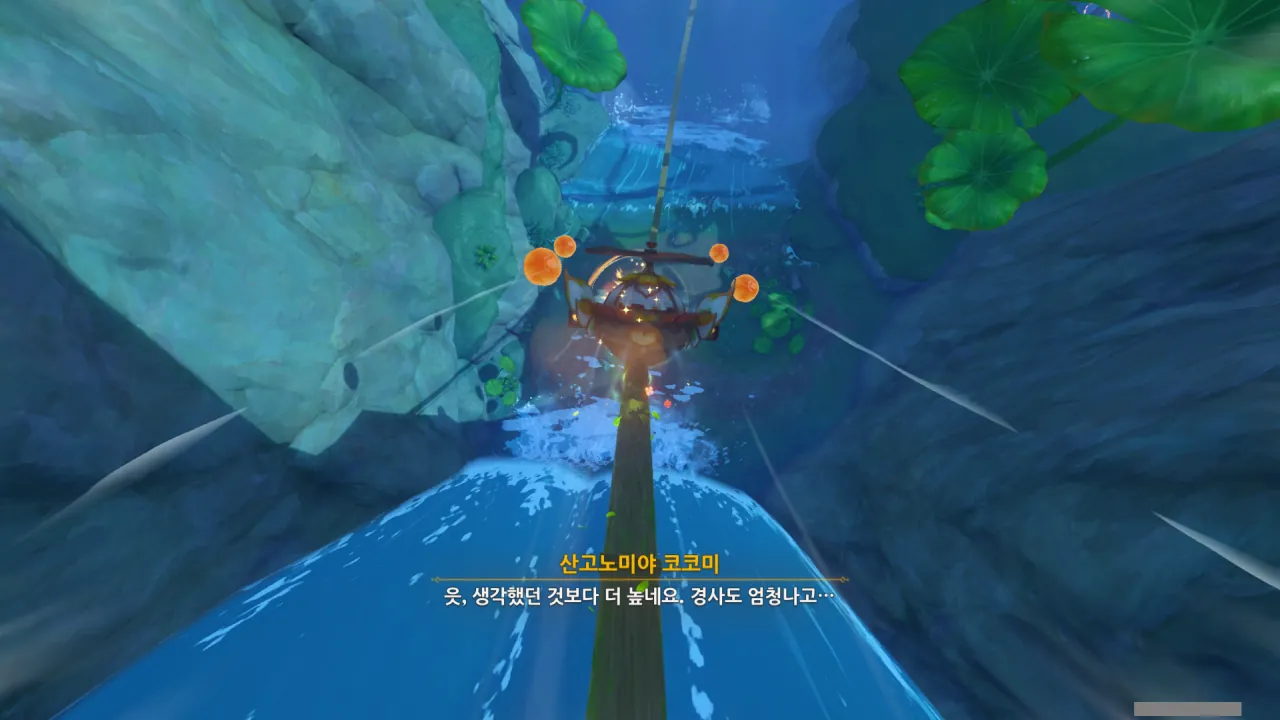 아까 폭포에서 수직으로 내리꽂을 때, 나도 신나긴 했었어…