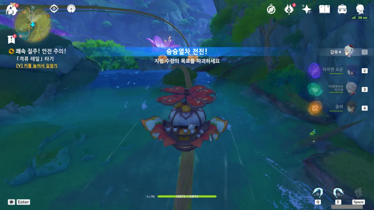 이야, 우리 지금 폭포를 따라 수직으로 내리꽂는 거야? 신난다!