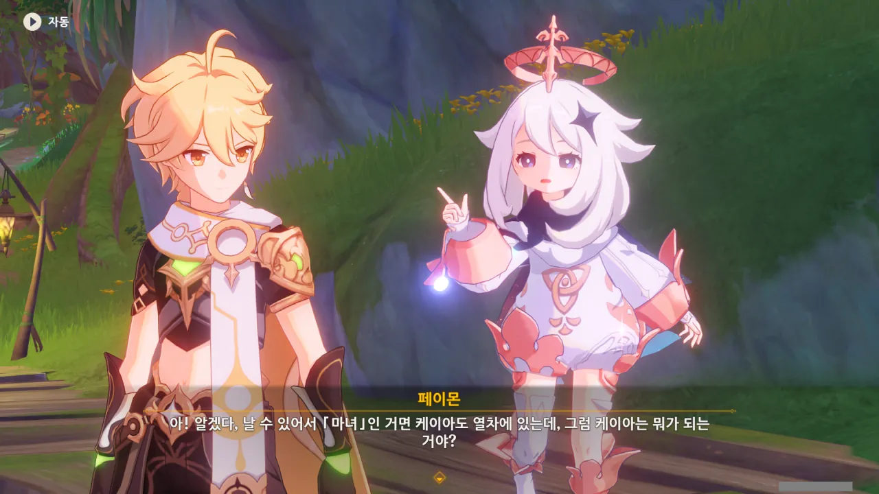 클레가 페이몬의 말을 오해한 것 같다. 페이몬은 '날 수 있어서 「마녀」가 되는 거라면, 같이 열차를 타고 날았던 「대도」 케이아는 대체 뭐가 되는 거야?'라고 물었고, 클레는 이걸 오해해서 '케이아는 대체 뭐가 되는 거야?'로 이해한 것 같다.