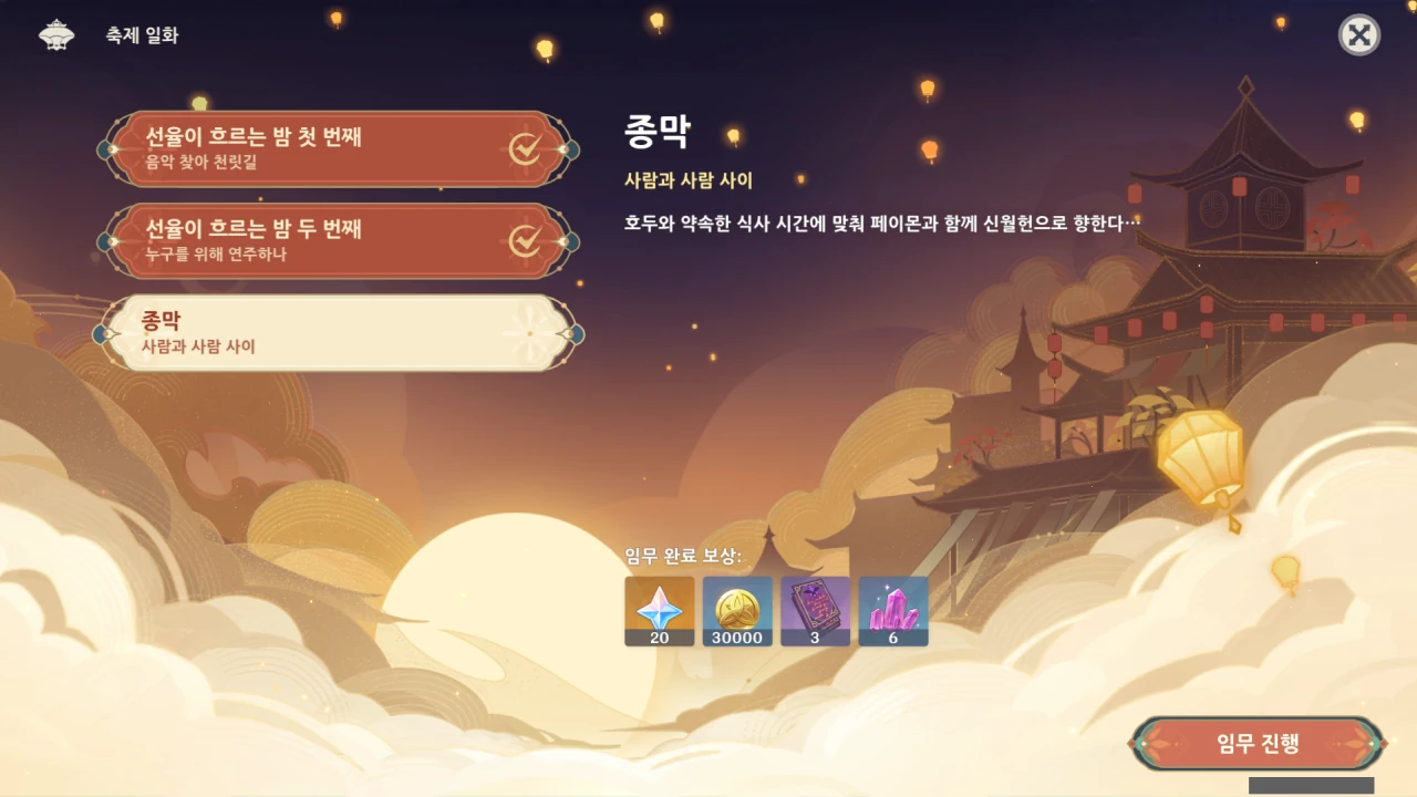 저번에 확인했을 땐 '선율이 흐르는 밤 두 번째" 임무까지밖에 없어서 이번 이벤트의 모든 스토리가 다 끝난 줄 알았는데!