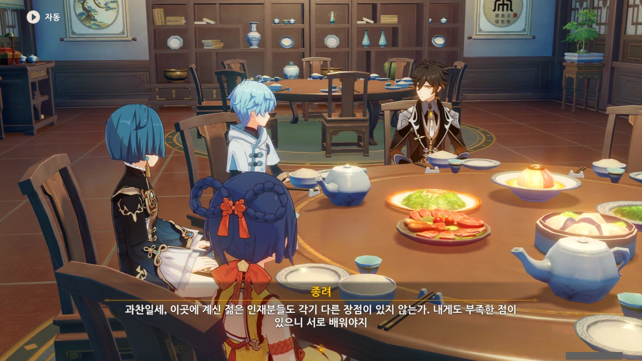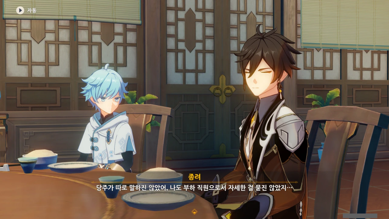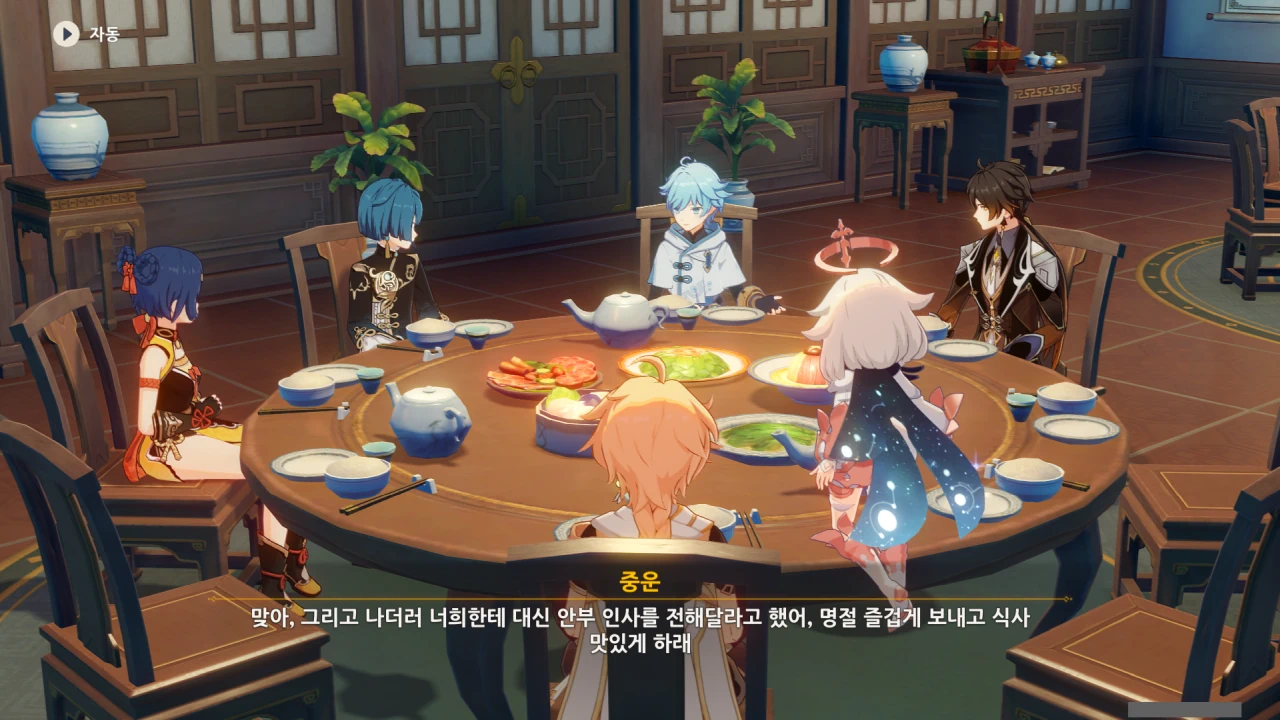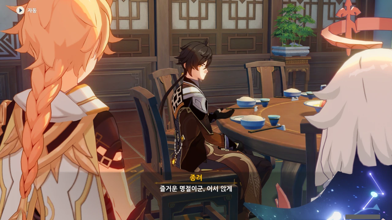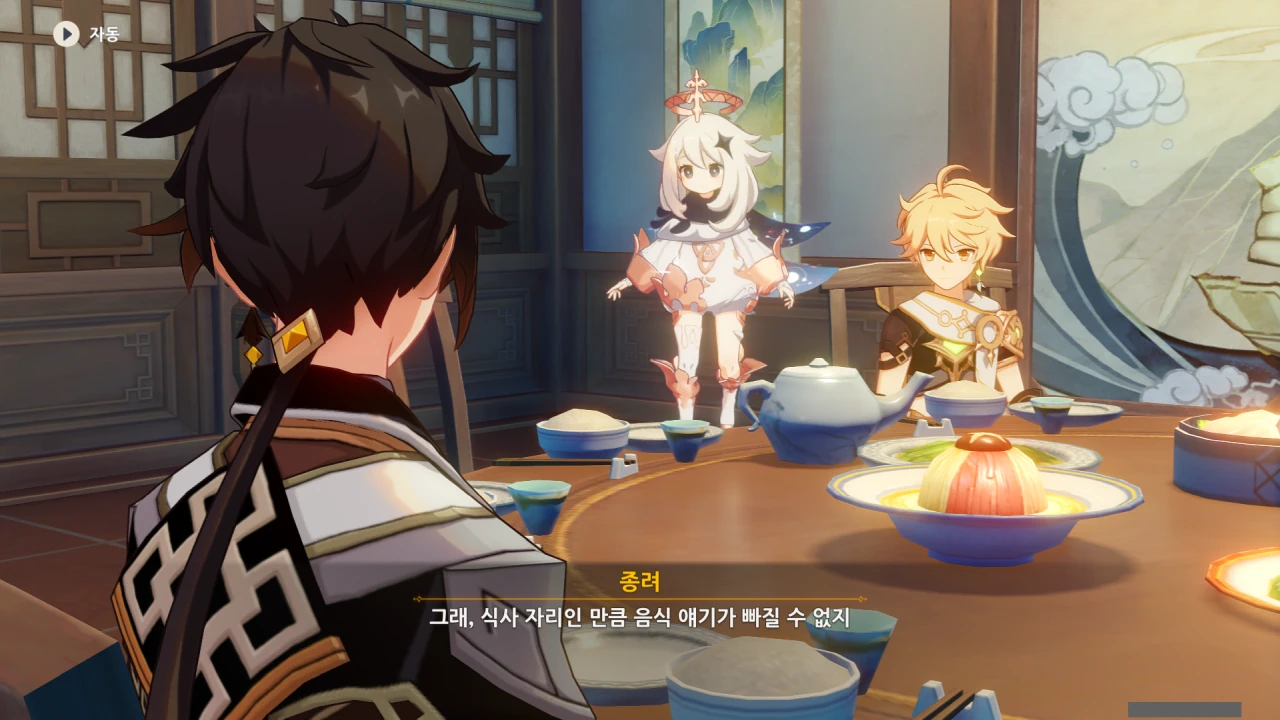 페이몬은 각청, 응광, 북두를 예상했지만, 아까 본 컷신의 내용에 따르면 저 셋은 응광의 초대로 응광과 따로 식사할 것이다.