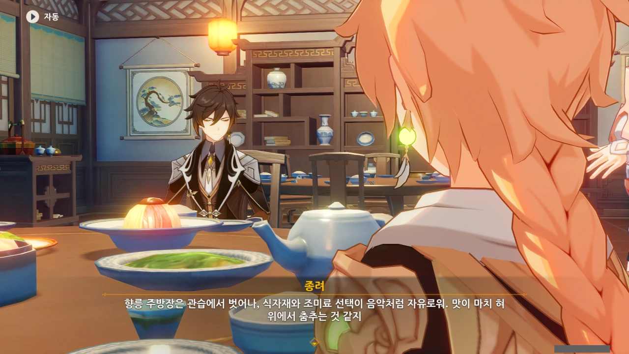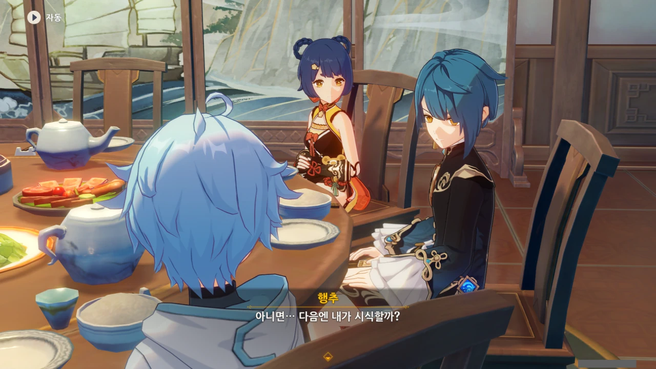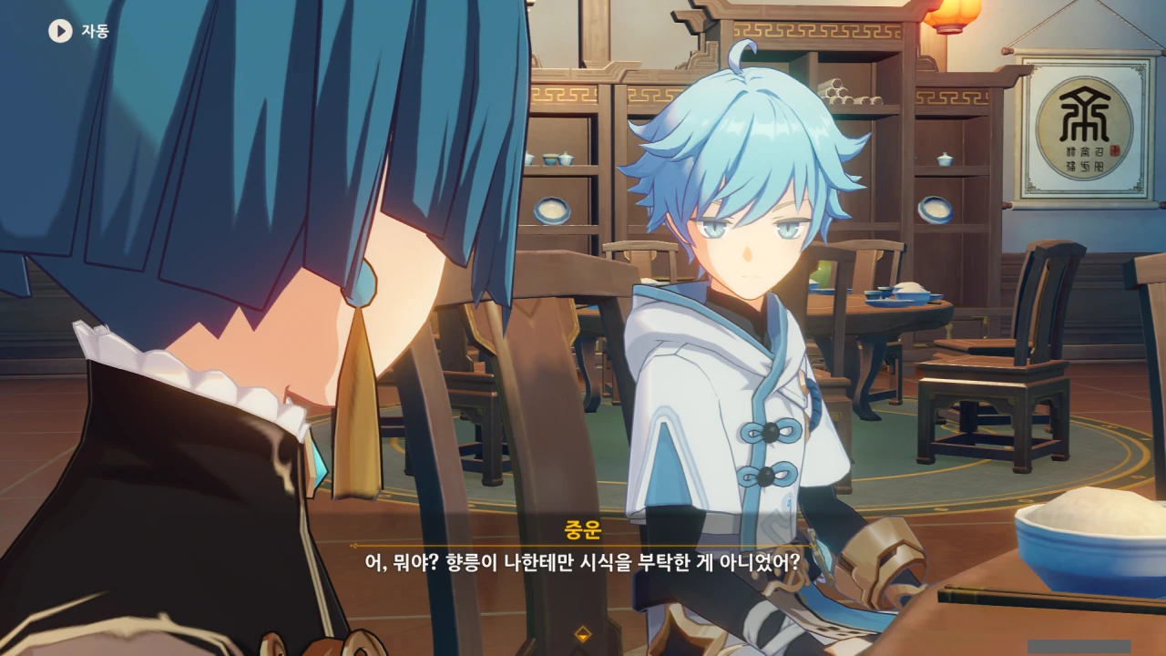 행추 이 녀석, 중운을 향릉의 신메뉴 베타테스터로 내세운 후, 종려의 조언을 통해 안정된 요리를 자신이 먹을 생각이다.