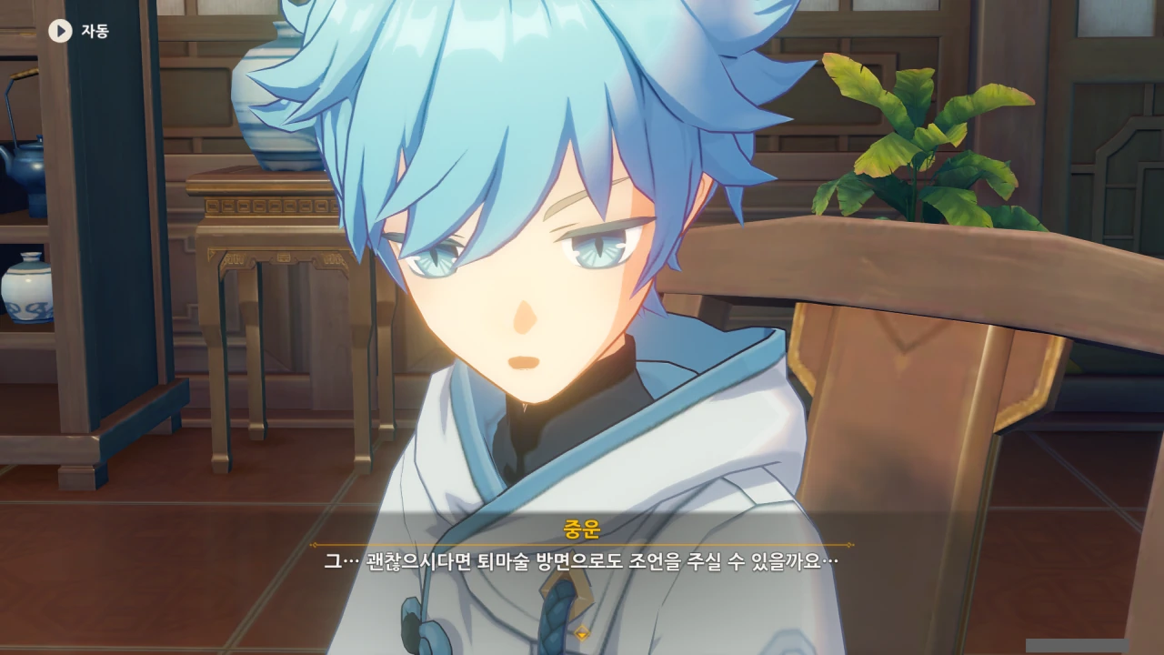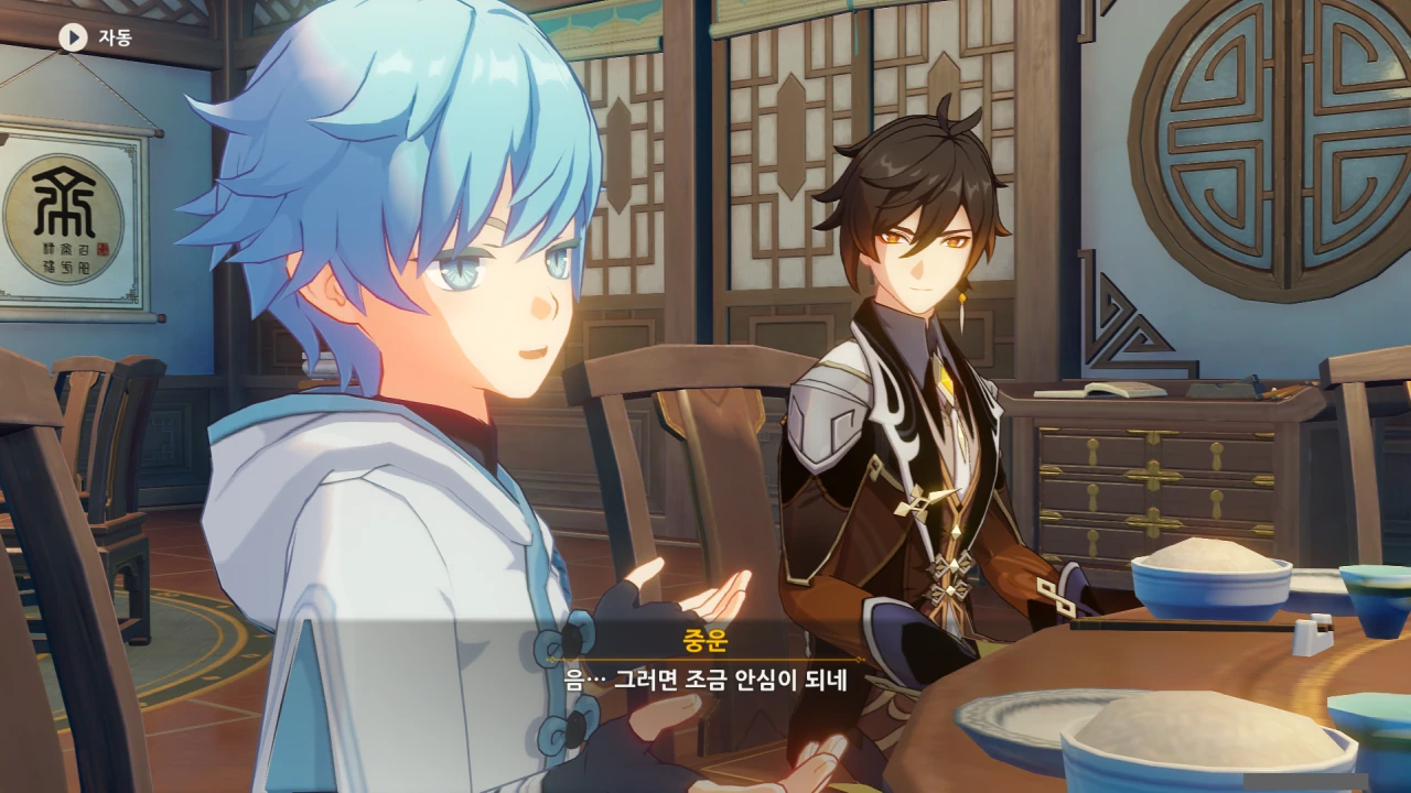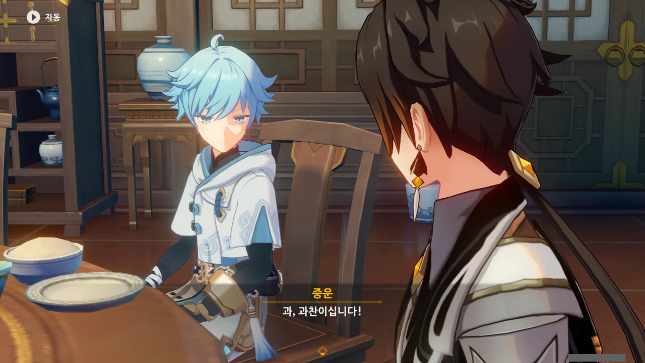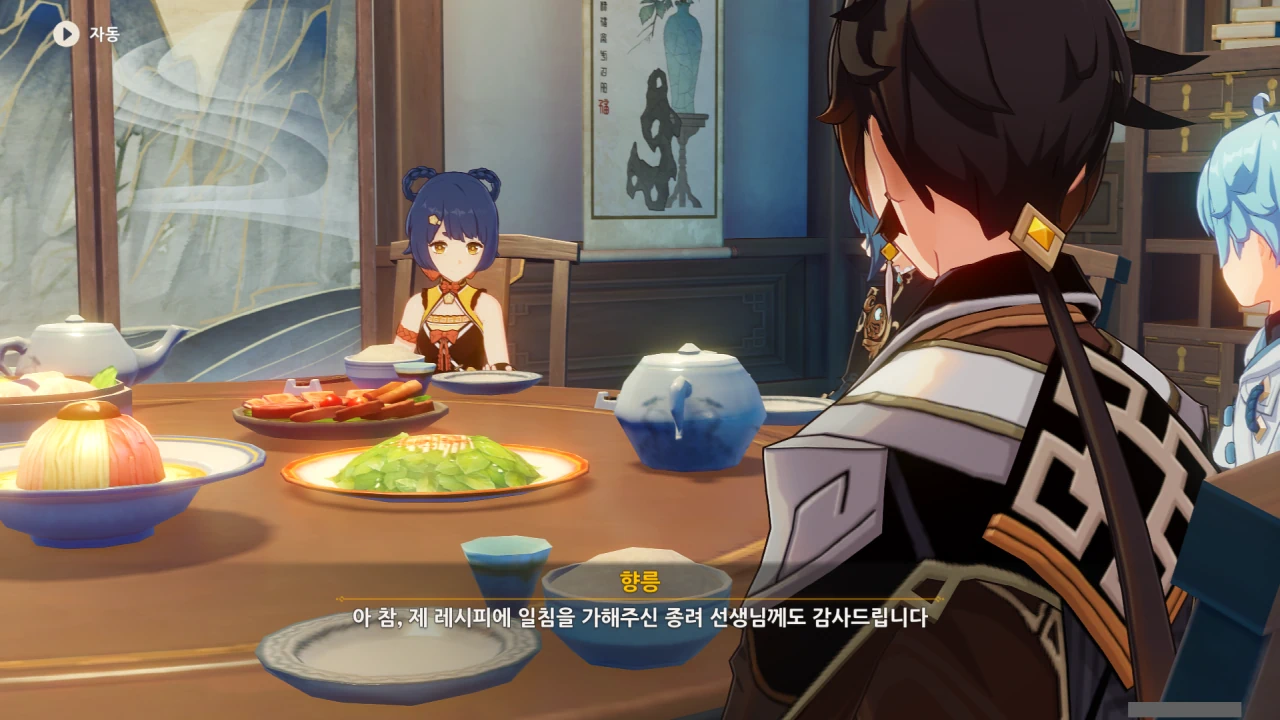행추 이 녀석, 중운을 향릉의 신메뉴 베타테스터로 내세운 후, 종려의 조언을 통해 안정된 요리를 자신이 먹을 생각이다.