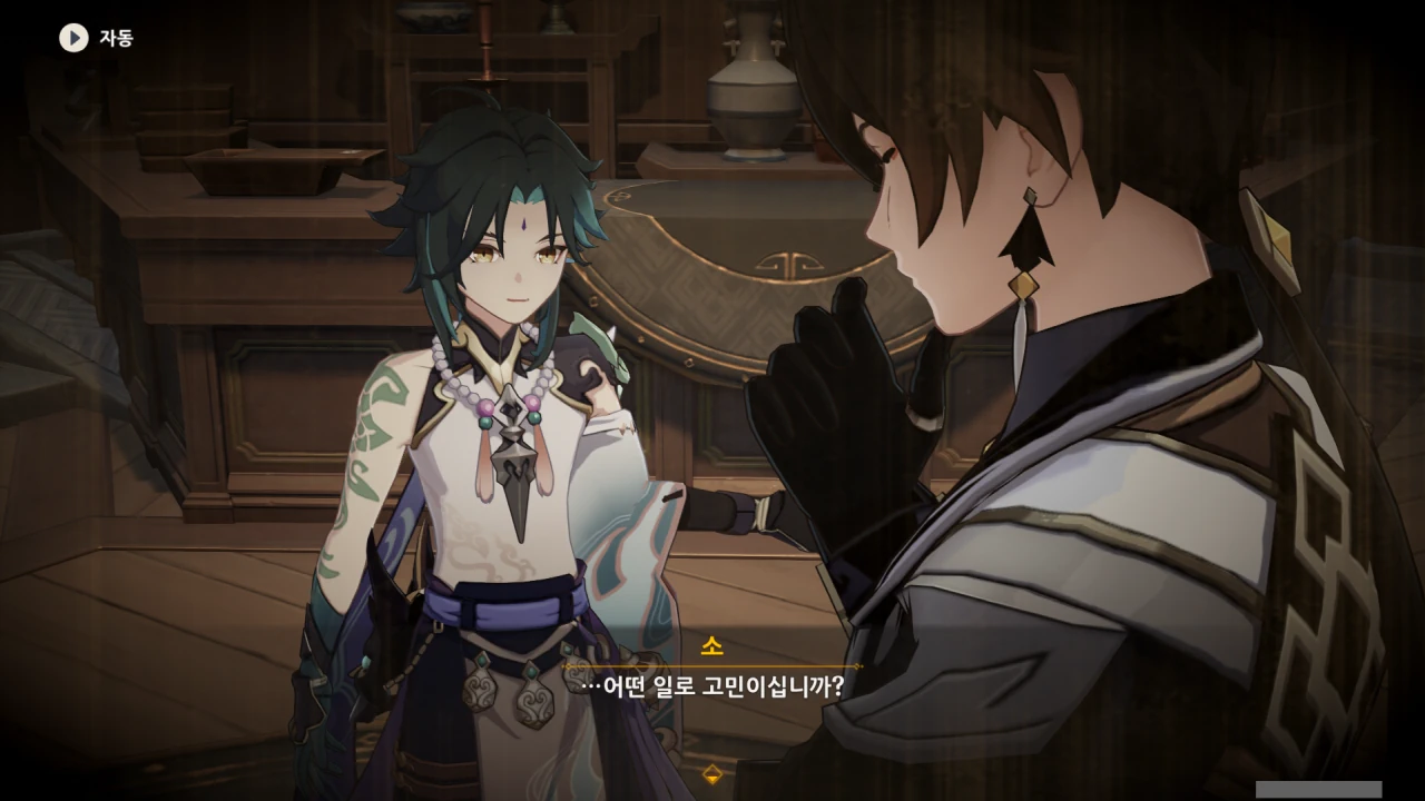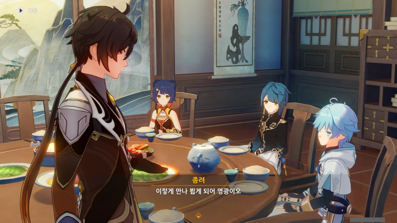 여기에 있는 사람 중, 종려가 정체를 숨긴 암왕제군임을 아는 건 여행자와 페이몬, 그리고 소뿐이다.