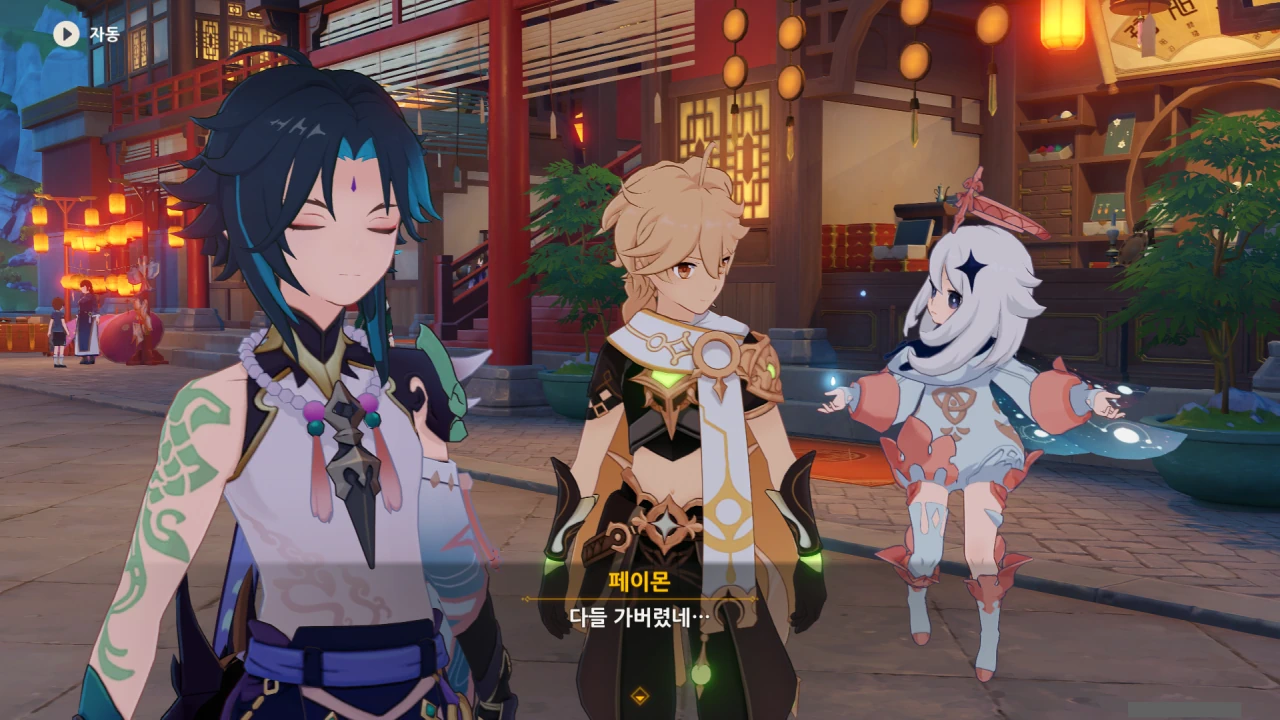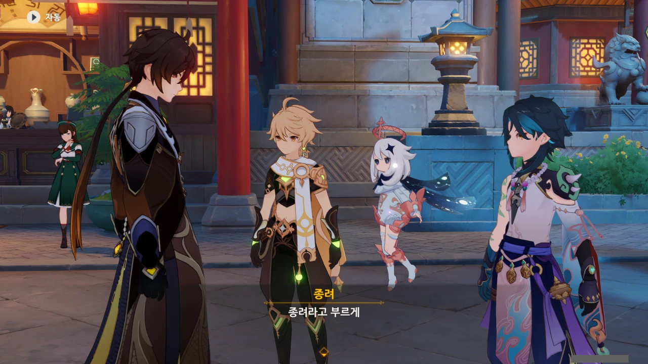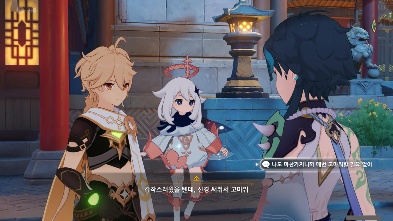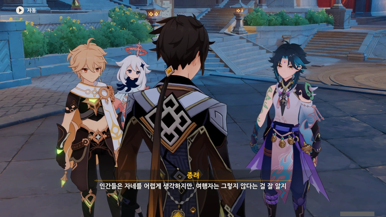 뭔가 인원 배분이 의도적인 것처럼 보이는데, 나만 그렇게 느끼는 걸까? 종려와 함께 움직이는 건 벤티, 소, 여행자, 페이몬 이렇게 넷이니까.