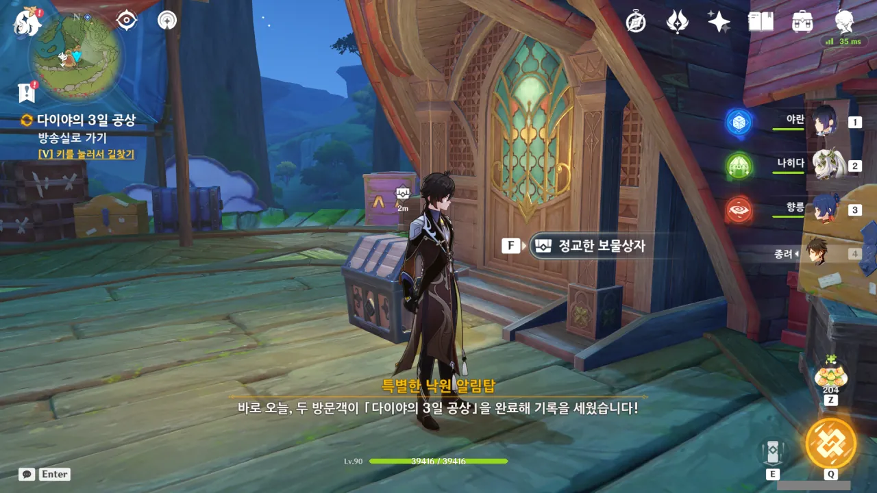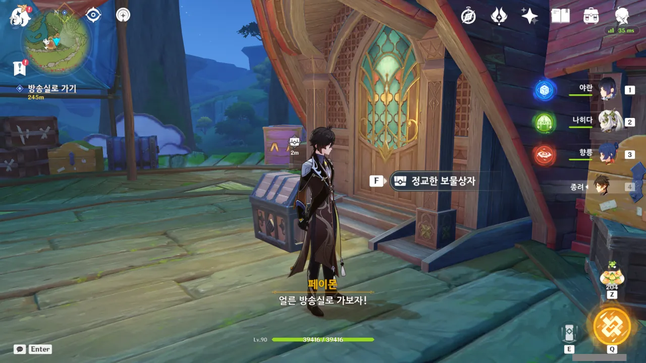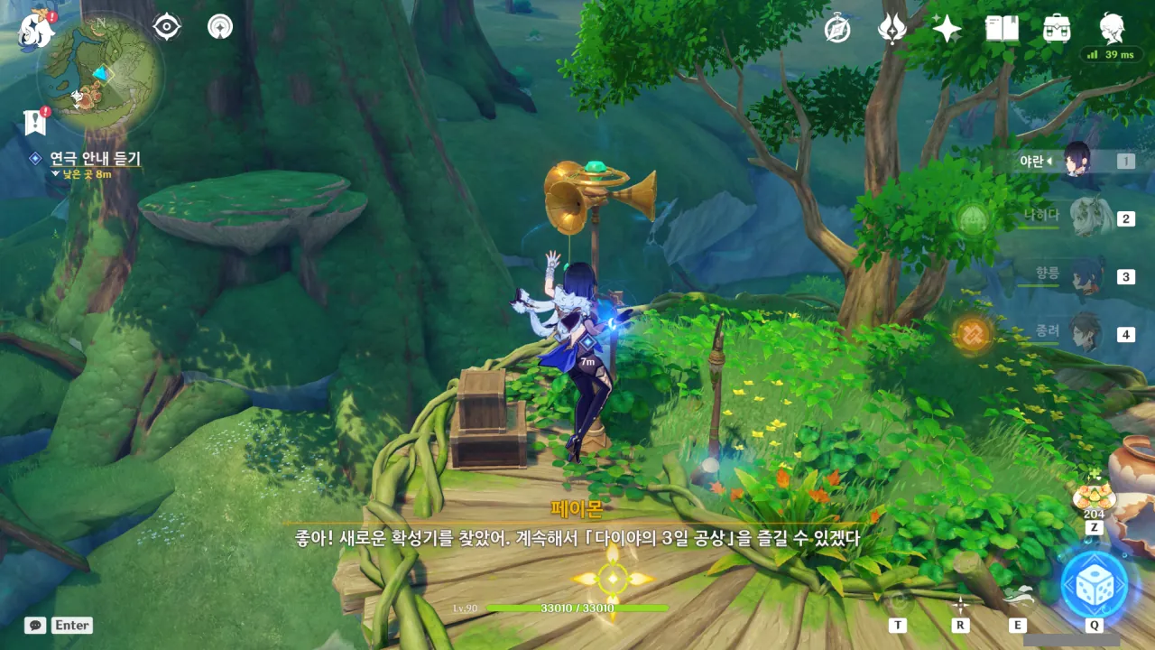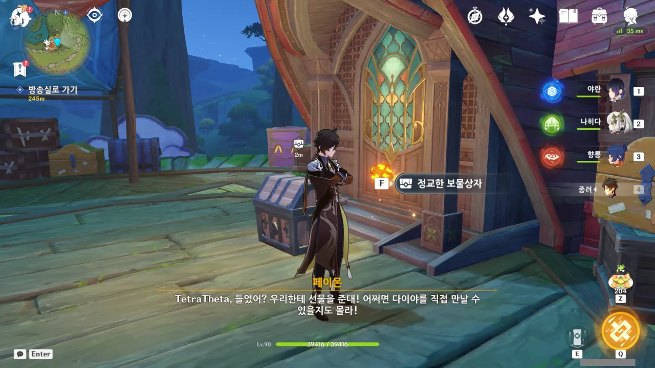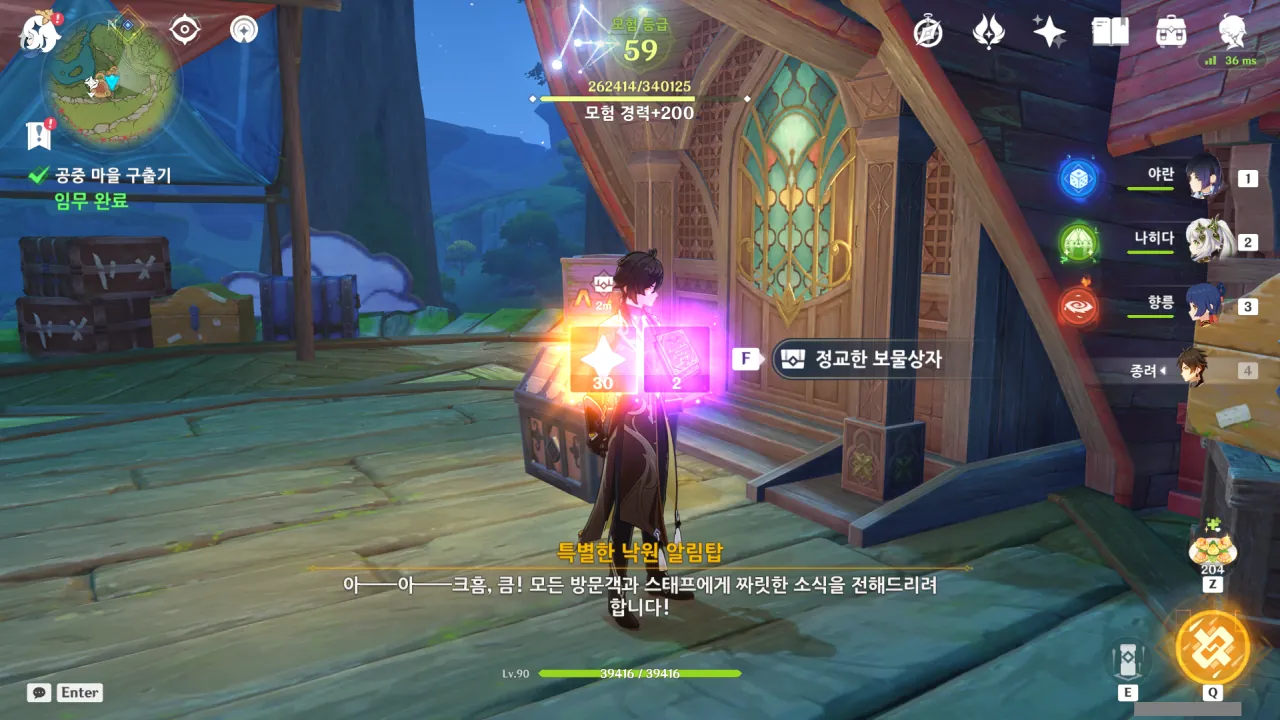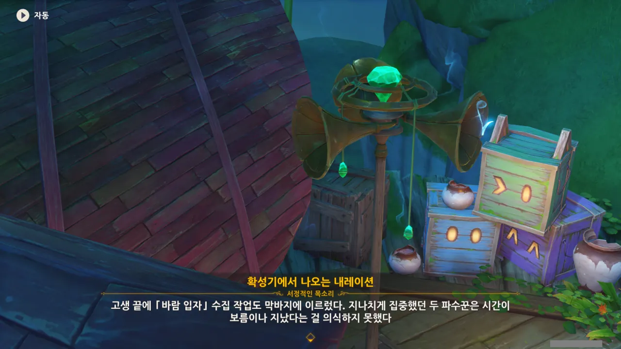 아하, 여기서 여행자와 페이몬이 등장한다. 처음엔 여행자가 건축가 역할을 맡을 줄로 예상했는데, 이번 연극에서 여행자와 페이몬은 '마을의 떠오르는 샛별", '마을 중 제일가는 파수꾼'의 역할을 맡는다.