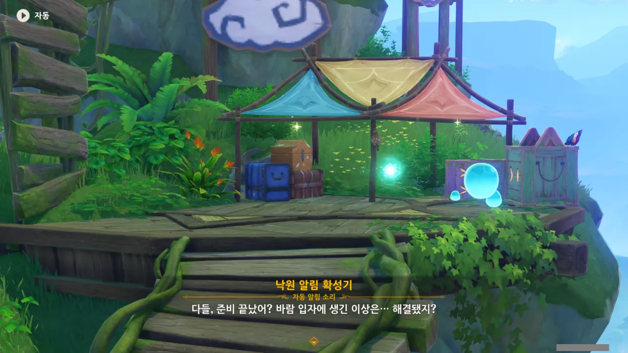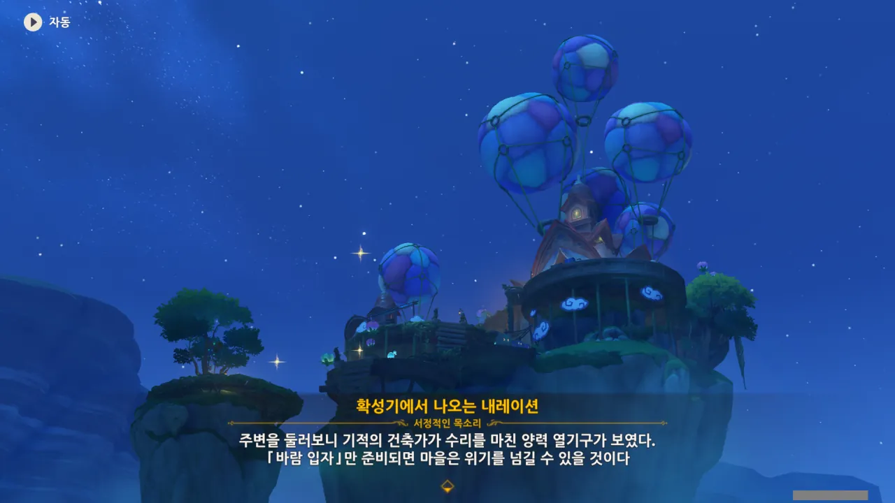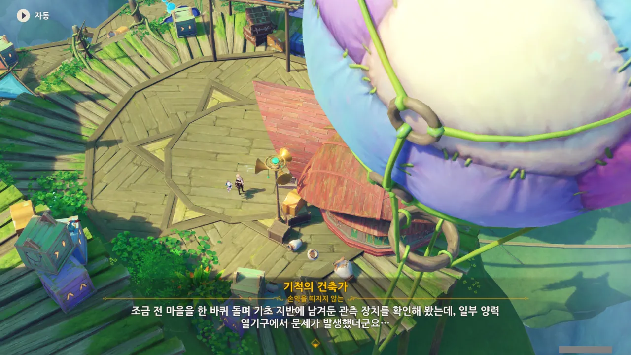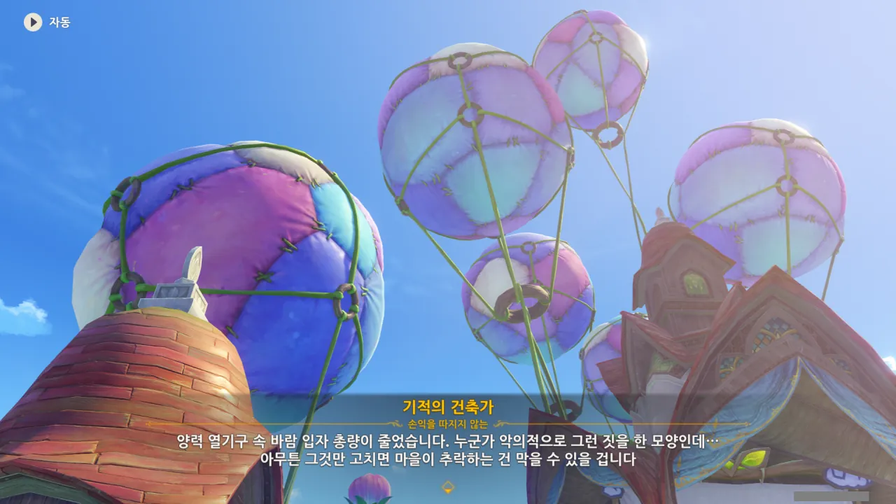 들아와 보니 이미 열기구는 모두 수리가 되어있었다. 바람 입자만 다시 넣어주면 모든 게 정상으로 되돌아올 예정.