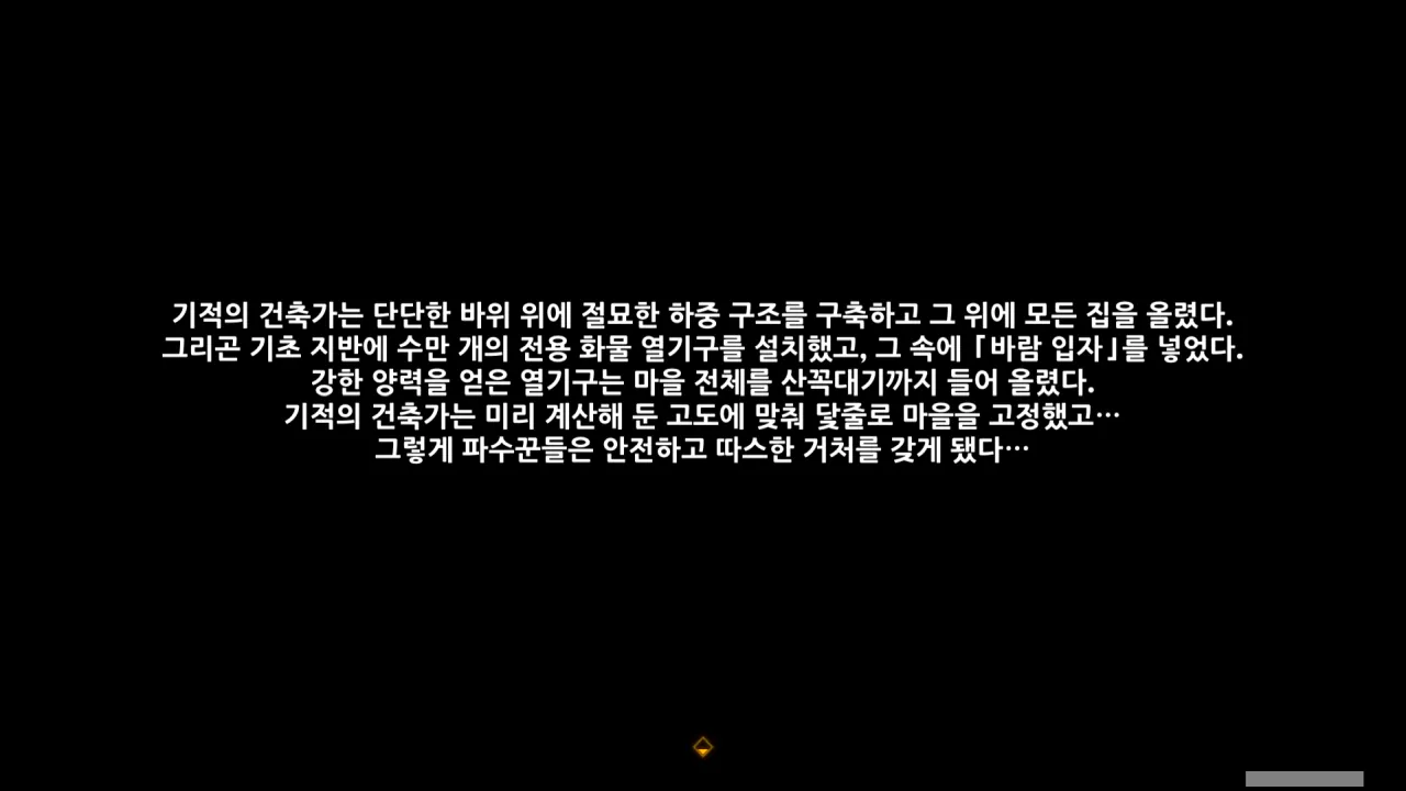 마을이 계속 올라가는 것을 보고 장로는 '설마 건축가님은 우리가 더 높은 곳에 사는 것이 어울린다고 생각하는 것일까'라고 생각한 모양. ㅋㅋㅋ