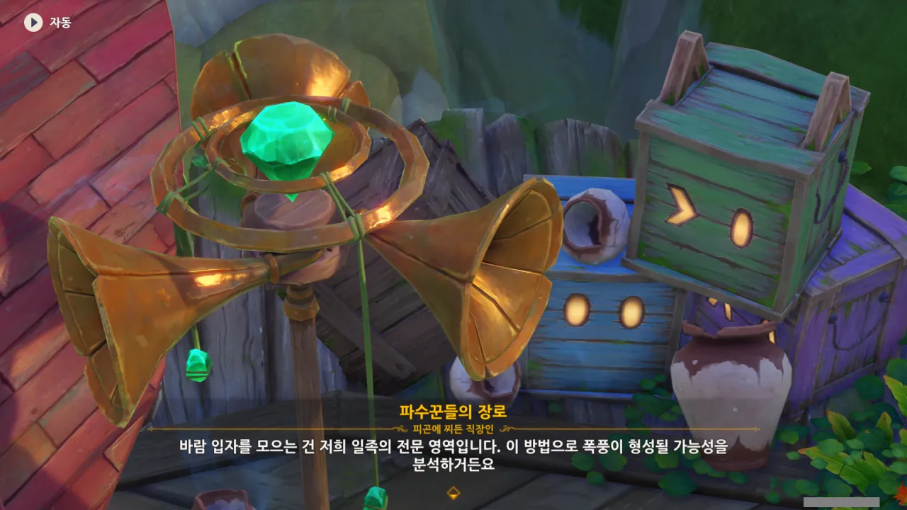 열기구의 양력을 보충하려면 흩어진 바람 입자를 모아야 한다. 그리고 마침 마을 사람들의 전문 분야가 그 바람 입자를 모으는 것이다.