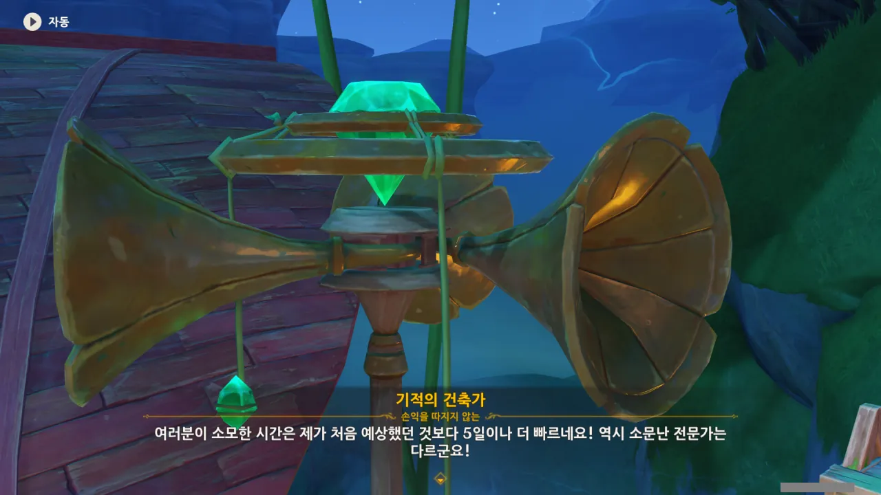 그 와중에 여행자와 페이몬은 건축가의 예상 소요 시간보다 5일이나 빨리 바람 입자를 모아 왔다고 한다.