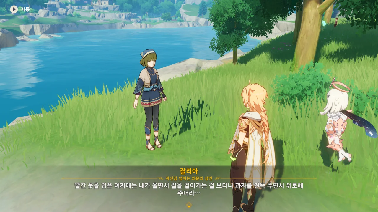 울며 길을 걸어가는 잘리아를 보고 과자를 잔뜩 주며 위로한 빨간 옷을 입은 여자애는… 앰버 아니면 클레일 것 같은데, 앰버는 과자를 잔뜩 들고 다닐 것 같지 않다. 분명 클레겠지.
