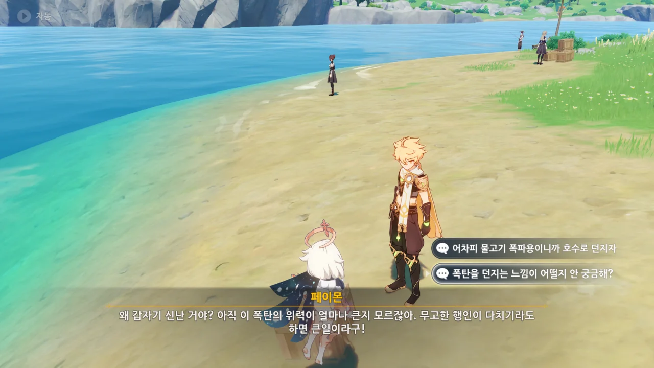 페이몬. 폭탄을 던지는 느낌은 과연 어떨까? 폭탄이 터지면 어떤 느낌일까? 궁금하지 않아?