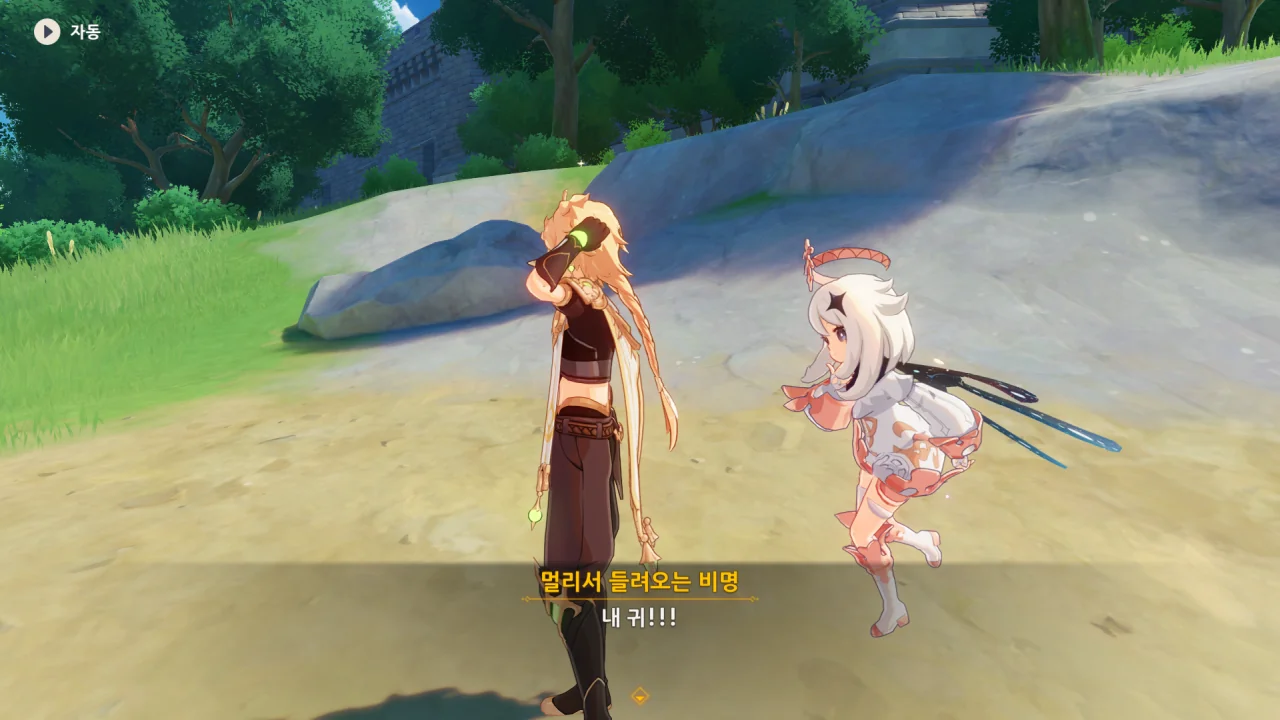 이번에도 페이몬은 무슨 말을 하는 것인지 전혀 이해하지 못하고 있다.