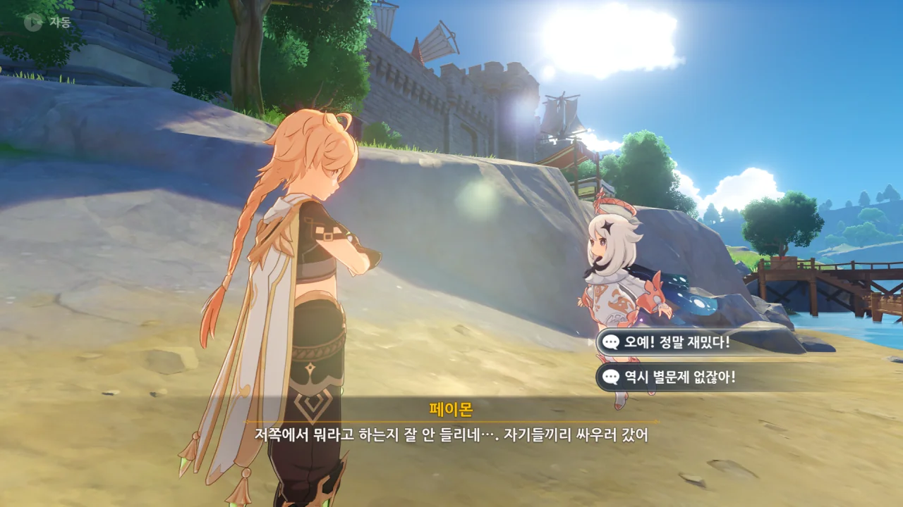 의외로 상식적인 말을 하는 페이몬을 살살 꼬신다.