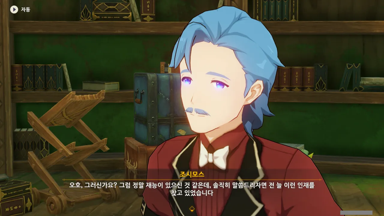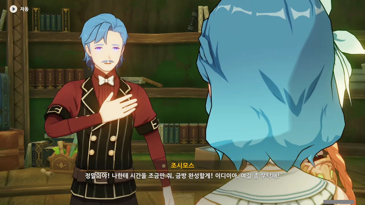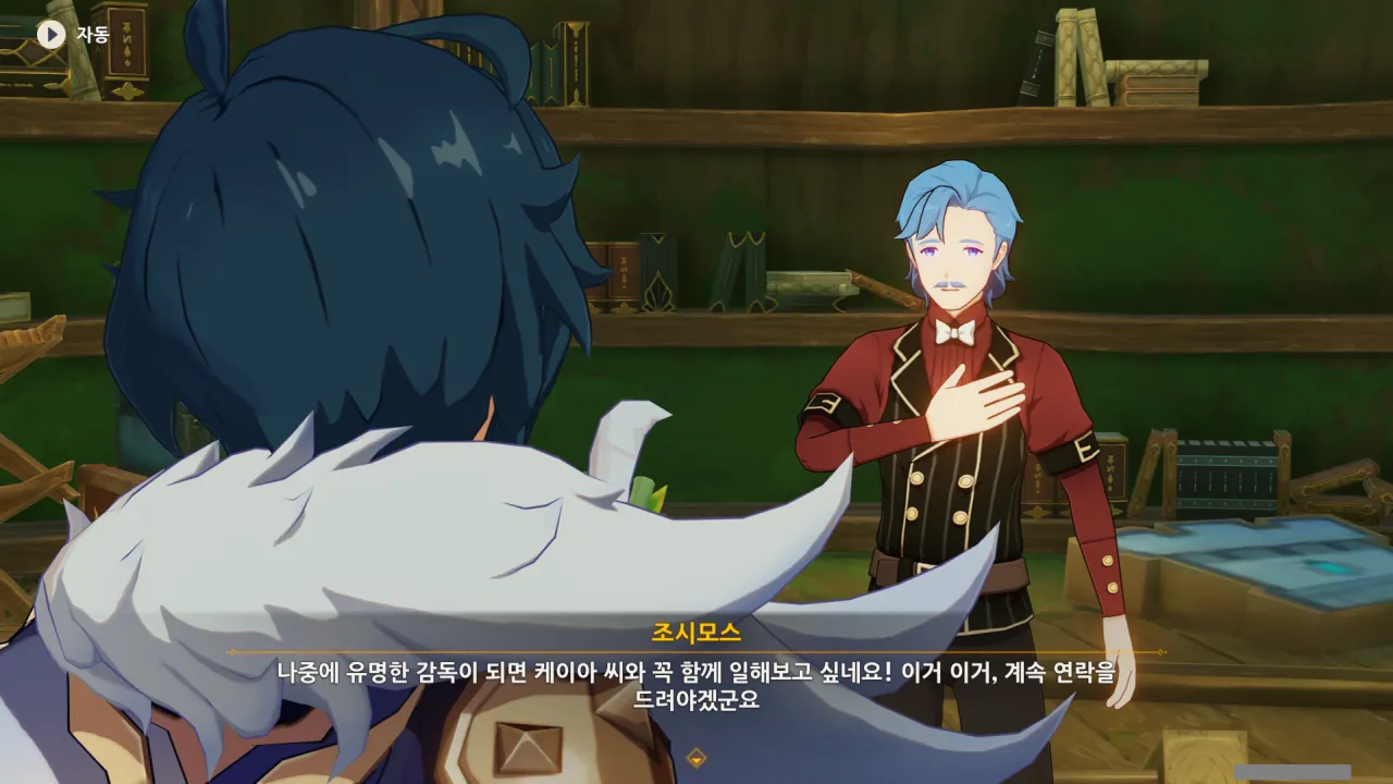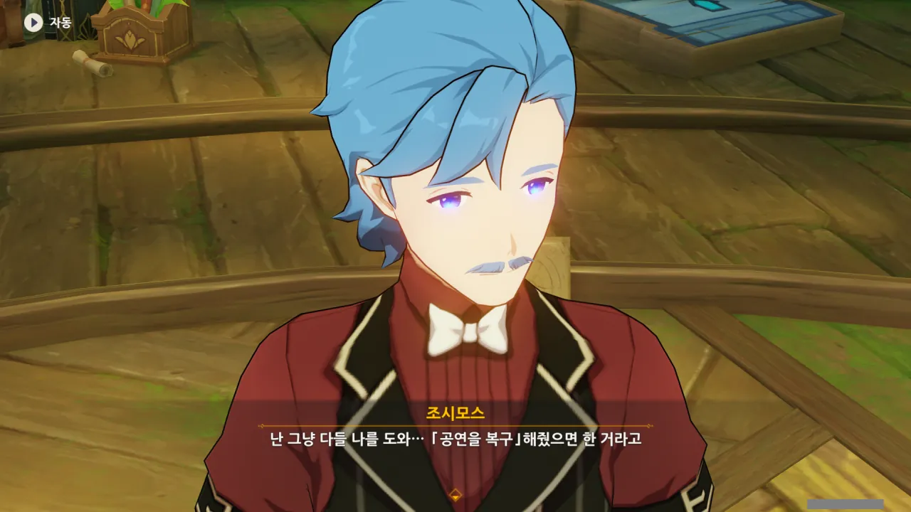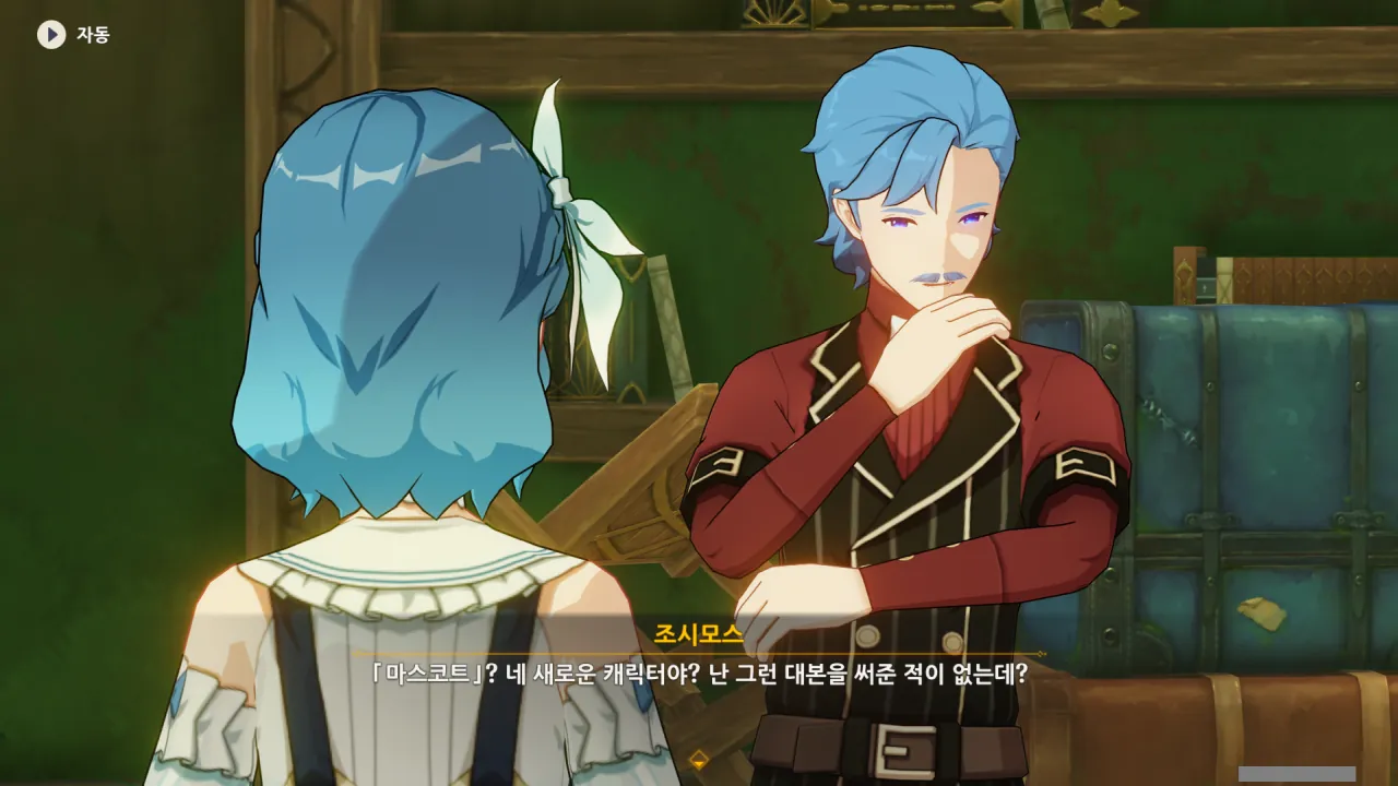 아까 지도에서 봤던 '상상 극장'이라는 지역명, 대화 중 언급된 '무대", '감독'이라는 단어들을 조합해 보면, 조시모스는 아마 극장 무대에서 펼쳐지는 연극을 관리하는 감독인 것으로 보인다.