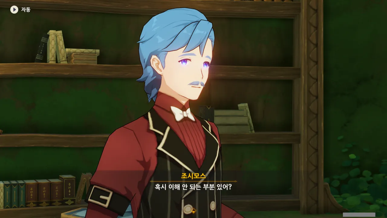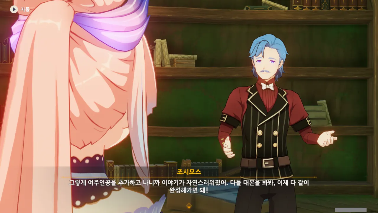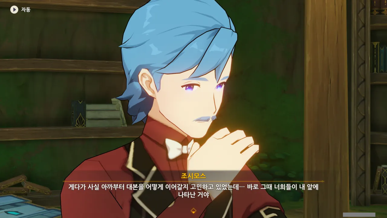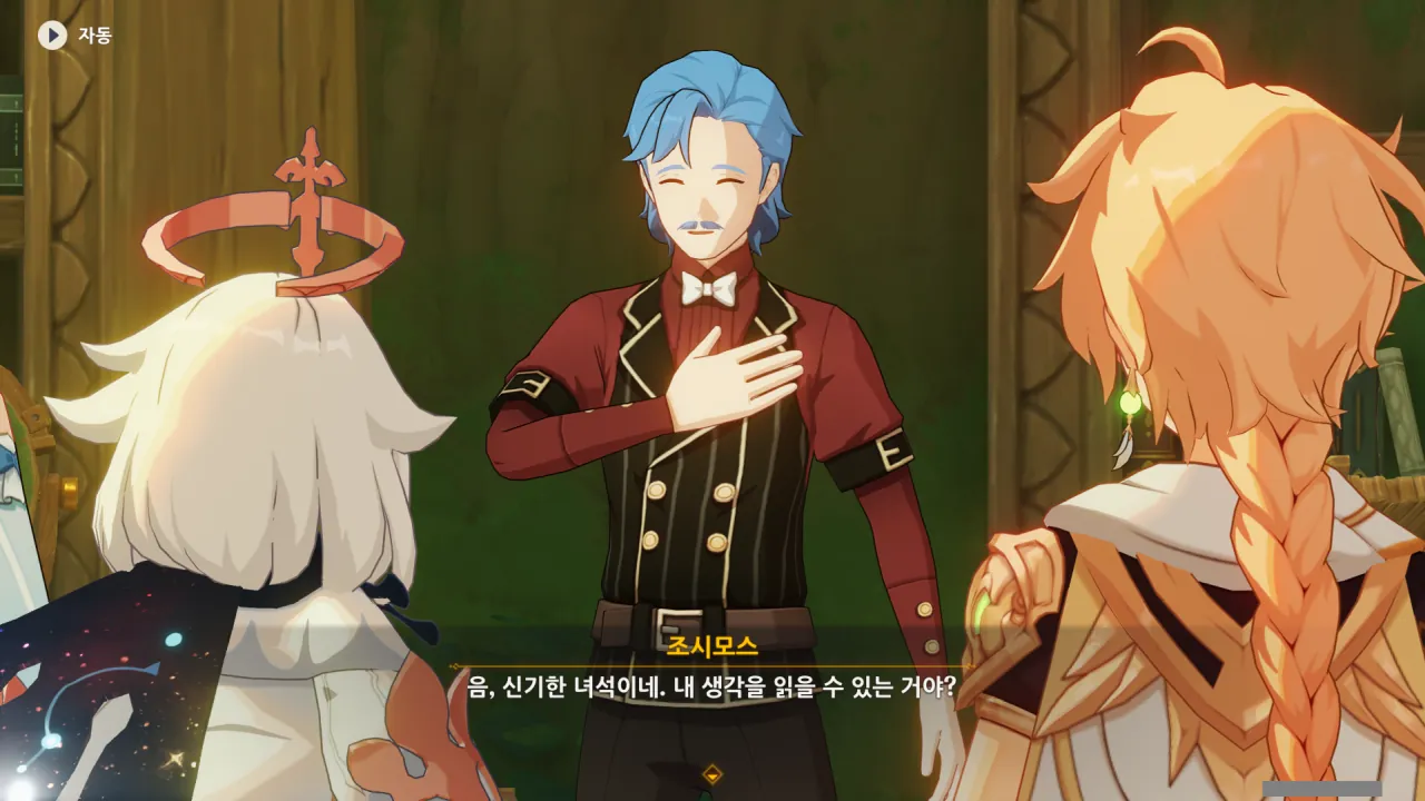 아까 지도에서 봤던 '상상 극장'이라는 지역명, 대화 중 언급된 '무대", '감독'이라는 단어들을 조합해 보면, 조시모스는 아마 극장 무대에서 펼쳐지는 연극을 관리하는 감독인 것으로 보인다.