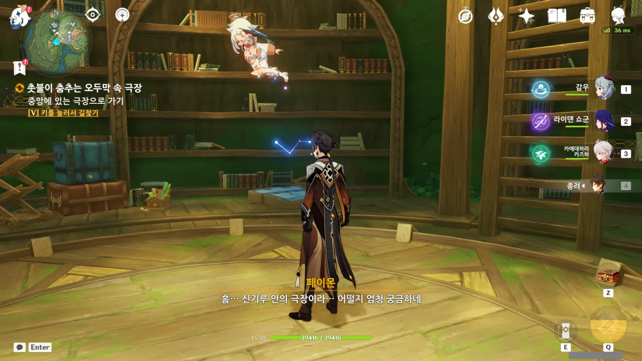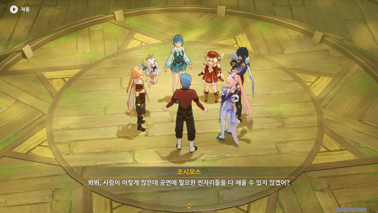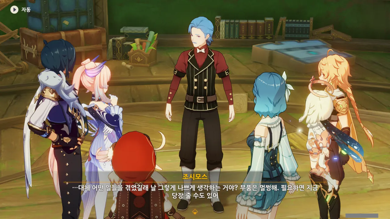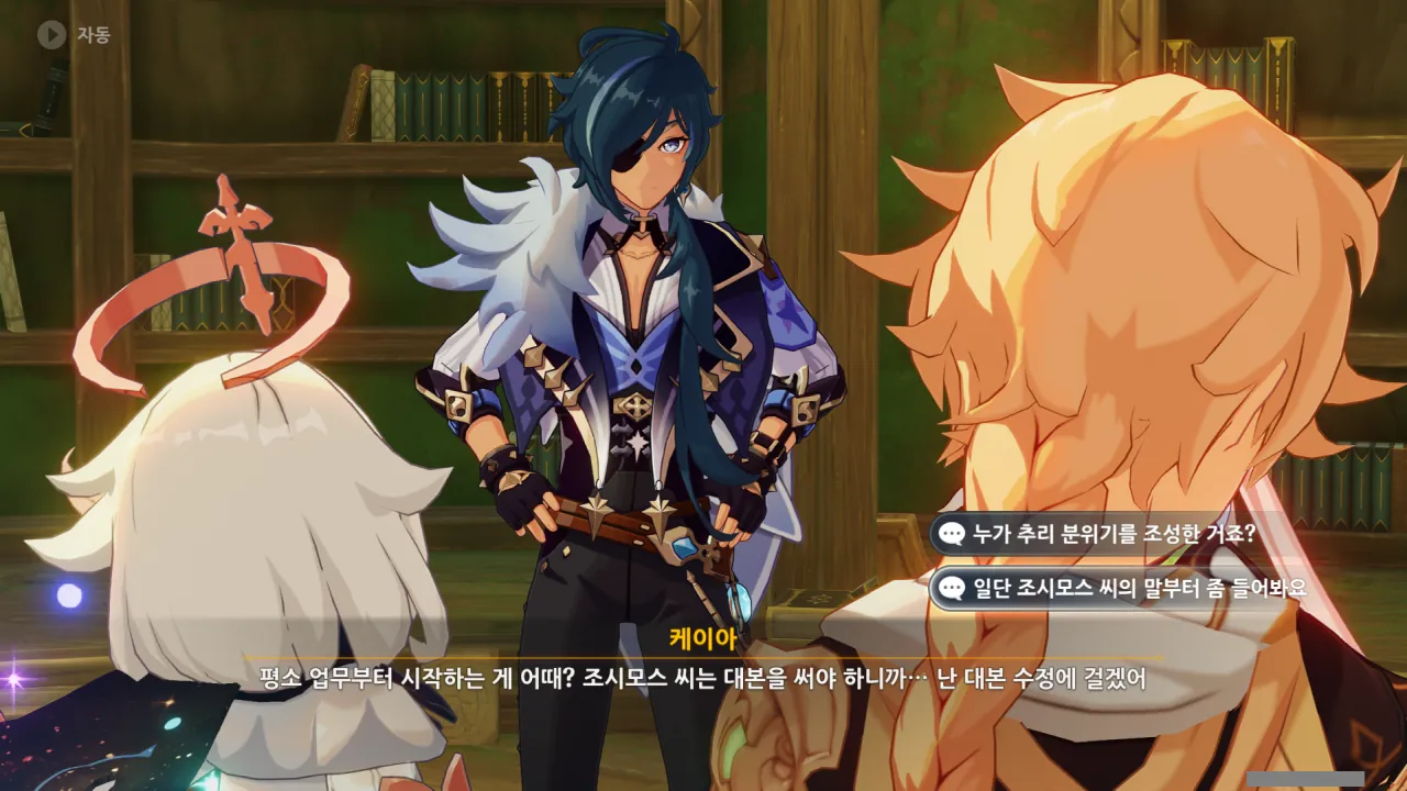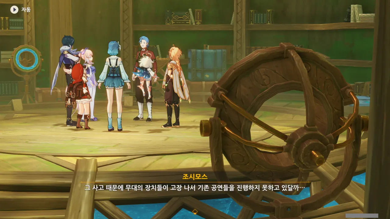 아까 지도에서 봤던 '상상 극장'이라는 지역명, 대화 중 언급된 '무대", '감독'이라는 단어들을 조합해 보면, 조시모스는 아마 극장 무대에서 펼쳐지는 연극을 관리하는 감독인 것으로 보인다.