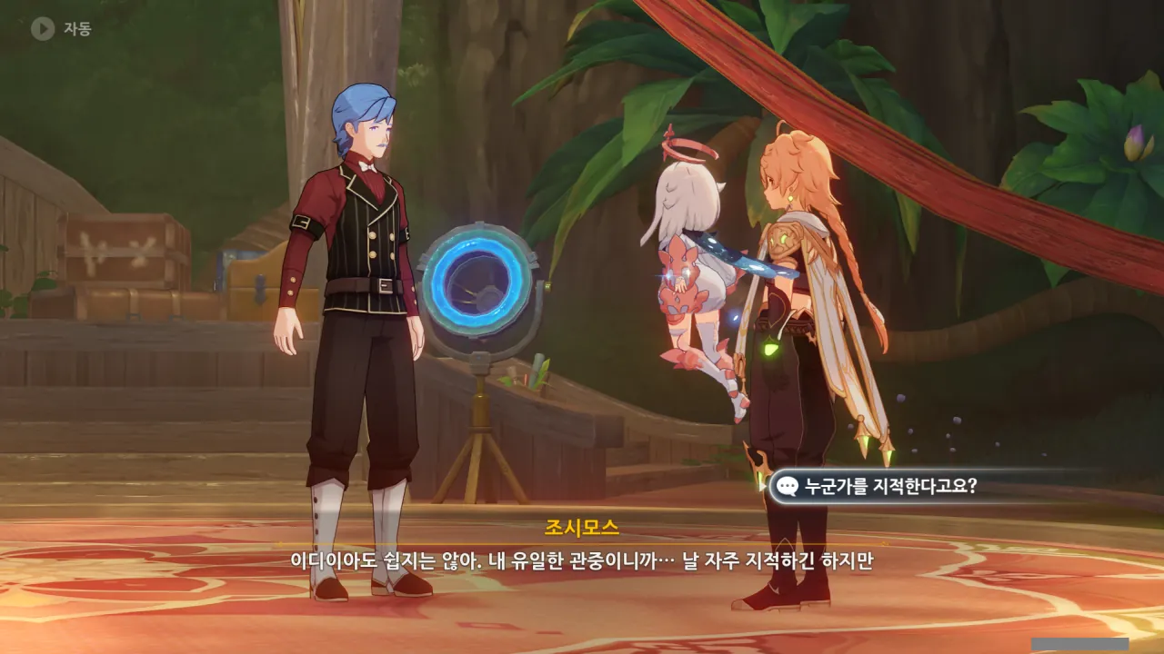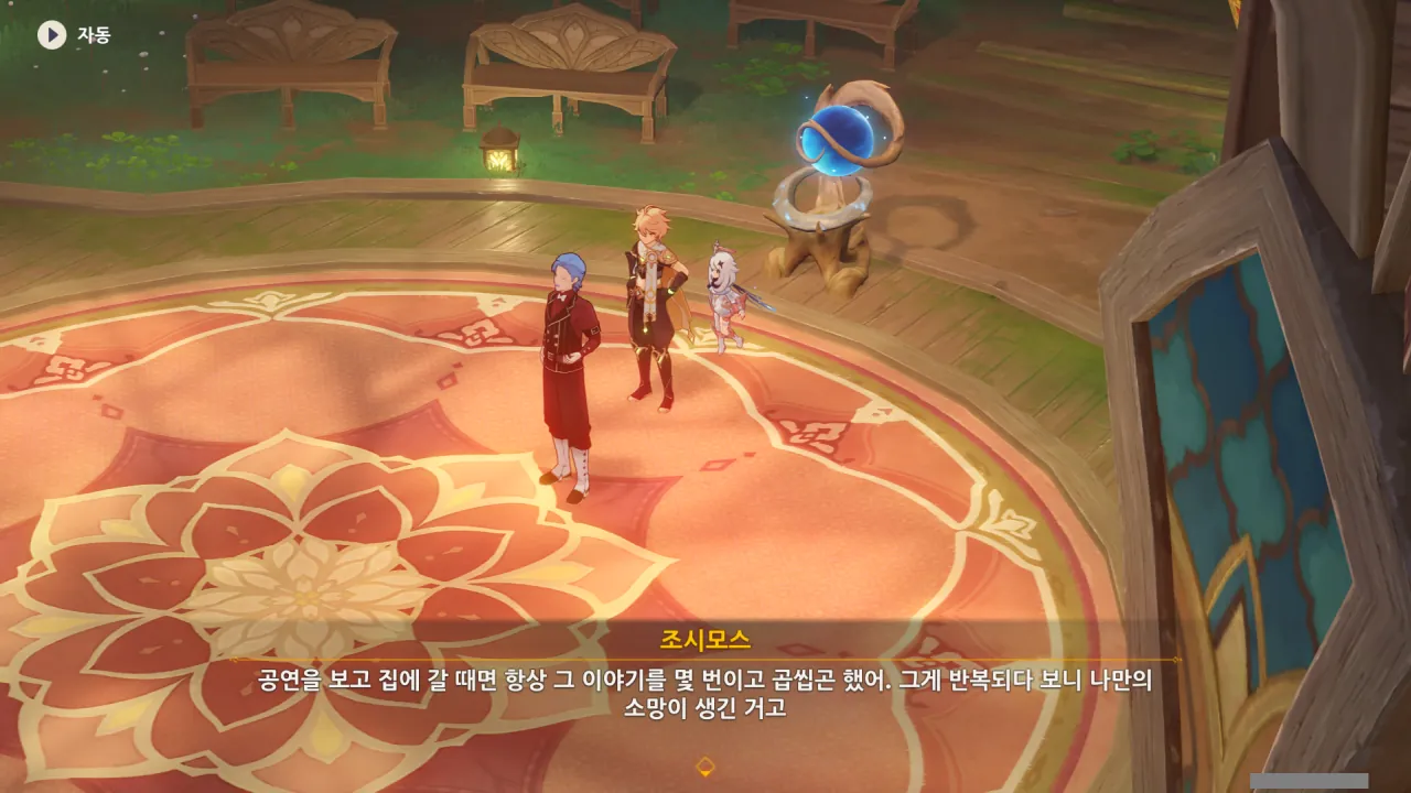 조시모스가 여행자에게 구상도 안으로 들어가 달라고 한 이유는 본인이 만든 연극을 직접 보고 싶어서였다.
