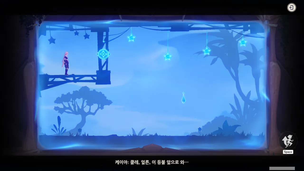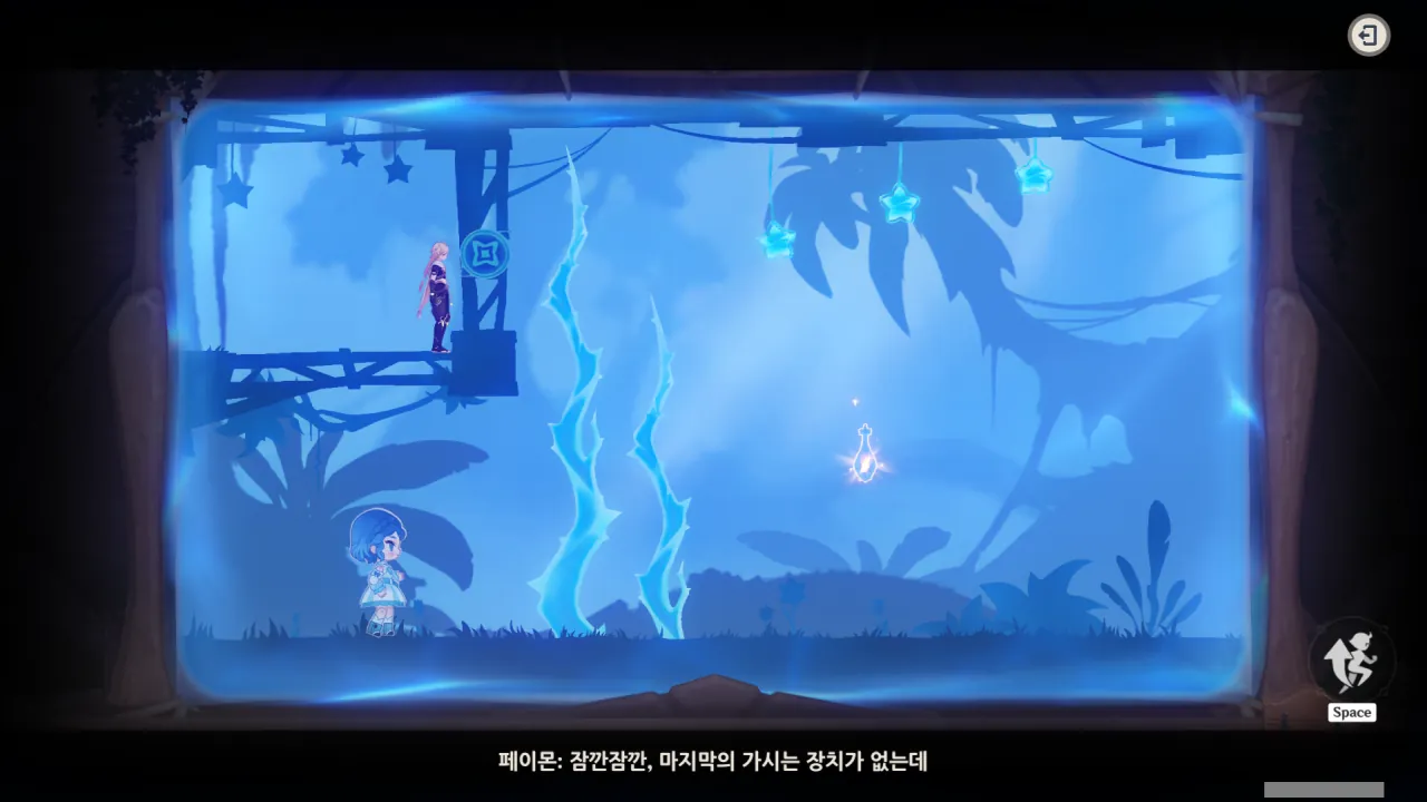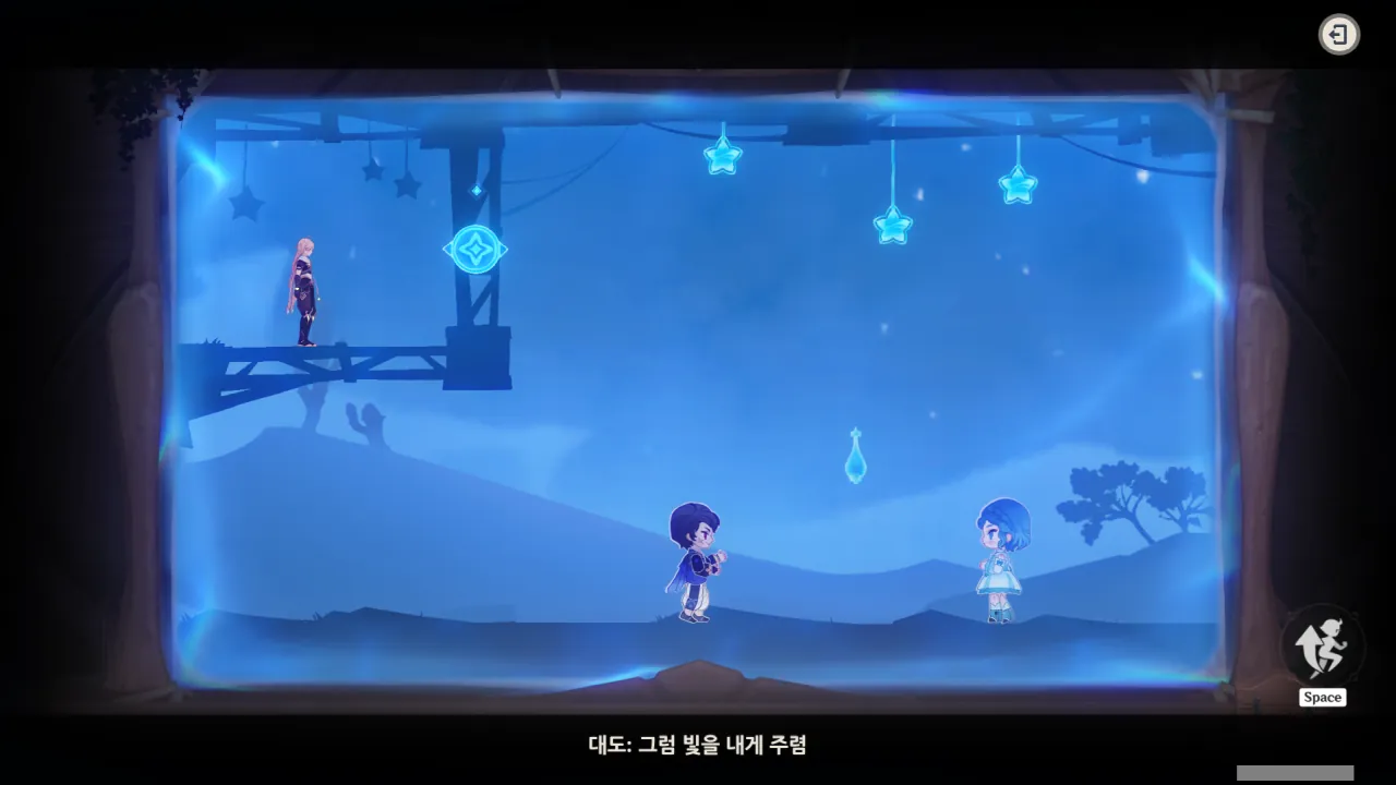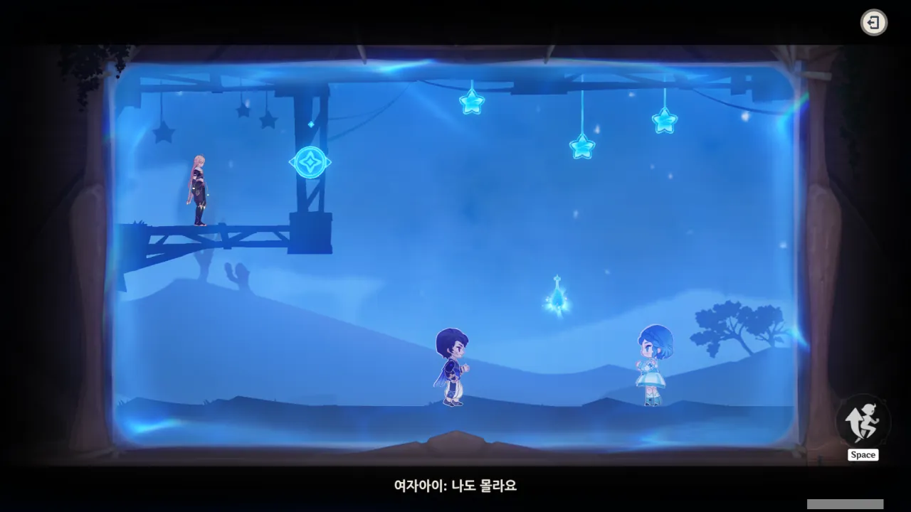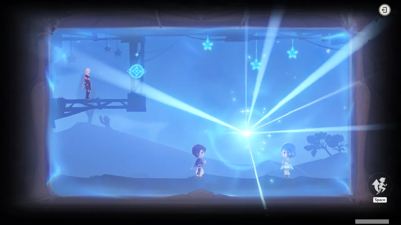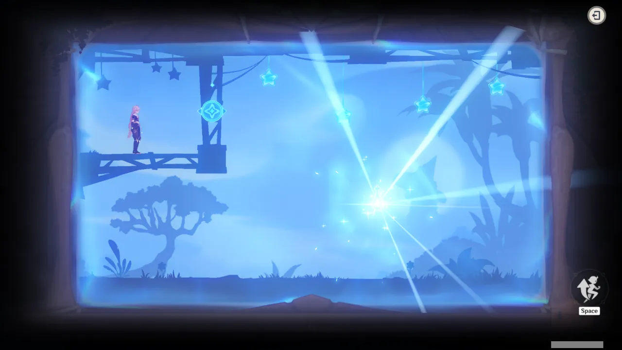 중간에 있는 발판을 먼저 내린 후, 별이 매달려있는 발판 위에 올라서면 된다.