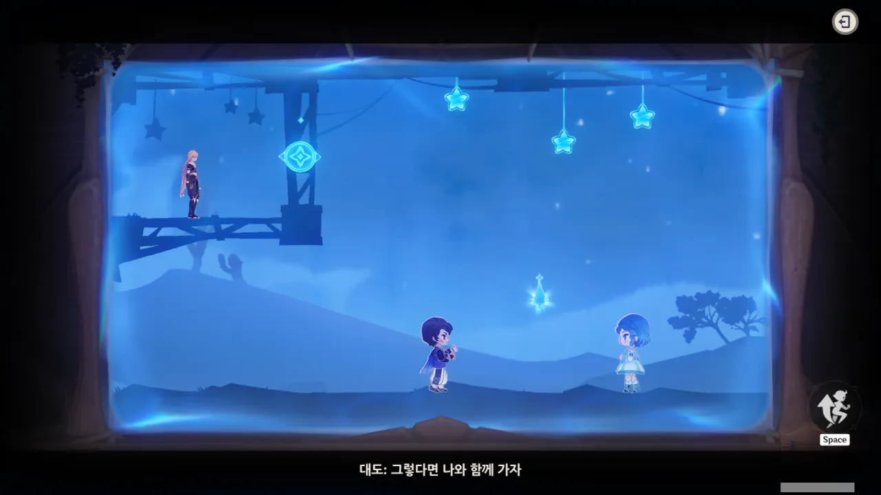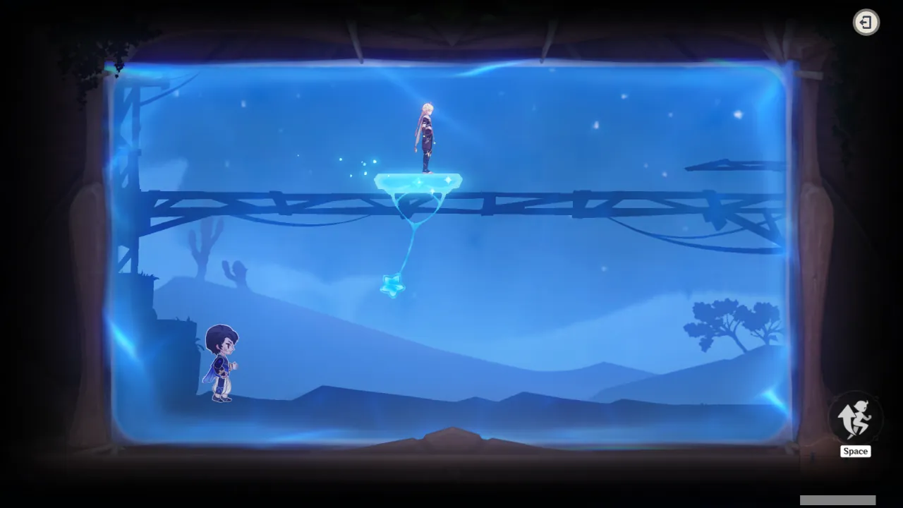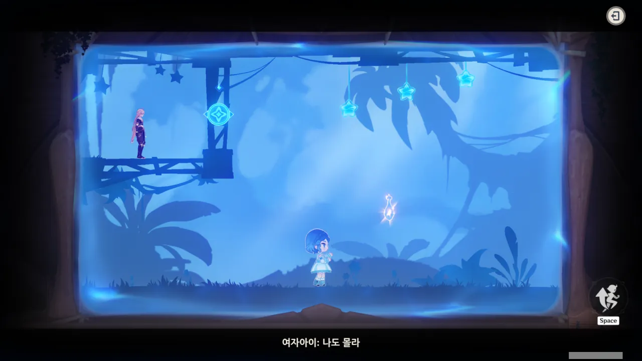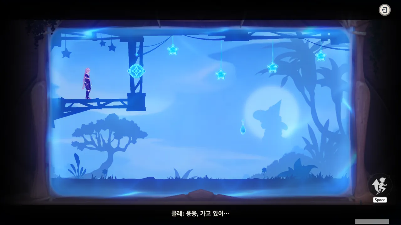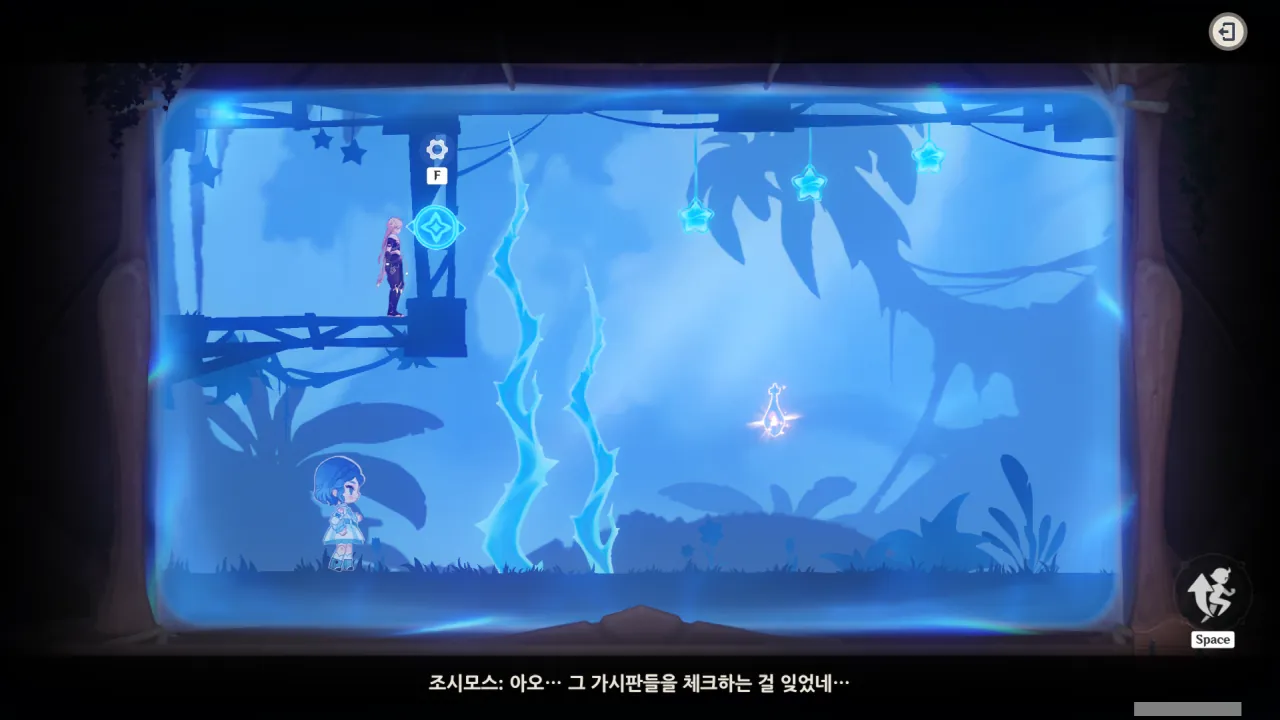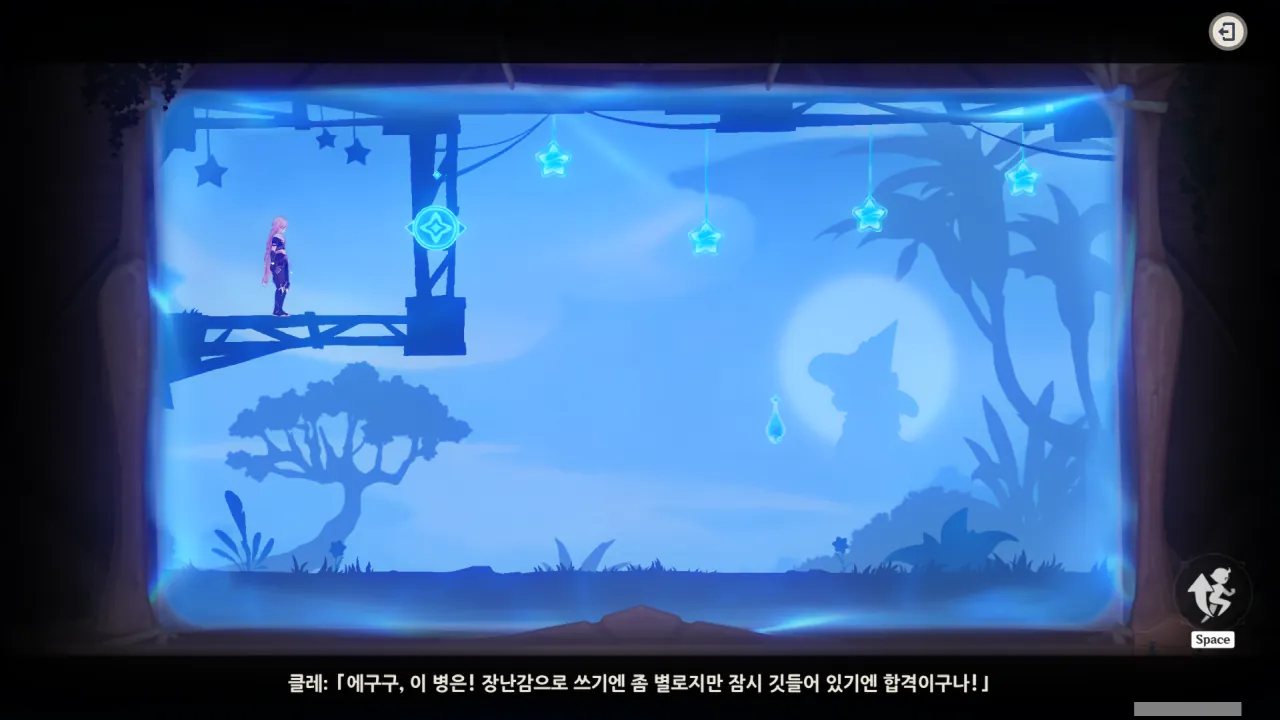 중간에 있는 발판을 먼저 내린 후, 별이 매달려있는 발판 위에 올라서면 된다.