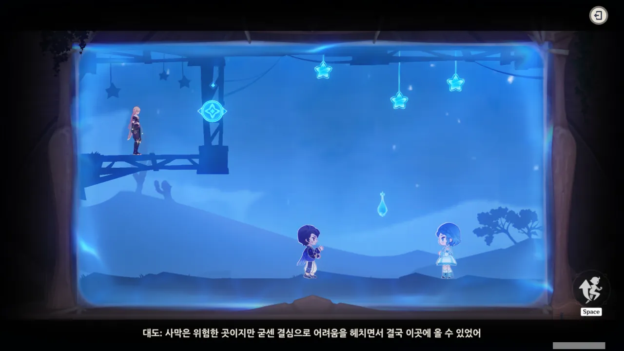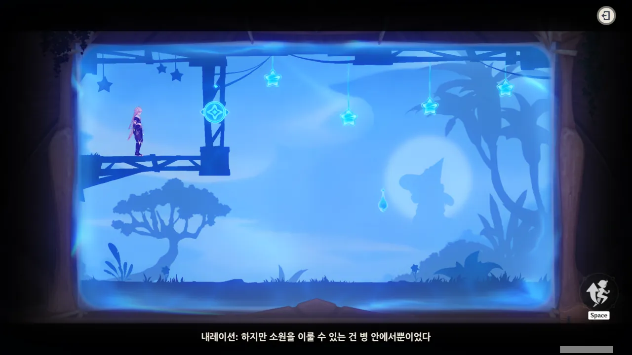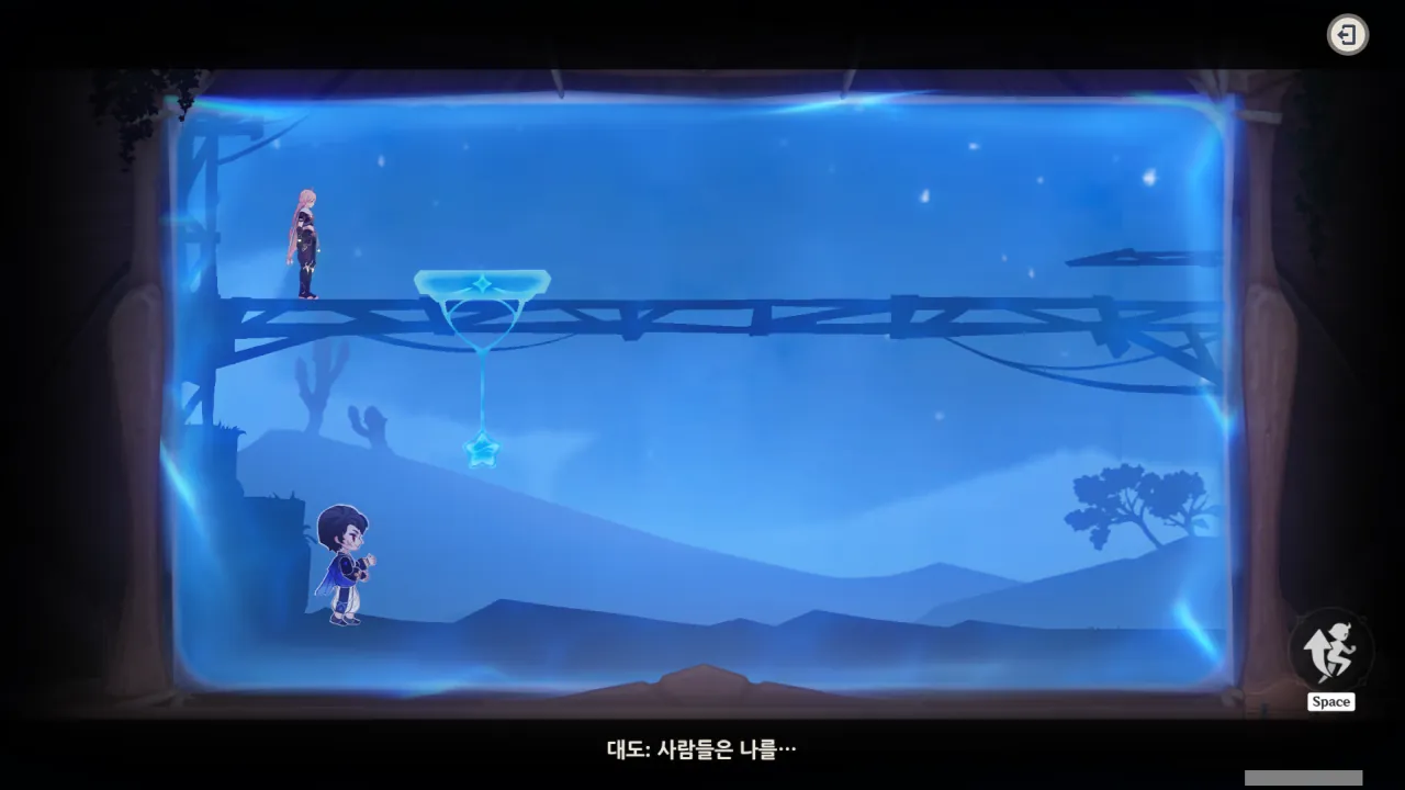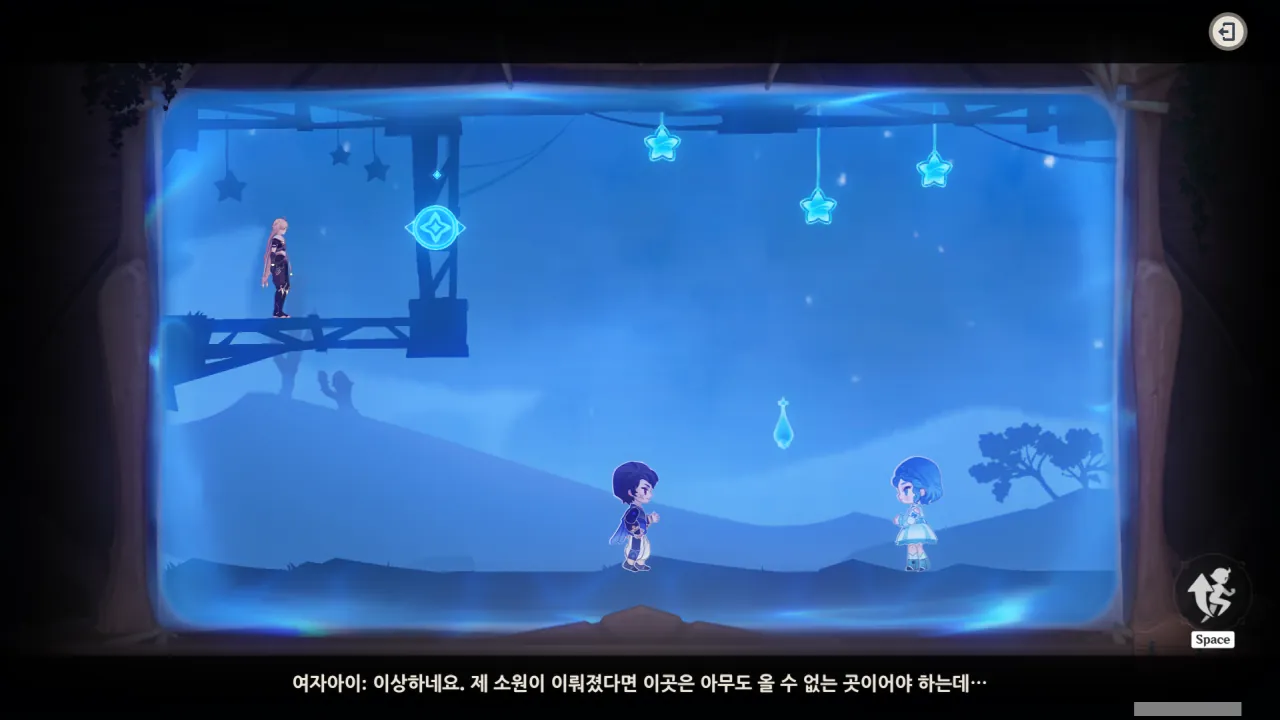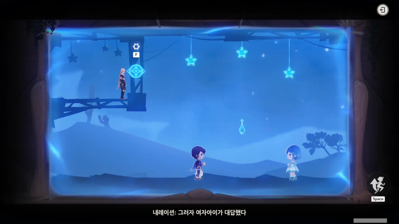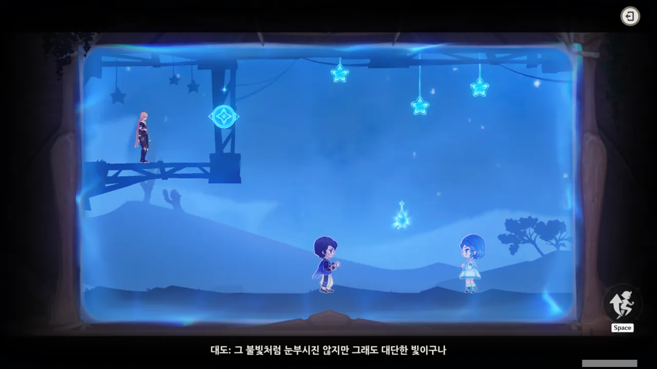 중간에 있는 발판을 먼저 내린 후, 별이 매달려있는 발판 위에 올라서면 된다.