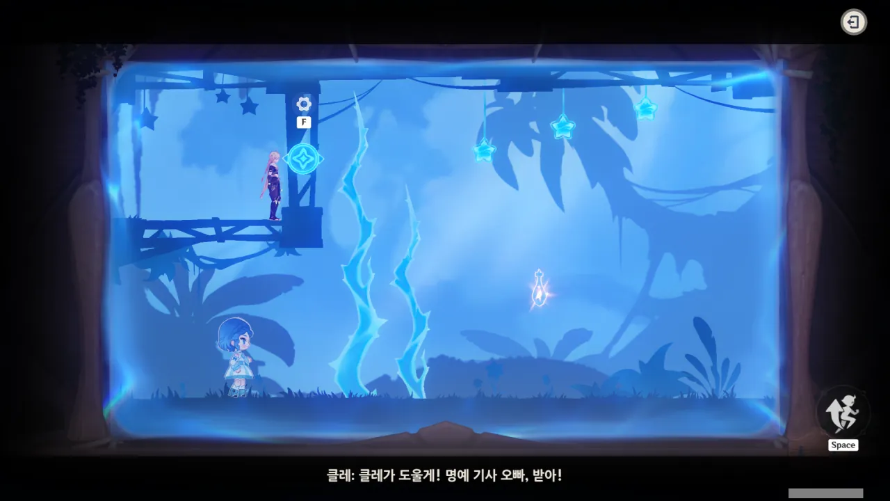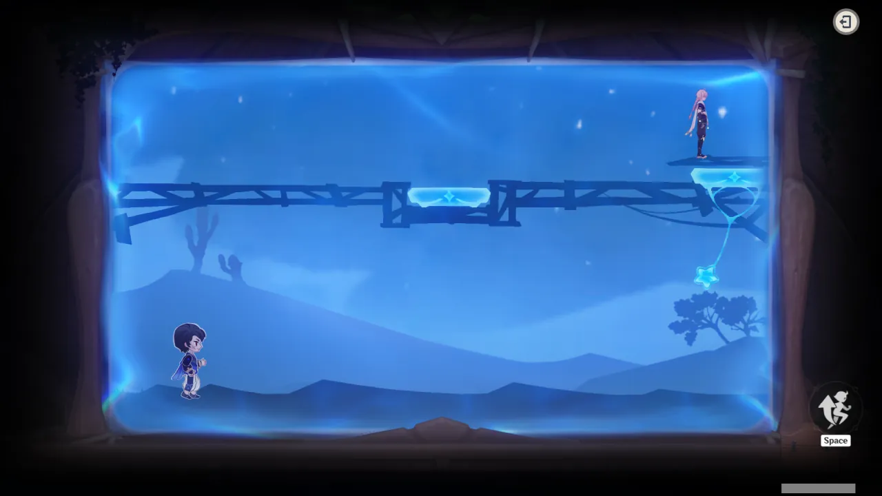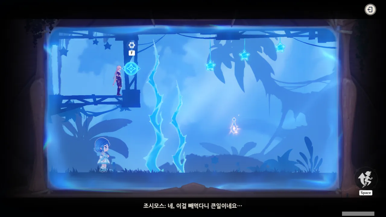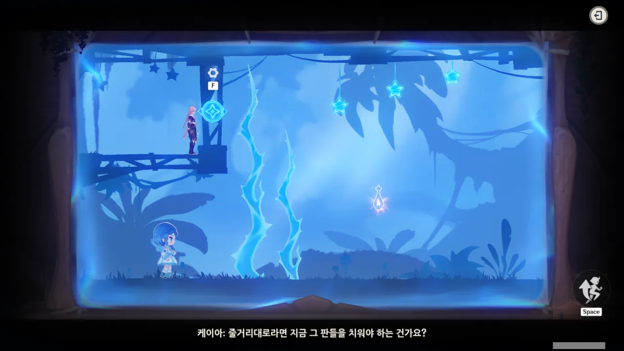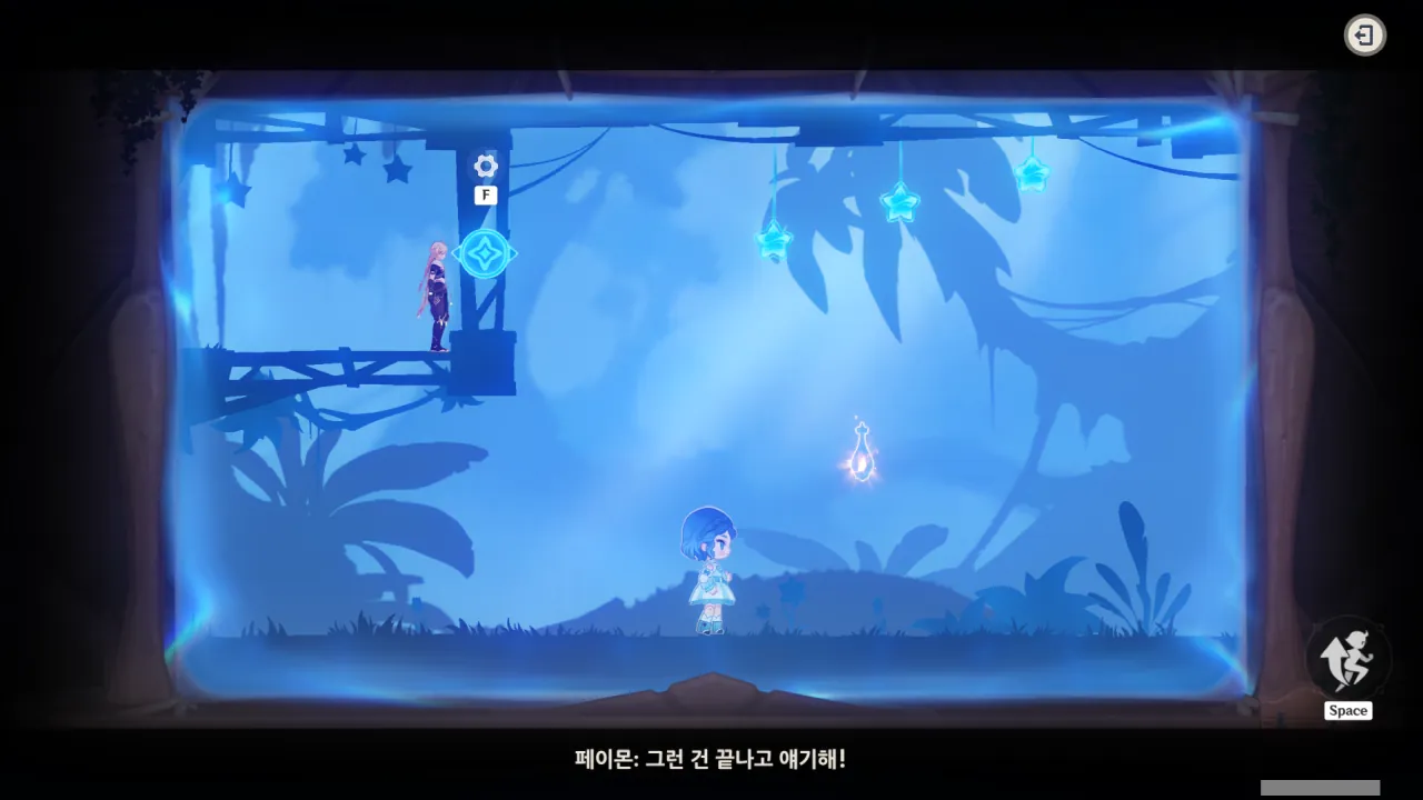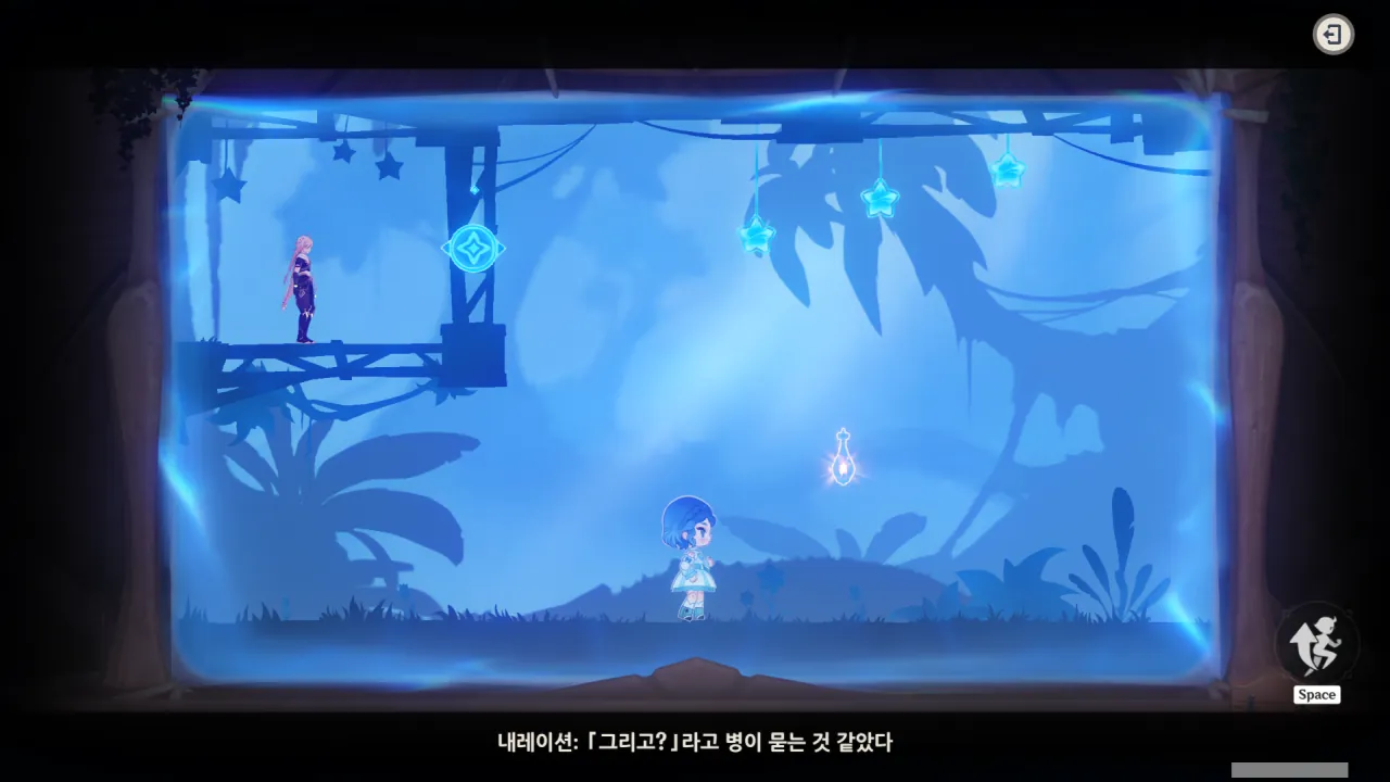 중간에 있는 발판을 먼저 내린 후, 별이 매달려있는 발판 위에 올라서면 된다.