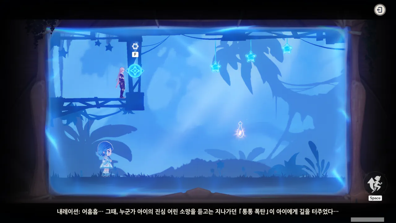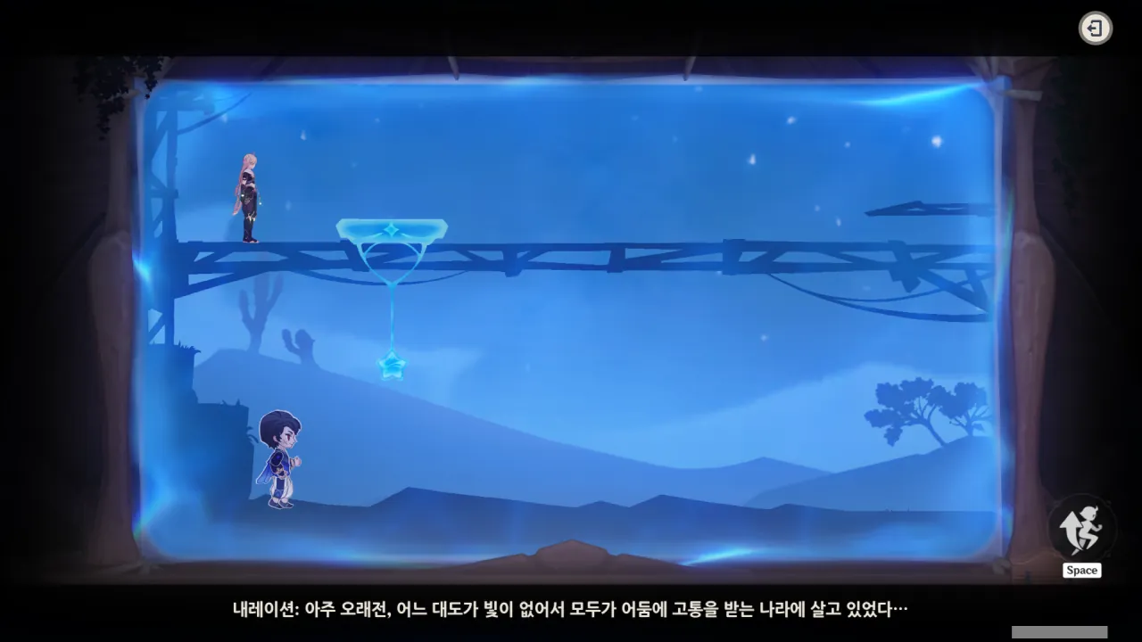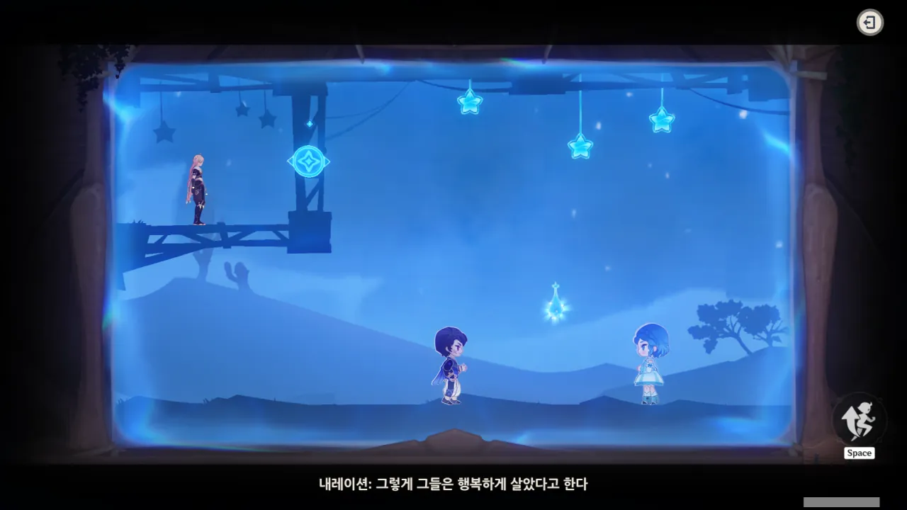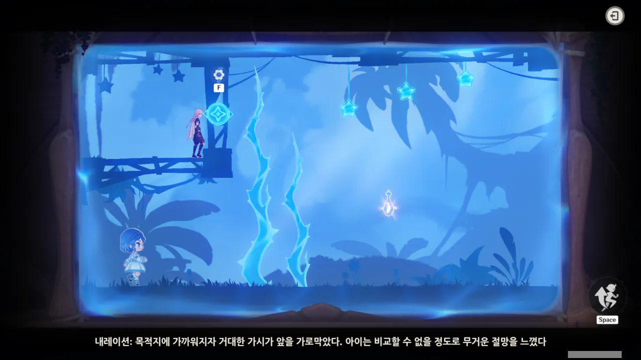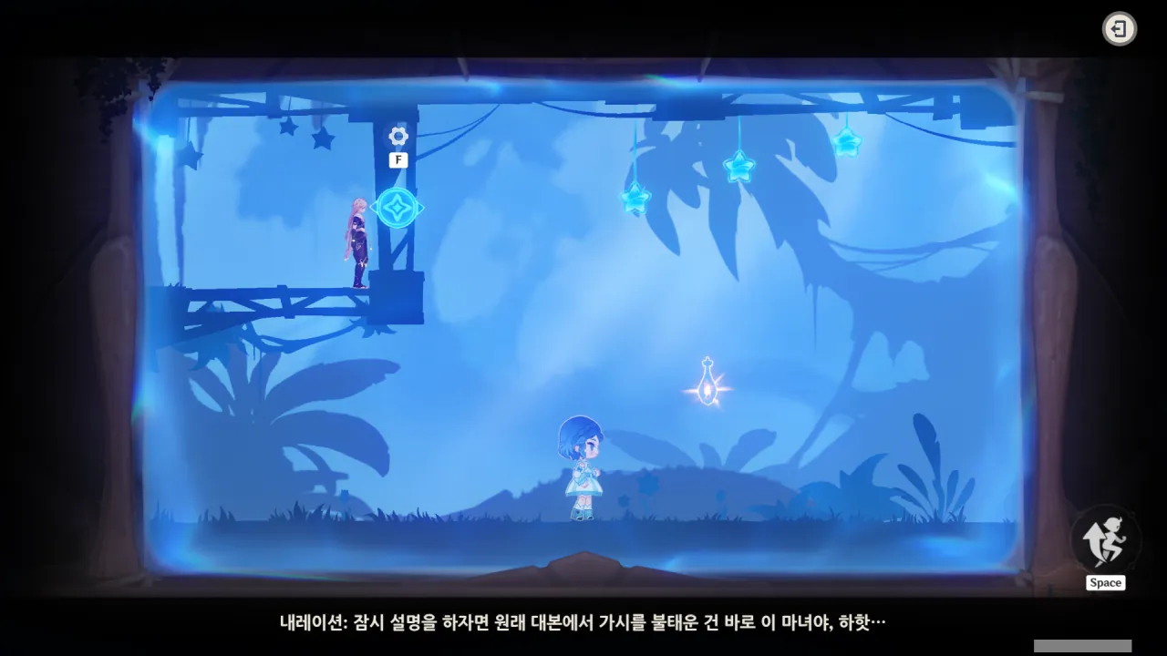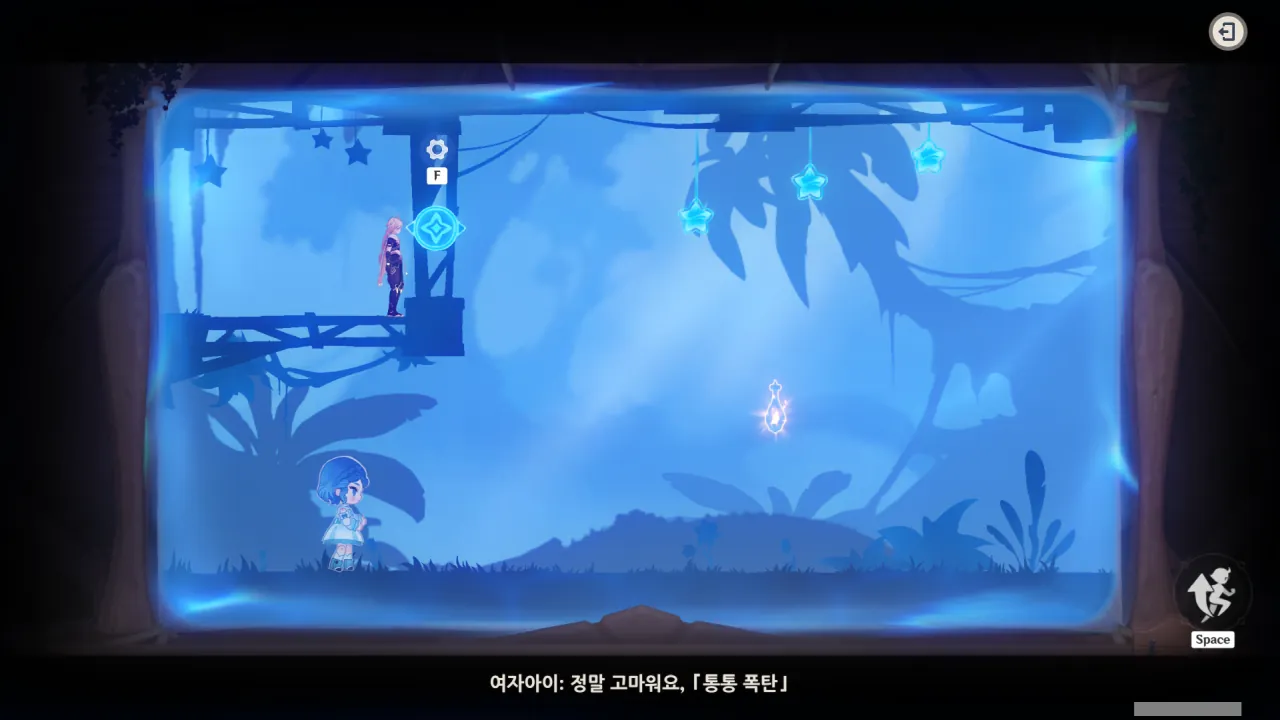 중간에 있는 발판을 먼저 내린 후, 별이 매달려있는 발판 위에 올라서면 된다.