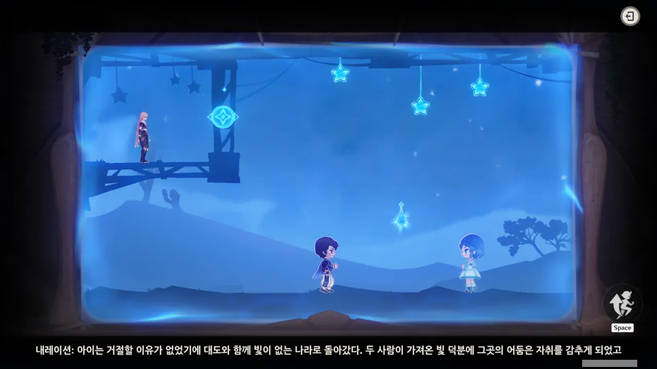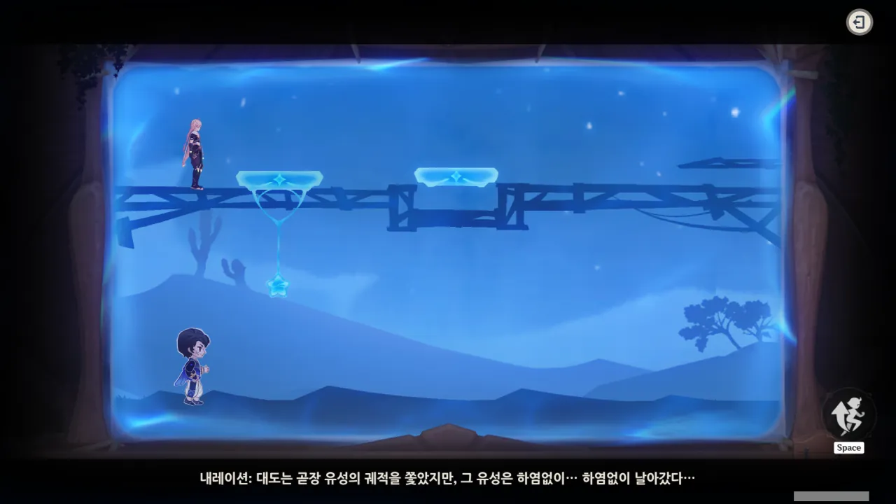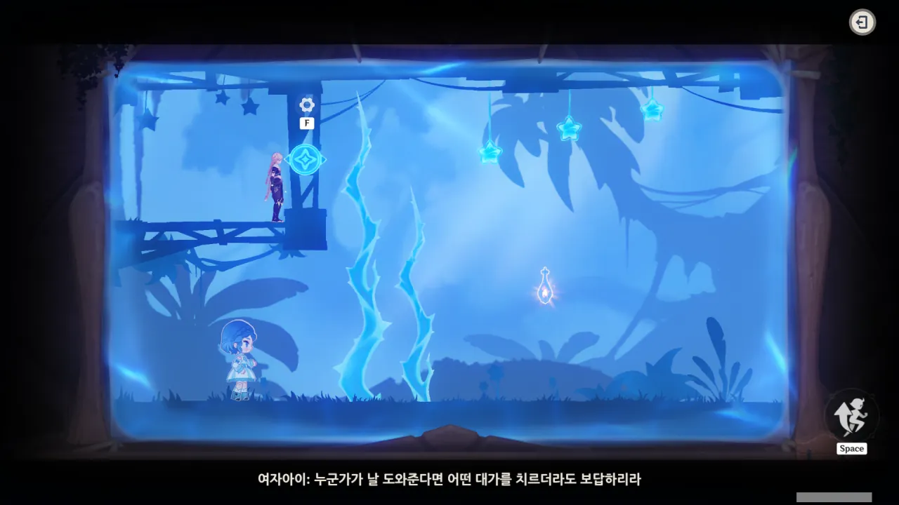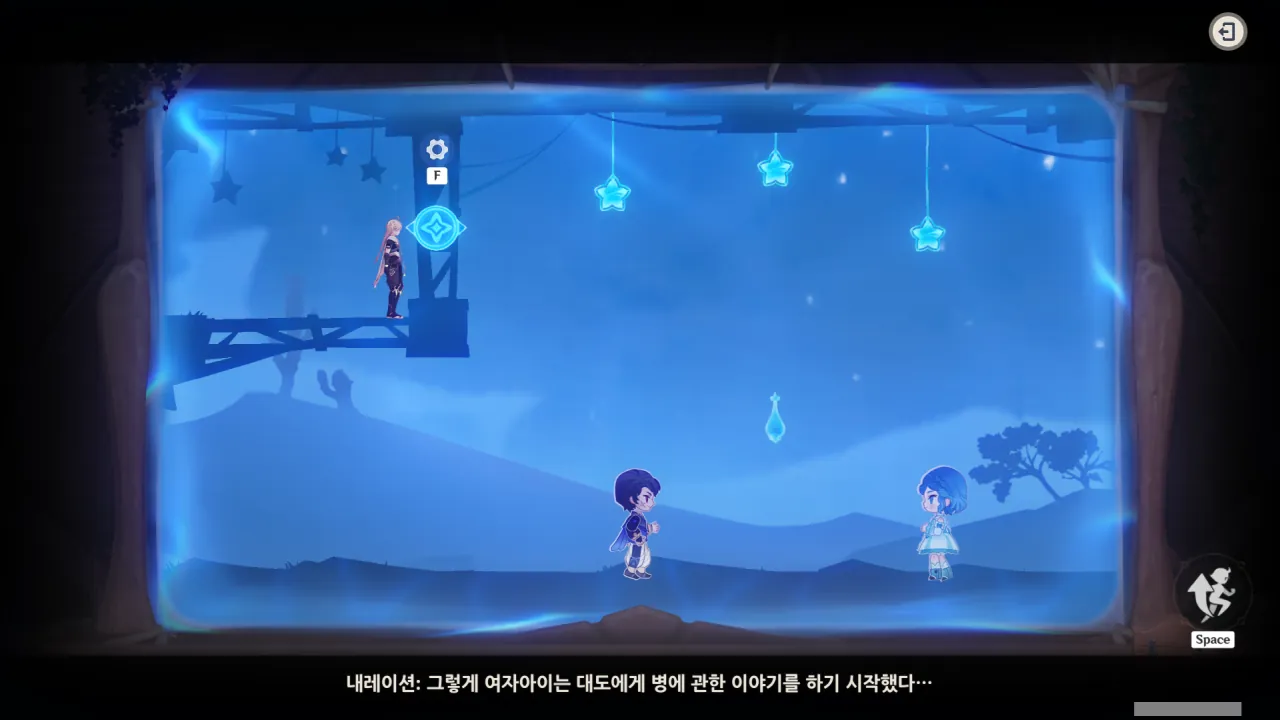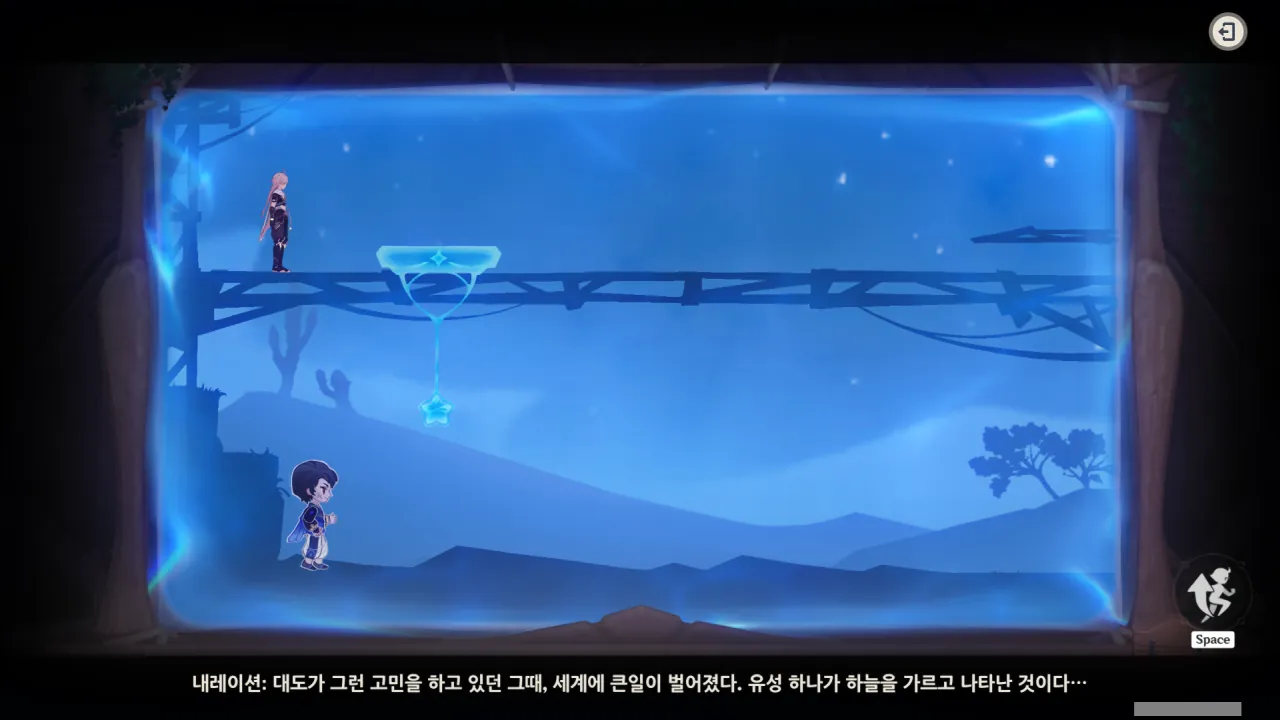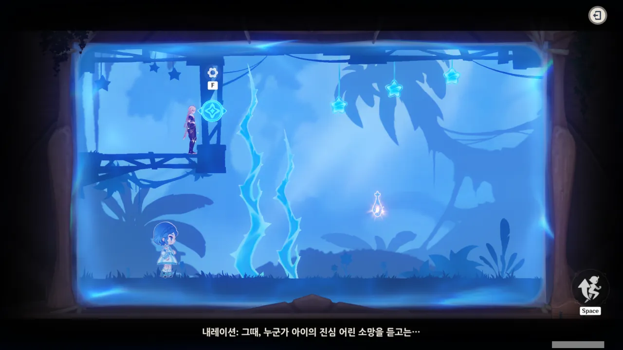 중간에 있는 발판을 먼저 내린 후, 별이 매달려있는 발판 위에 올라서면 된다.