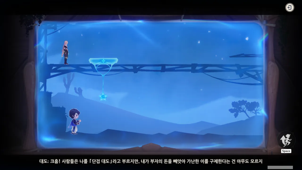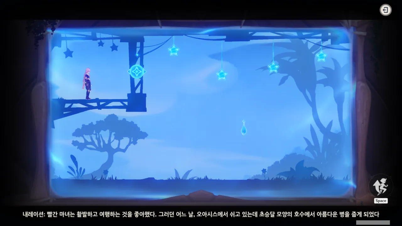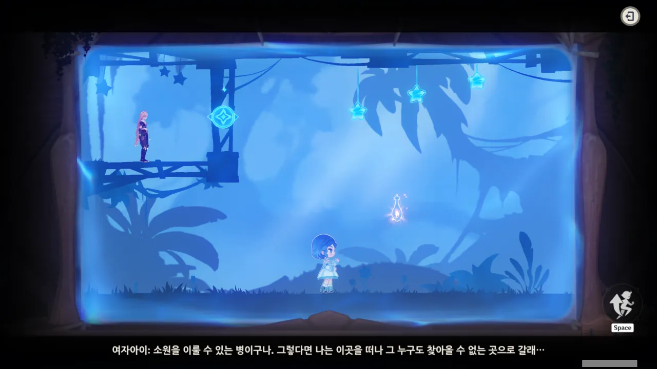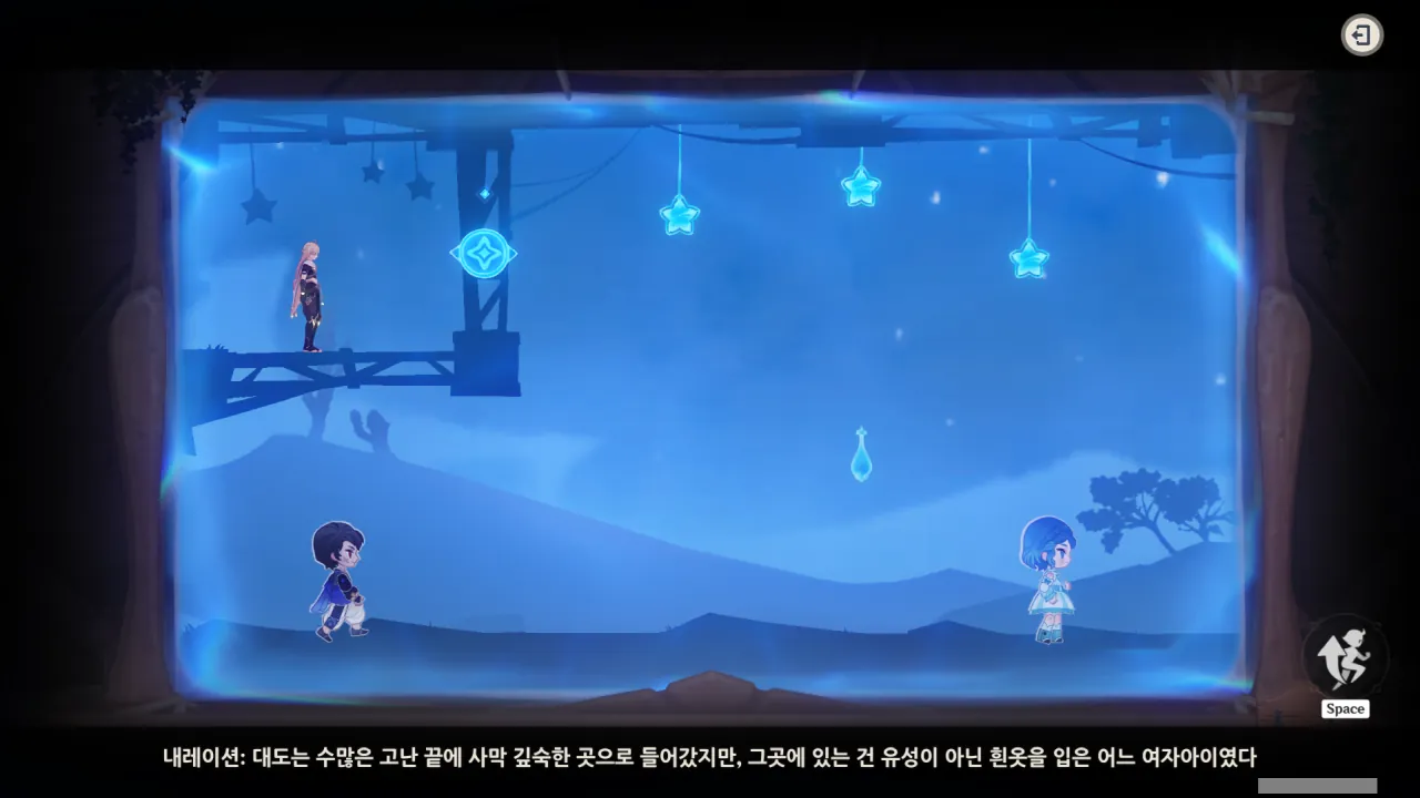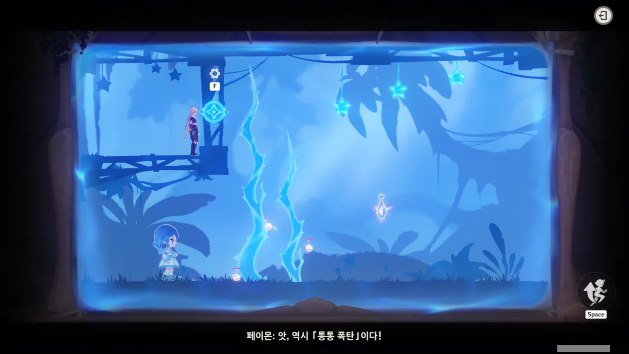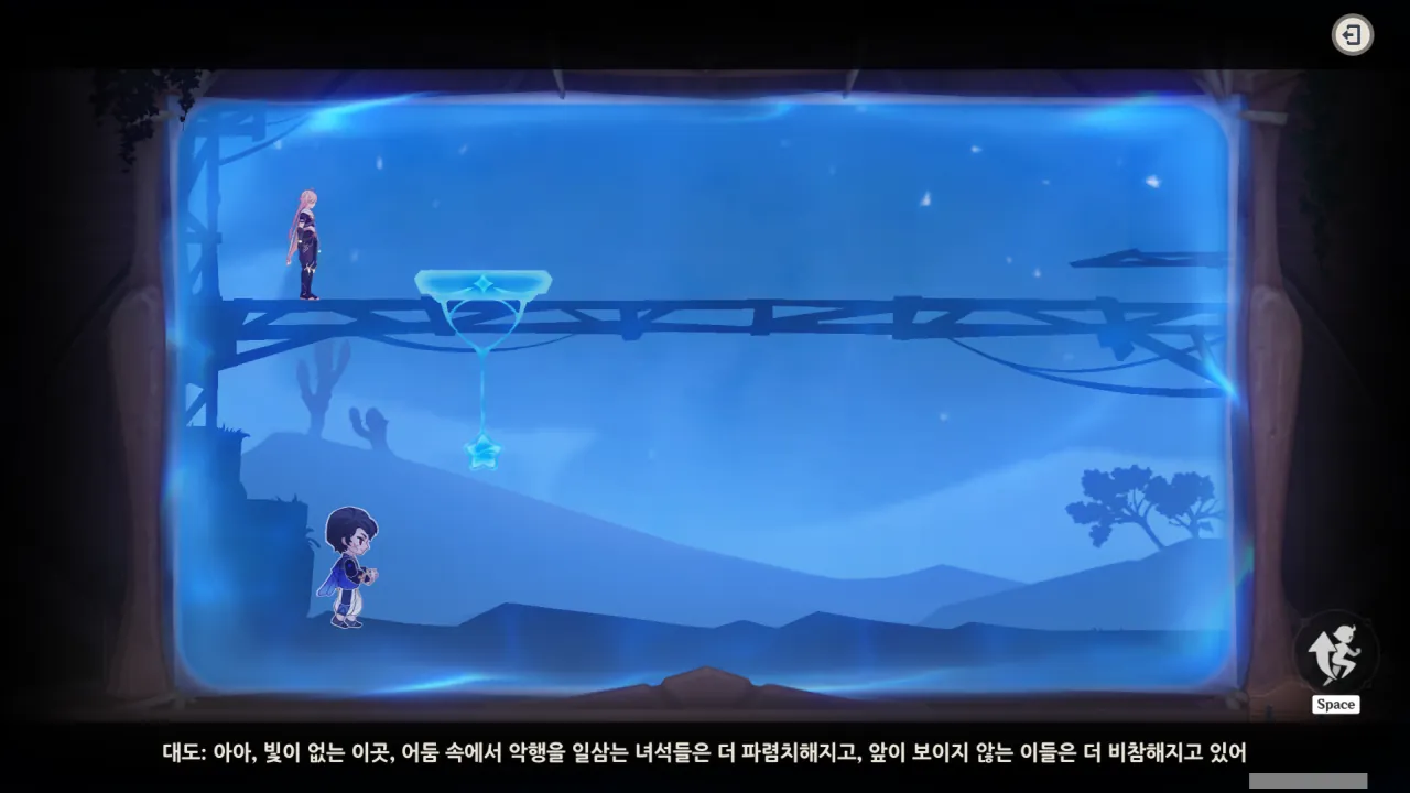 중간에 있는 발판을 먼저 내린 후, 별이 매달려있는 발판 위에 올라서면 된다.