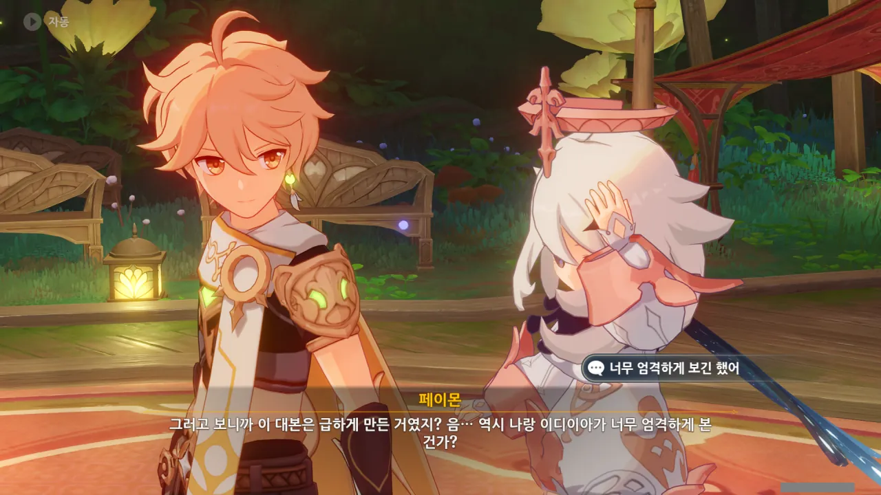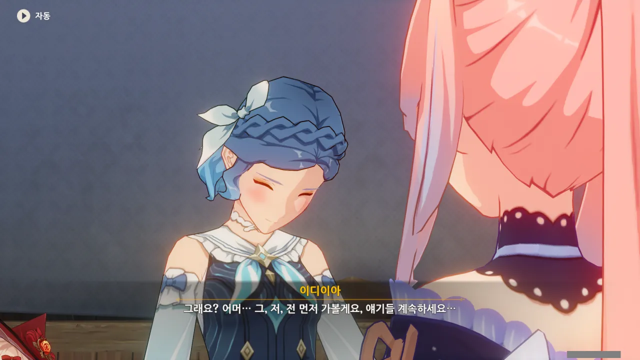 이디이아는 칭찬을 듣더니 쑥스러워하며 얼굴을 붉힌 채 호다닥 도망간다.