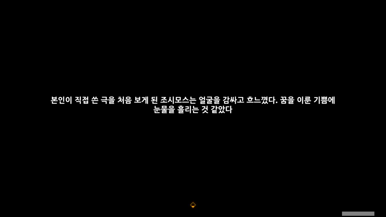 그도 그럴 것이, 이디이아에게 연극을 보여주려면 조시모스는 구상도 안에 들어가 각종 장치를 조작해 연출을 해야 하니, 자신의 연극이 다른 사람에게 어떻게 보이는지 알 수 없는 것이다.