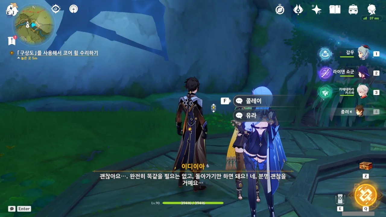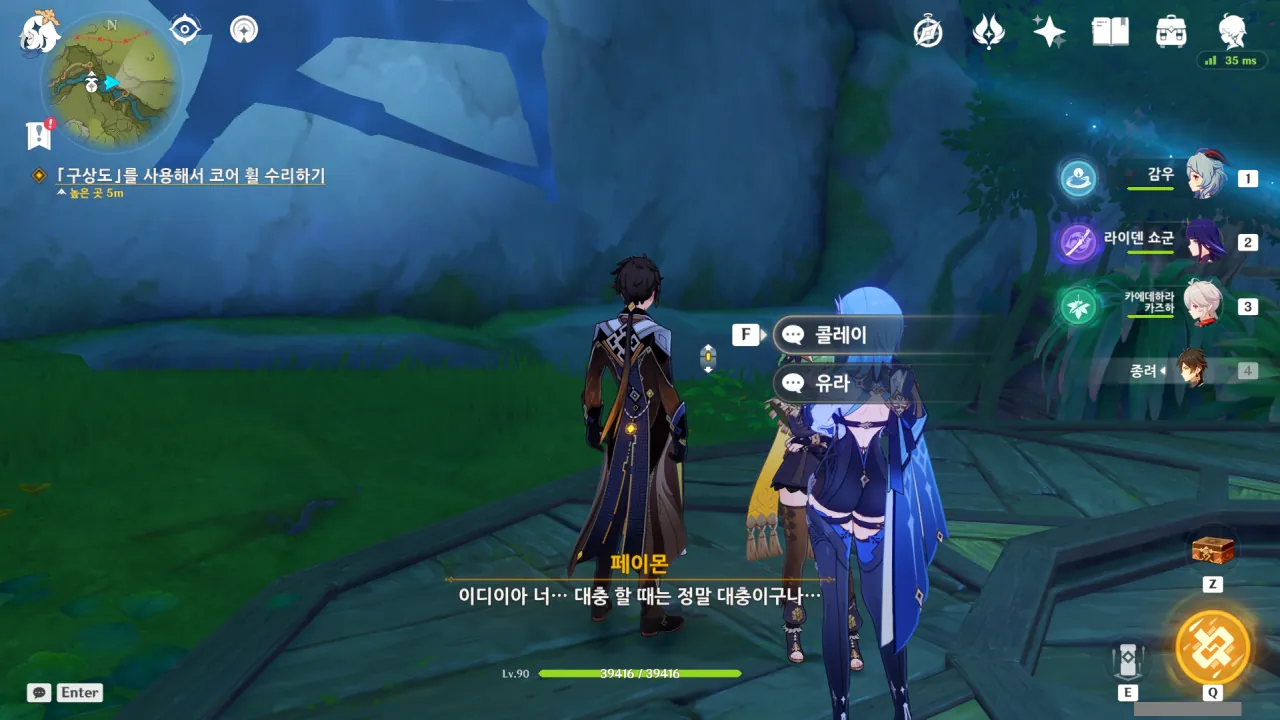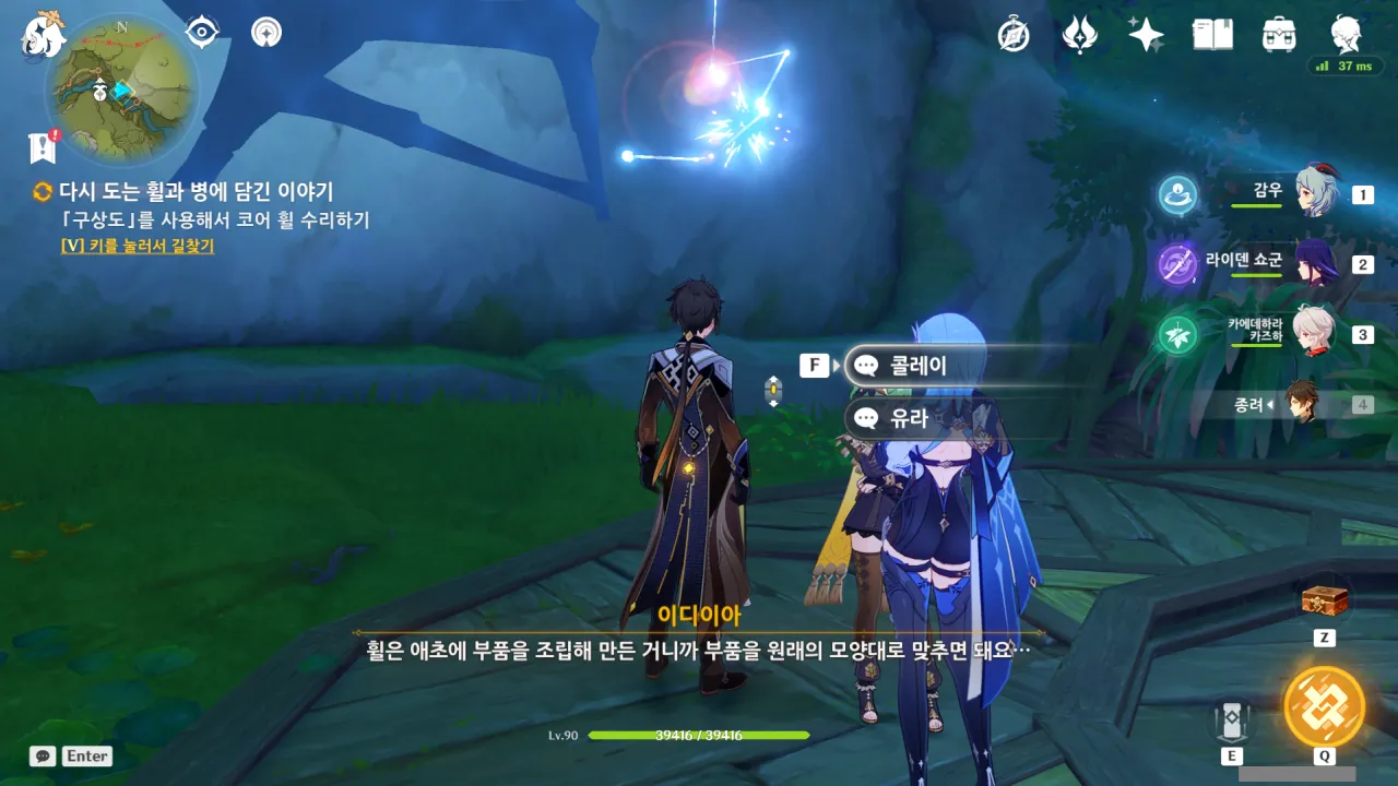 가까이 가보니 상호작용 프롬프트가 나타나는 것으로 보아, 물의 환령이 장난을 치는 것으로 보인다.