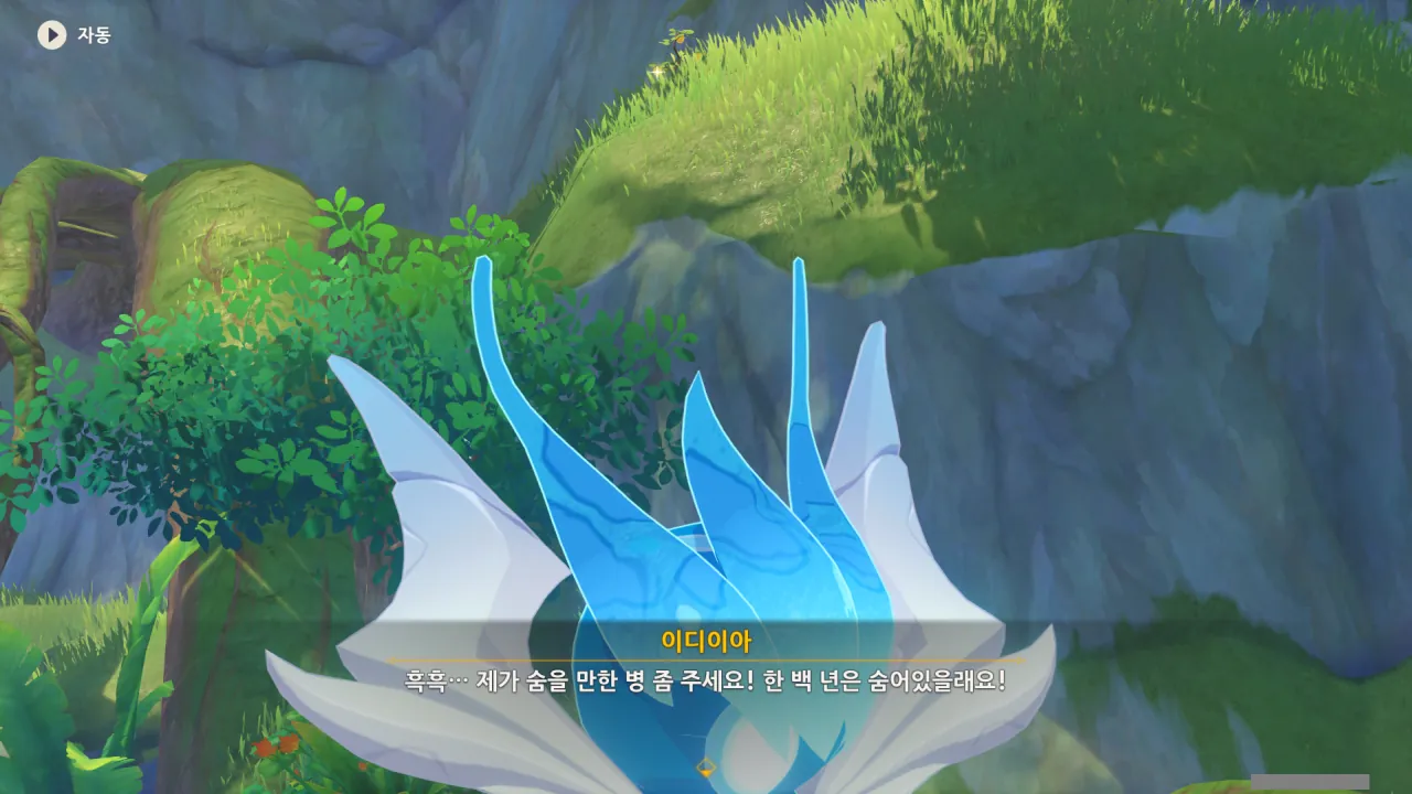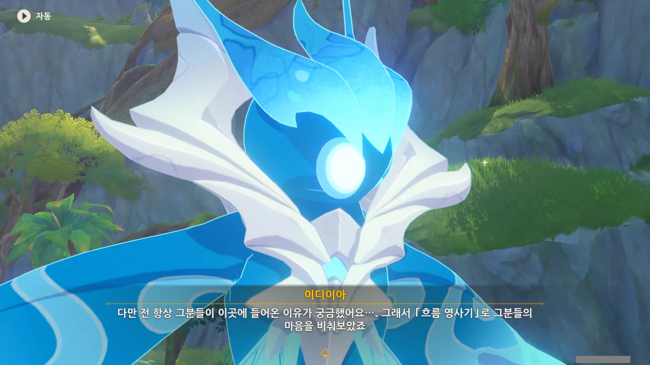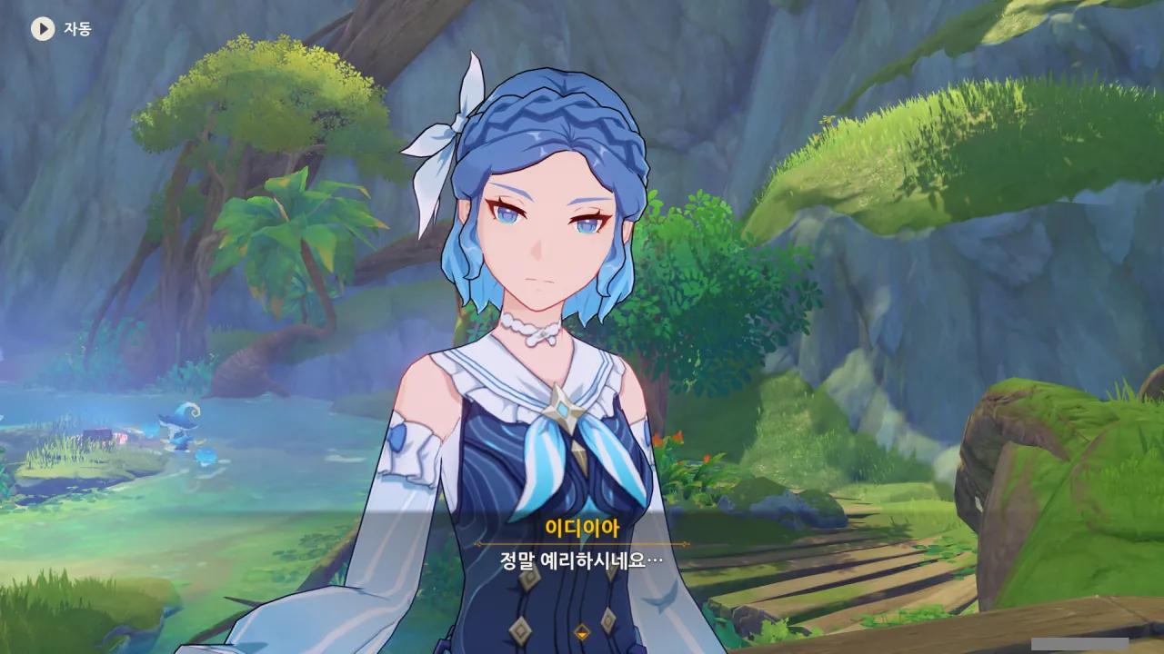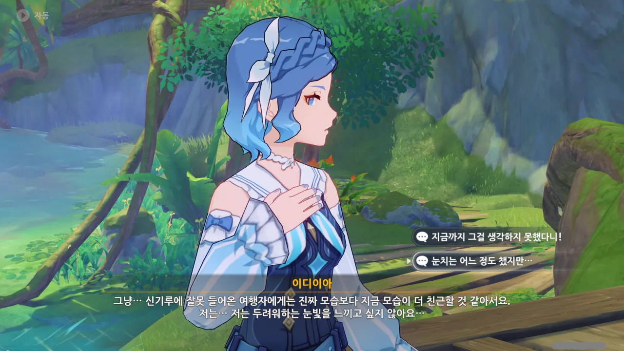 다시 돌아와 보니, 이디이아가 물의 정령의 모습이 아니라, 처음 만났던 그 모습으로 우릴 맞아준다.