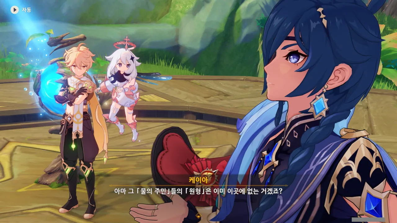 응? 원형? 케이아가 갑자기 저 말을 하니, '사실 이 비경에 들어온 사람들은 다시는 비경 밖으로 나가지 못했고, 죽어서도 유령 비슷한 것이 되어 「물의 주민」으로서 영원토록 이 비경에서 살게 되었다" 같은 불길한 상상이 떠오른다.
