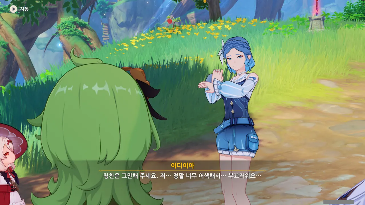 클레와 유라가 이디이아의 지금 모습이 예쁘다고 하자, 이디이아가 굉장히 부끄러워한다.