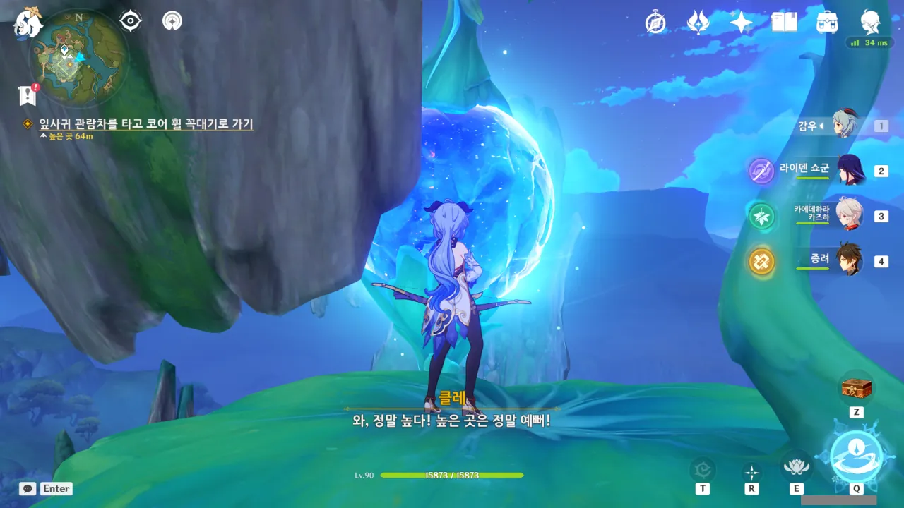 관람차가 너무 높다고 불안해하는 페이몬. 야, 너 맨날 날고 있잖아…