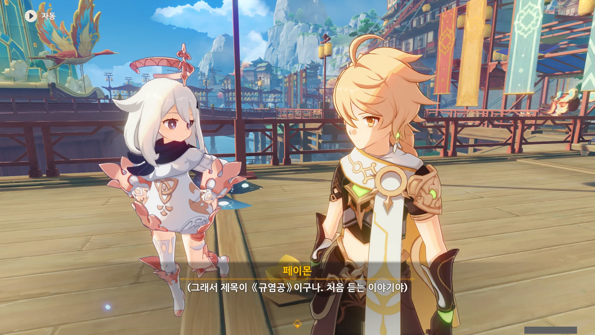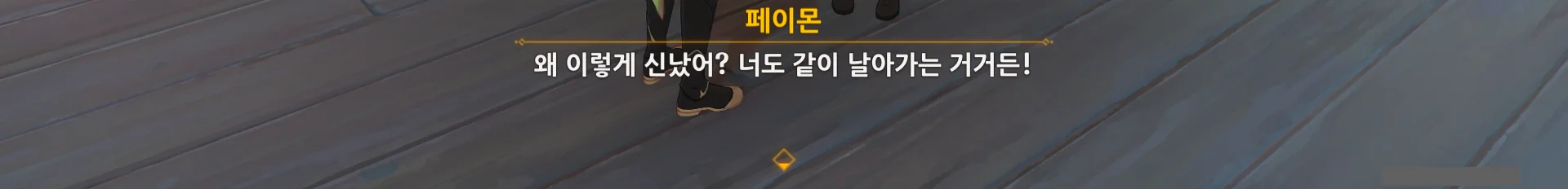 "무서워요, 페이몬과 같이 날아가다니!" 선택지를 고르니, 페이몬이 '그런데 왜 실실 웃고 있냐?'라고 핀잔을 주더라.