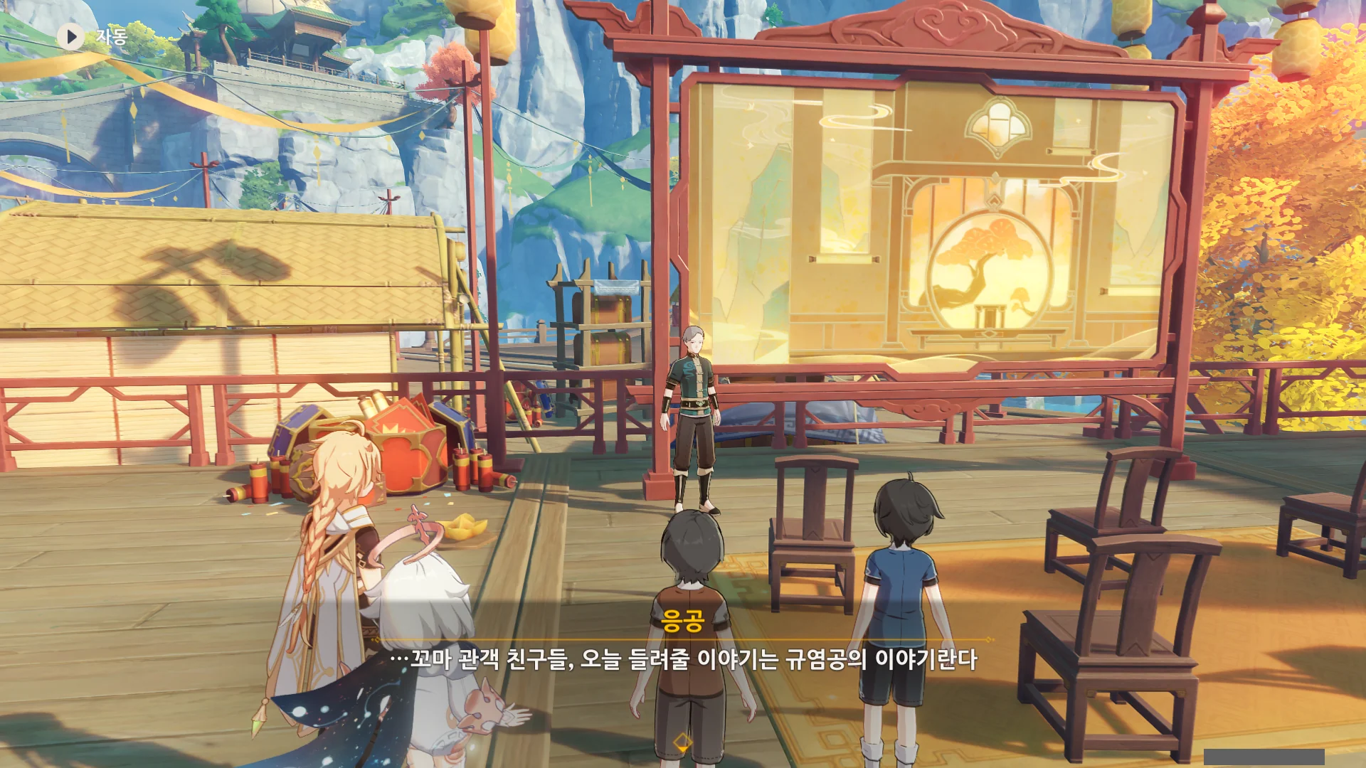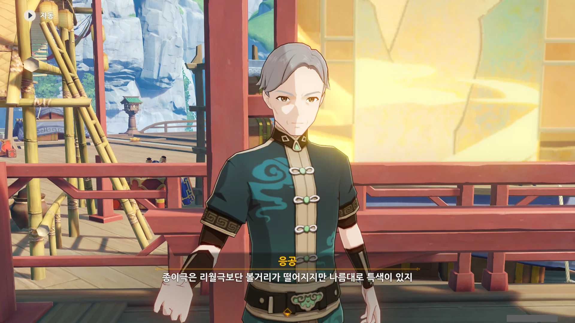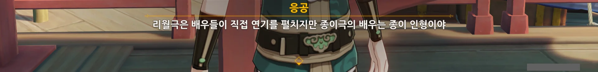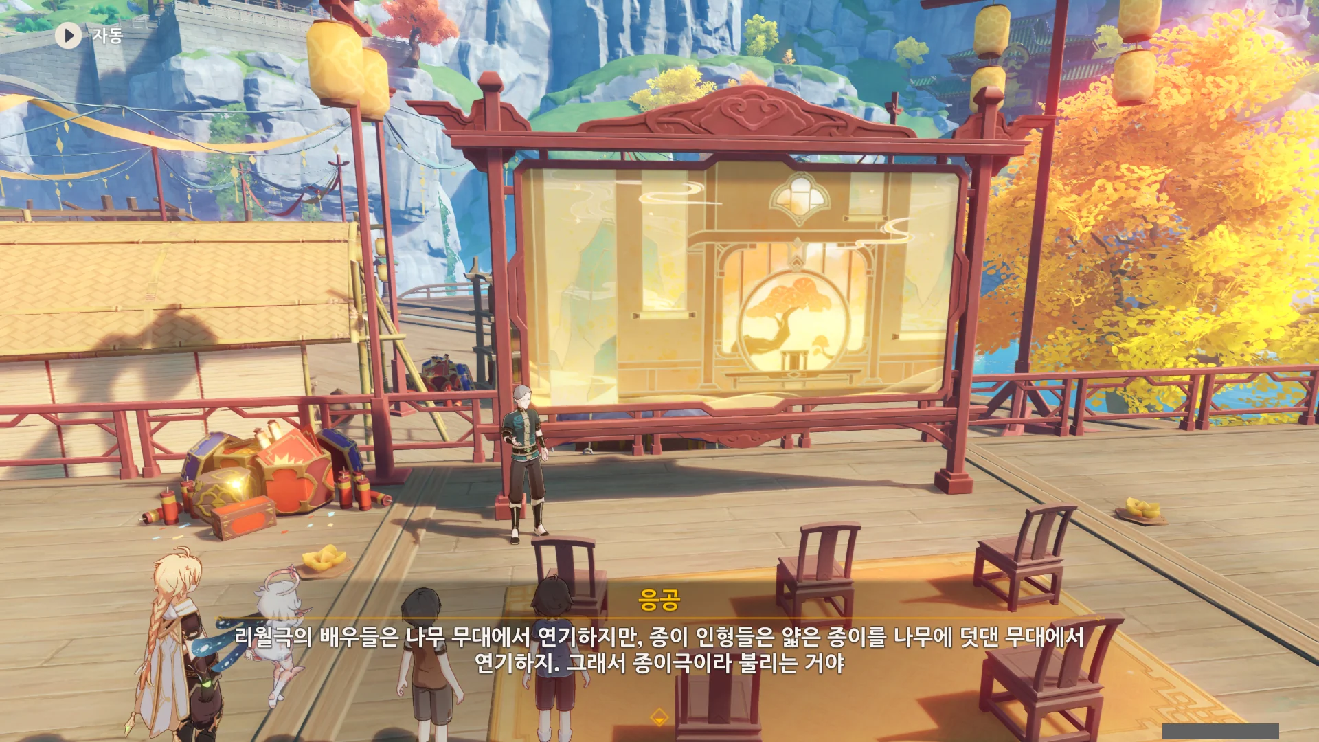 종이극은 지금 응공의 뒤에 있는, 넓은 판 위에서 종이 인형을 이용해 공연하는 것이다.