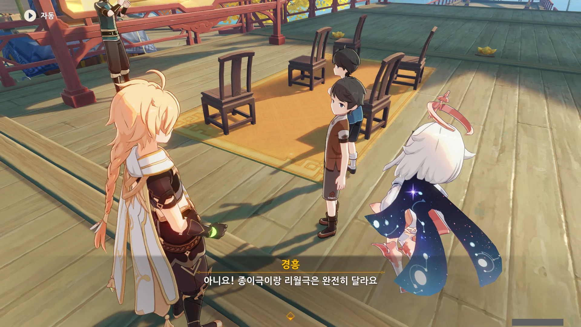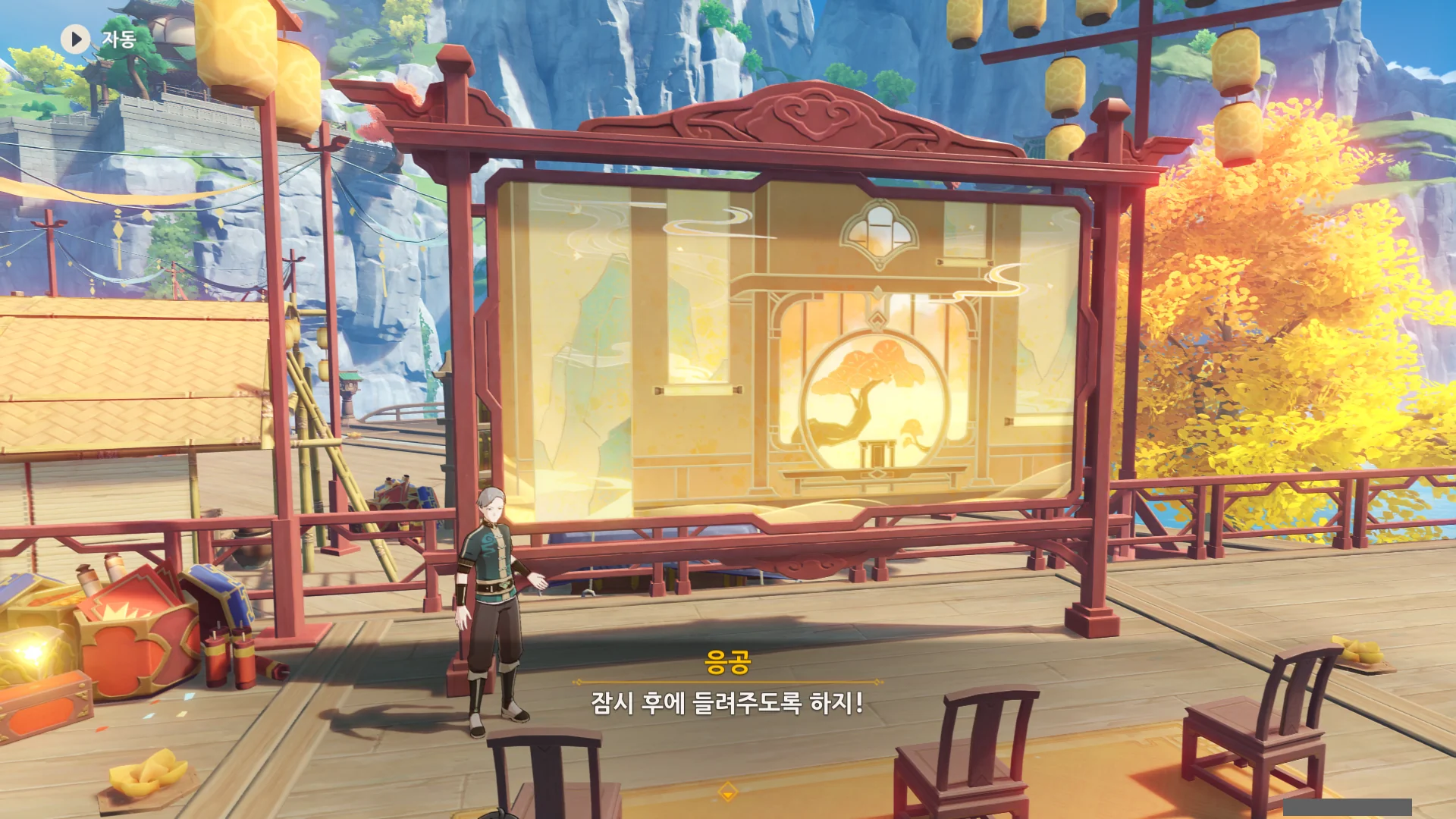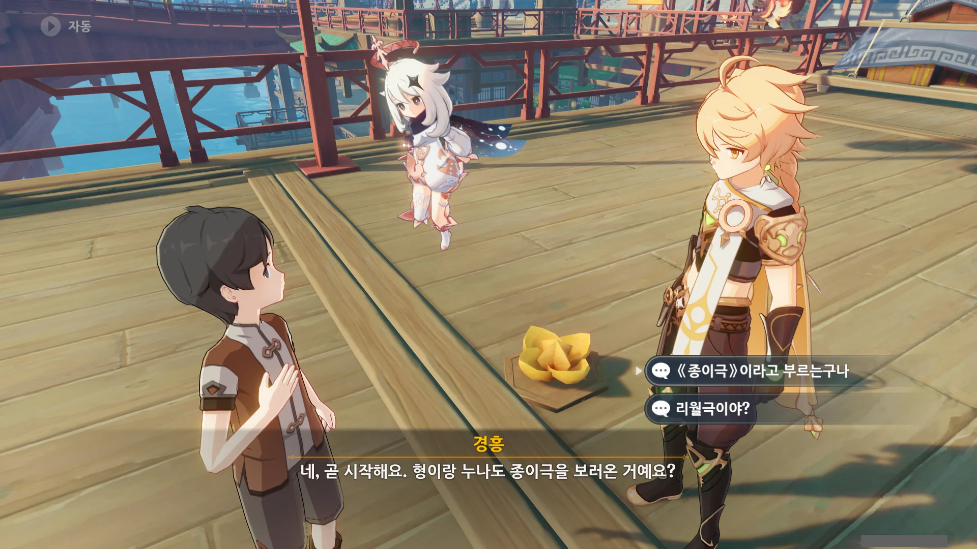 종이극은 지금 응공의 뒤에 있는, 넓은 판 위에서 종이 인형을 이용해 공연하는 것이다.