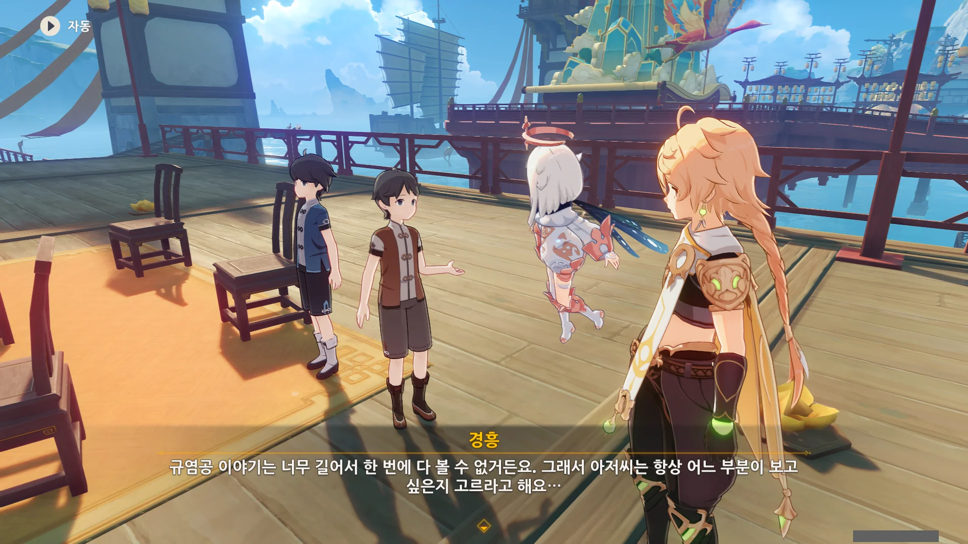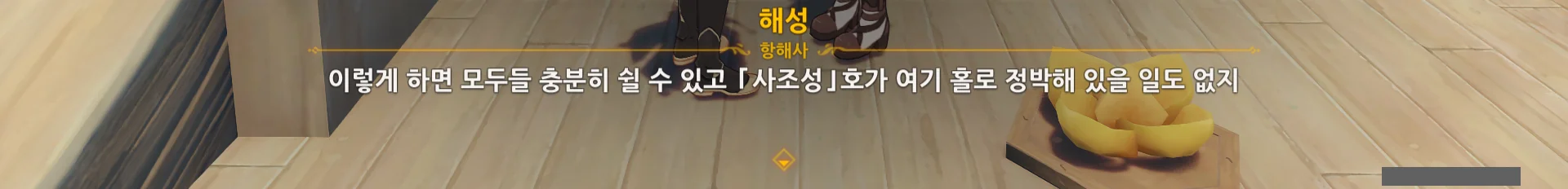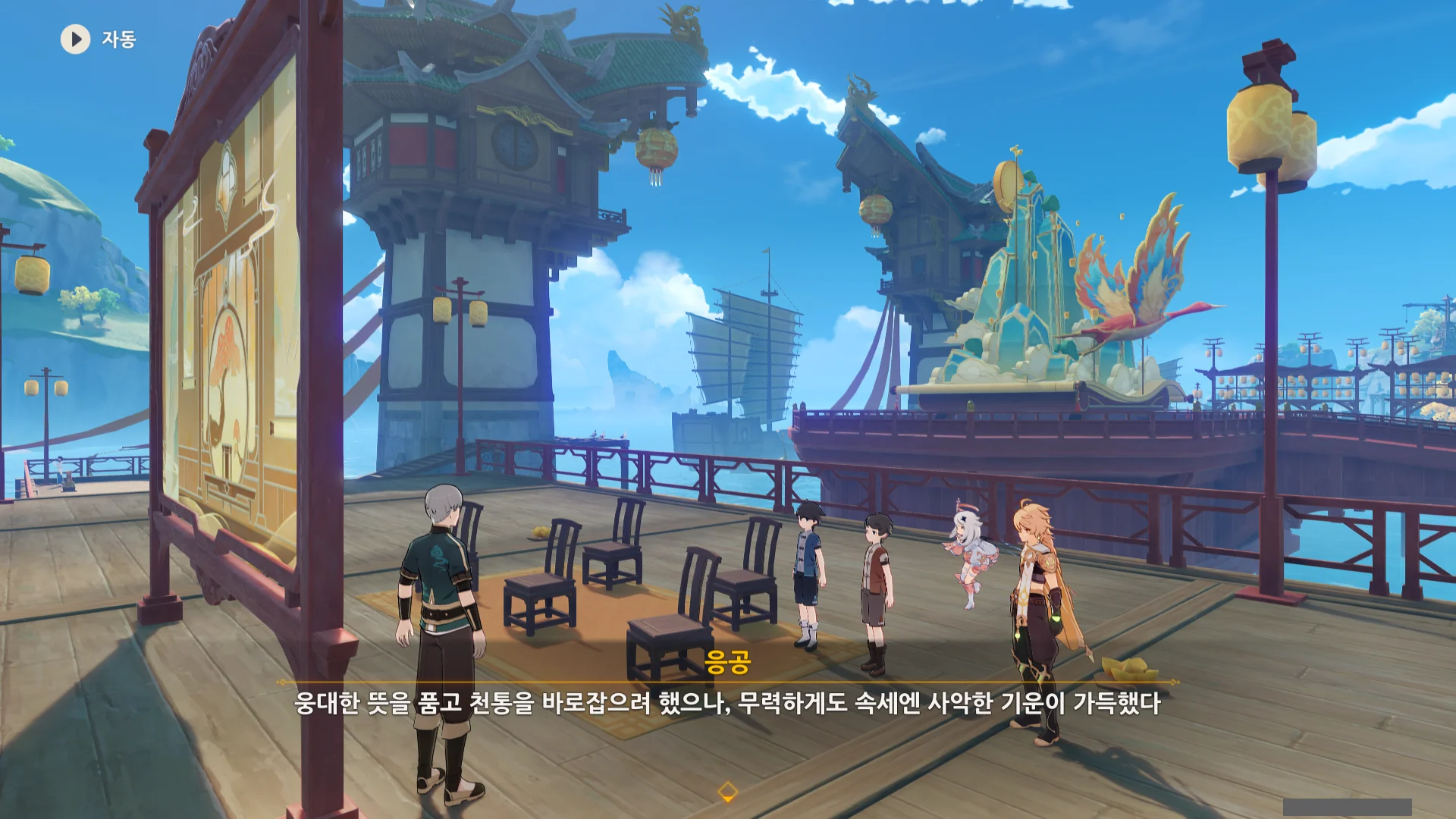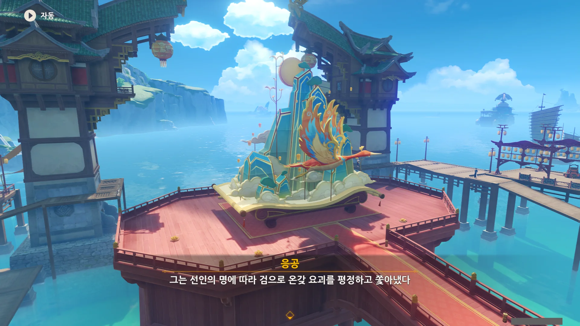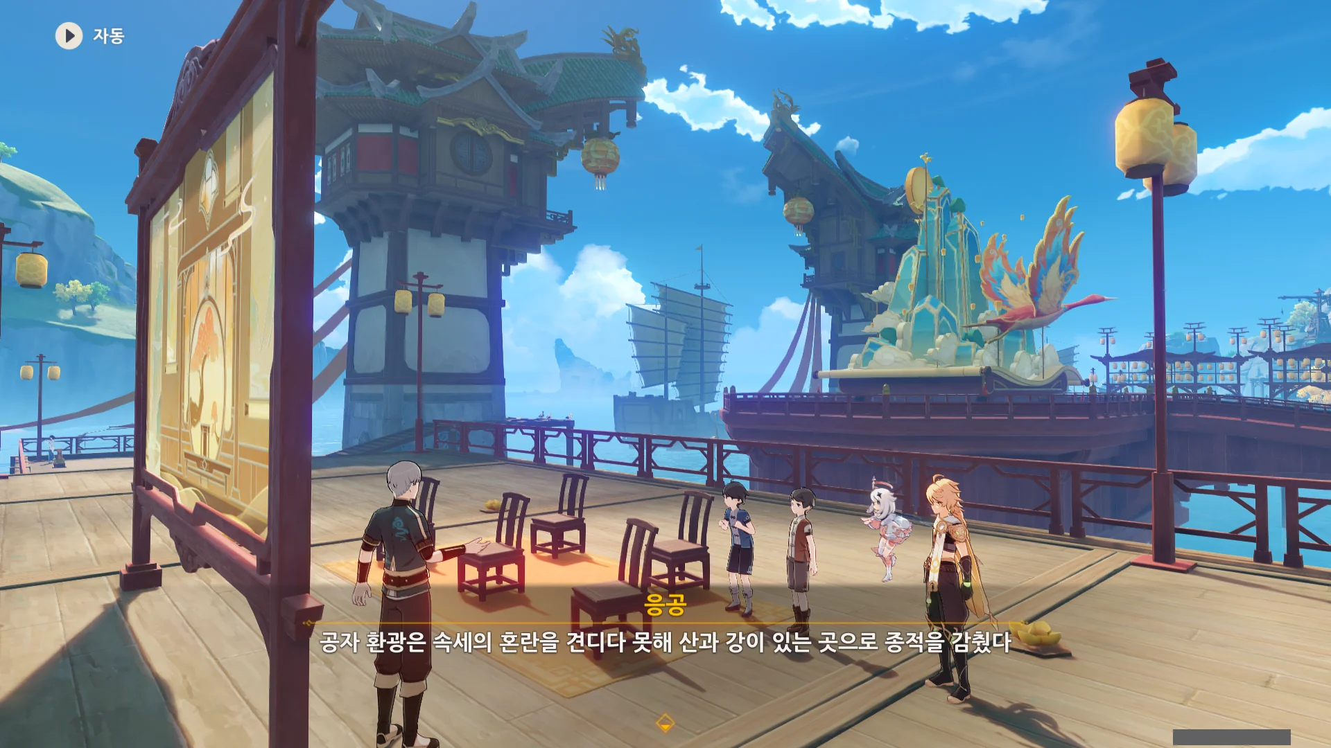 남십자 함대의 사조성 호로 가라고 하기에, 또 절벽 위에서 바람의 날개로 사조성 호로 날아가야 하나, 리월항에서 헤엄쳐서 가야 하나 생각했는데, 사조성 호가 워프 포인트 역할을 하도록 바뀌었다.