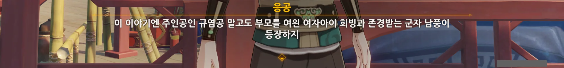 어떤 아이가 '그 이야기 말고, 규염공이 집으로 돌아가는 이야기를 해주세요'라고 하자, 다른 이야기를 꺼내는 응공.