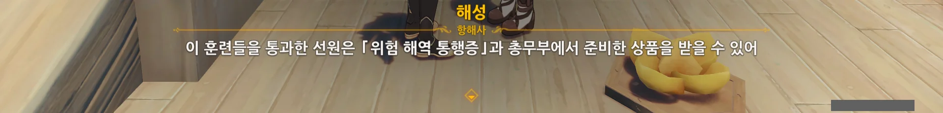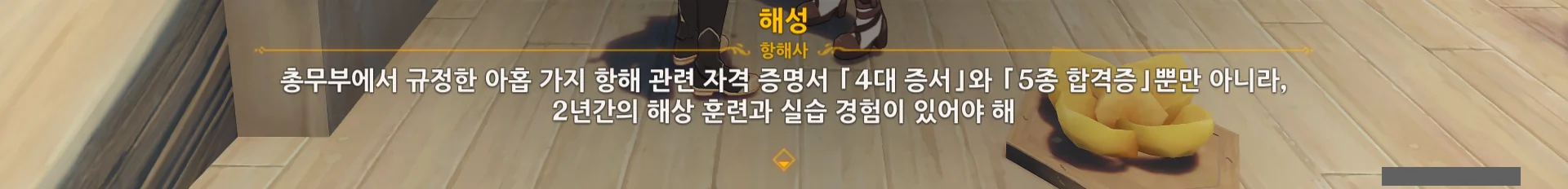 그러니까… 위험한 해역을 건너려면 '4대 증서", '5종 합격증" 말고도 '위험 해역 통행증" 역시 필요한 모양이다. 그리고 그 통행증을 발급받으려면 '해무 순찰'을 통과해야 하고.