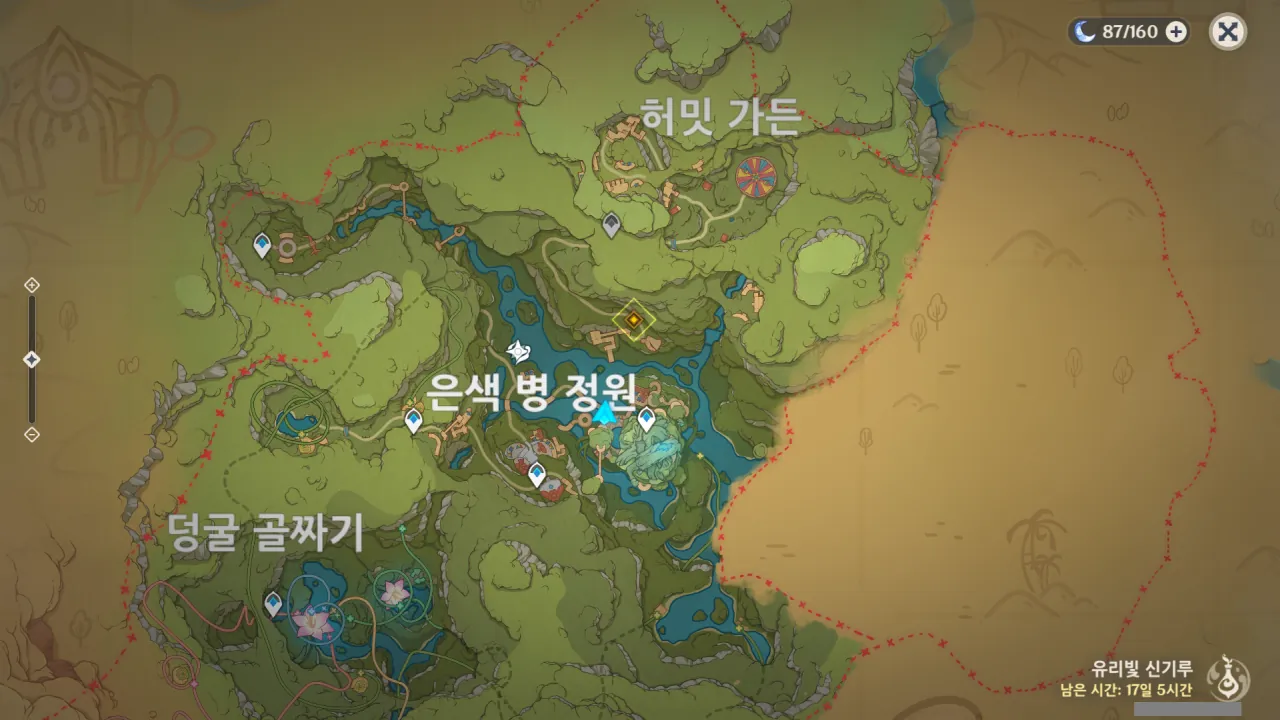 안타깝게도 새로 개방된 구역인 '허밋 가든'에는 레일이 없다. '덩굴 골짜기" 지역에 레일이 잔뜩 깔려 있길래 이 이벤트 지역 전체를 열차를 타고 돌아다닐 수 있을 줄 알았는데…