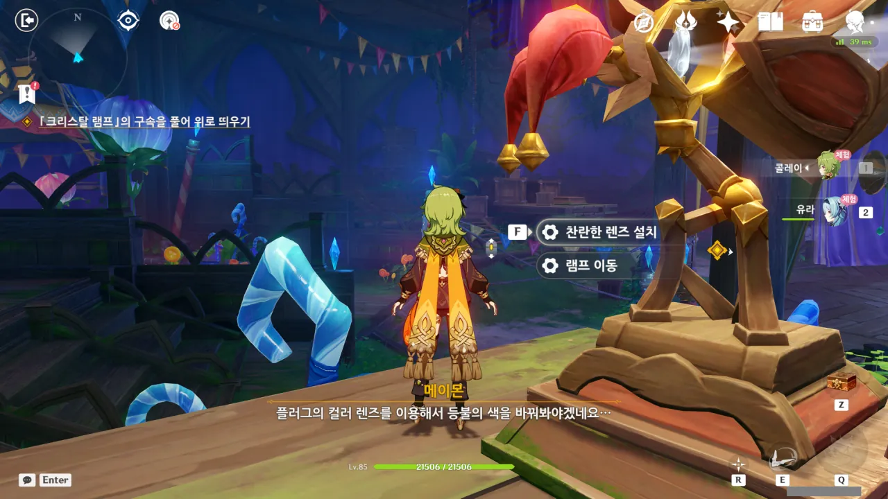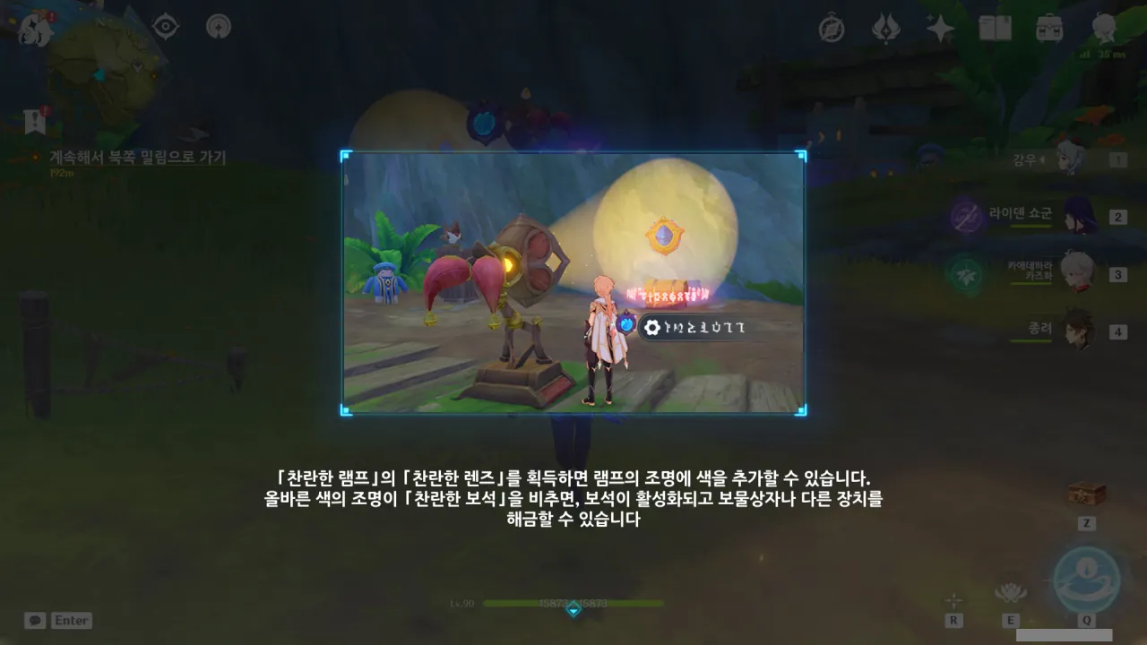 가는 길에 「찬란한 램프」와 「찬란한 렌즈」의 사용법을 알려주는 간단한 퍼즐을 조금 풀었다.
