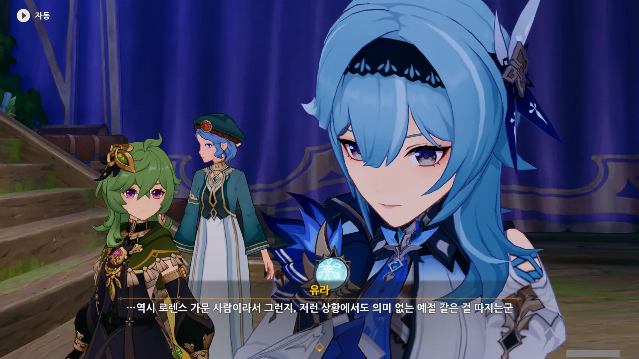 예전에 몬드의 기밀을 팔아먹으려던 로렌스 가문의 사람을 잡기 위해 잠시 어울릴 때, 로렌스 가문이 그토록 중시하는 예절이란 걸 본 적이 있다.