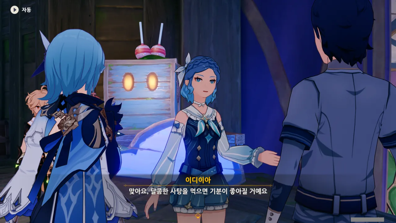 분위기가 엉망이 되었을 때, 이디이아가 '마따끄… 분위기가 엉망이 되었잖아?'라며 끼어들어, 두 사람에게 사탕을 하나씩 나눠준다.