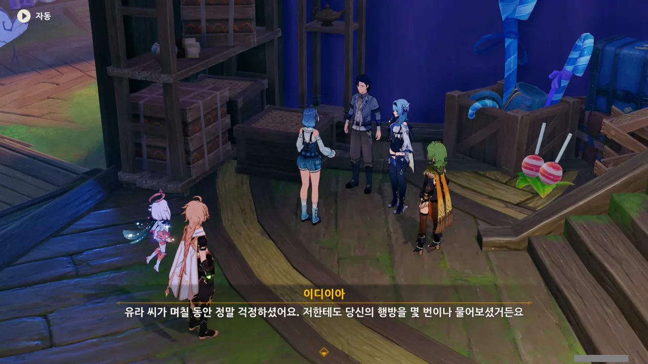 사탕을 나눠준 후, 레시그에게 그동안 유라가 레시그를 애타게 찾아다녔다는 걸 알려주는 이디이아.